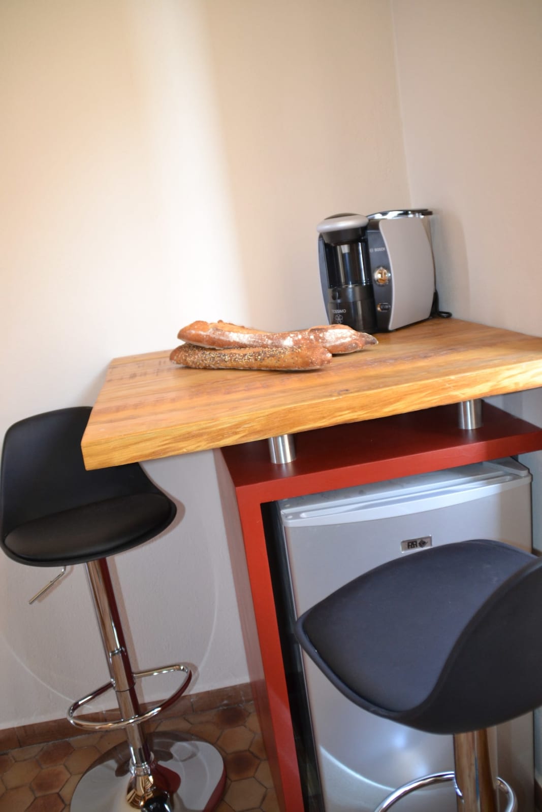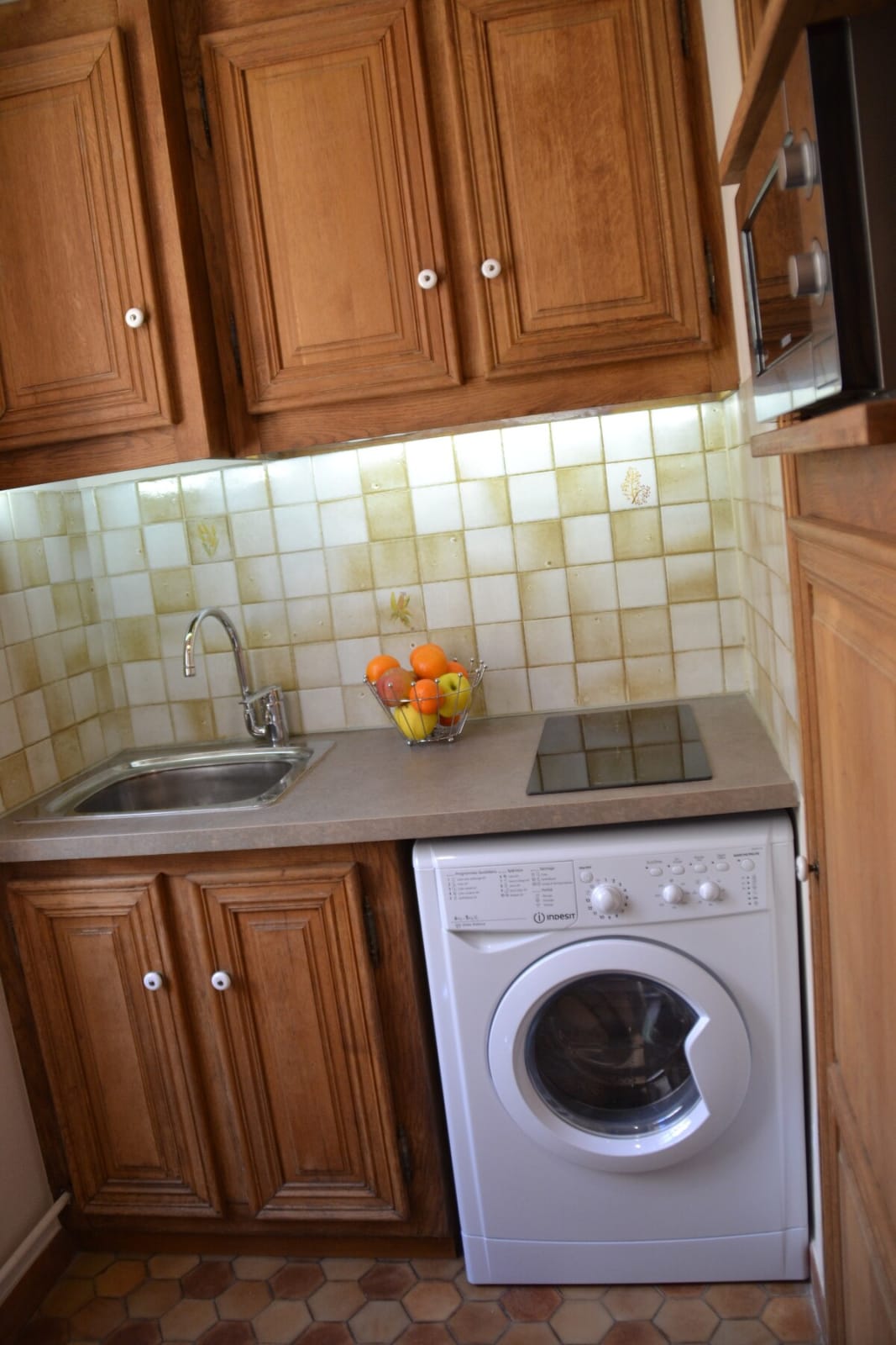 A fully equipped kitchen (hotplates, microwave, Senseo coffee machine, washer-dryer)