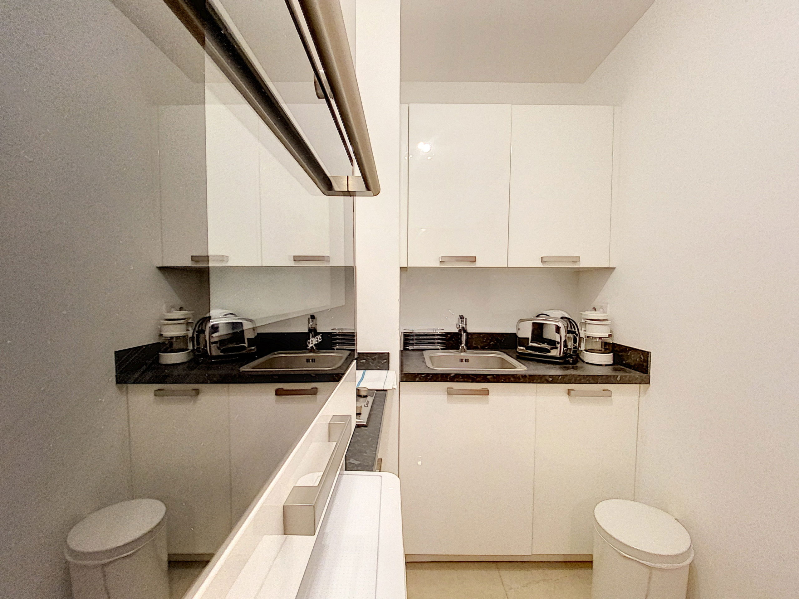 The independent kitchen, of induction, is equipped with refrigerator, oven, washing machine, dishwasher, dishes/cutlery, kitchen utensils, coffee machine and kettle.