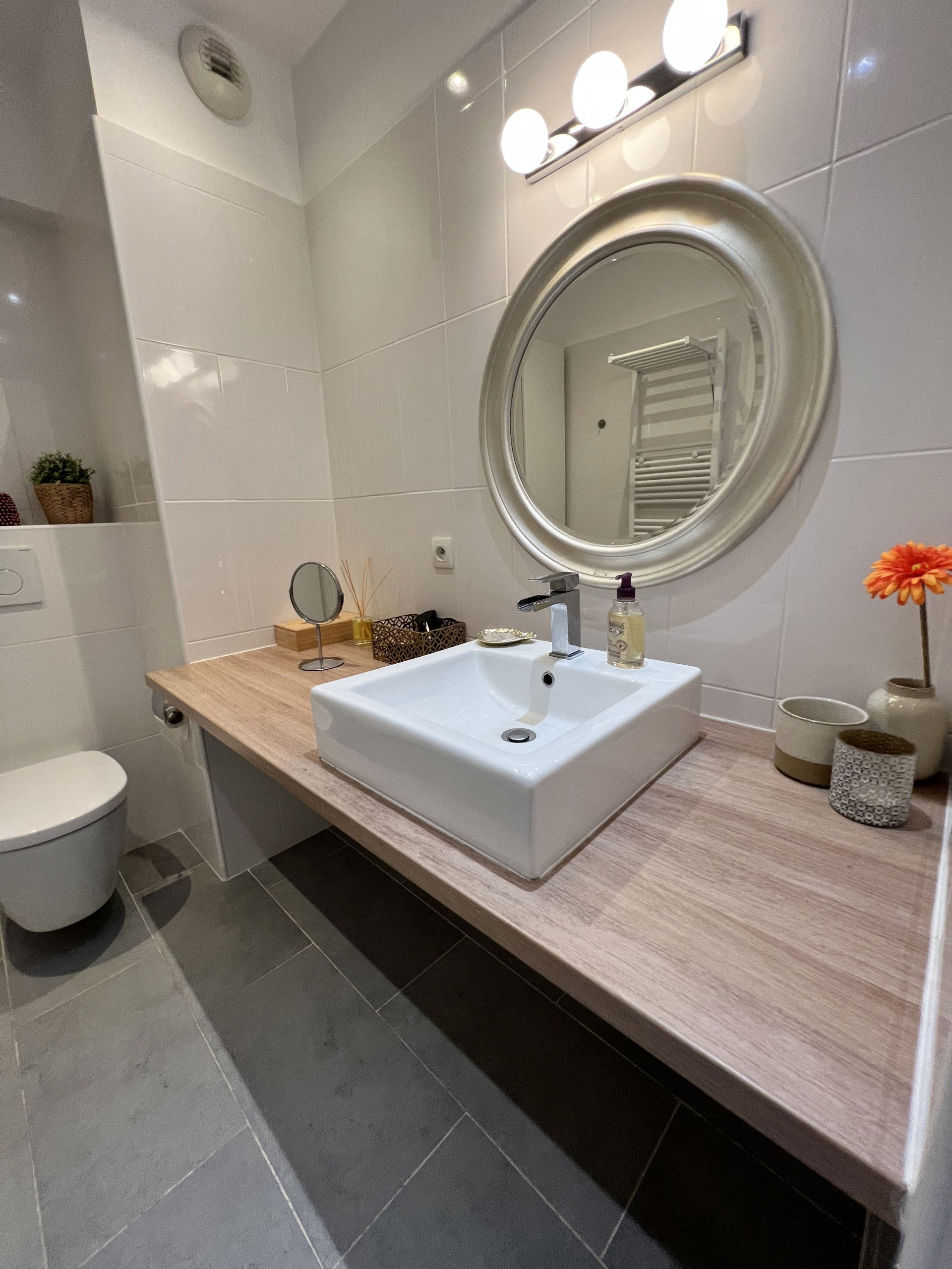 The accommodation is equipped with the following items: lift, garden furniture, 17 m² terrace, washing machine, dryer, iron, internet (Wi-Fi), hair dryer, electric heating, air conditioning throughout the house, 1 TV.