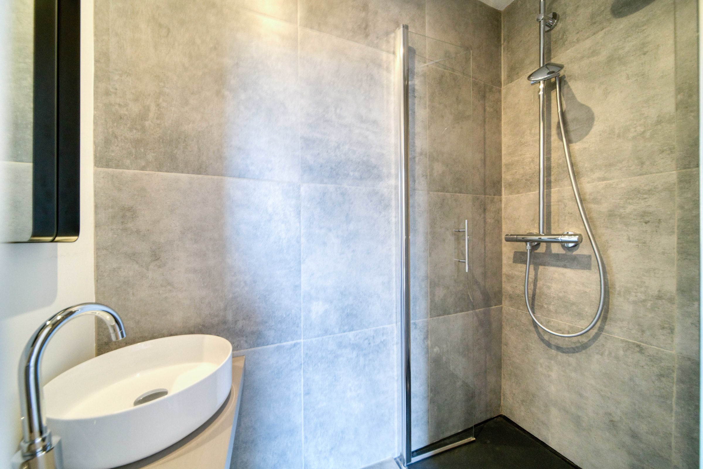 Living room equipped with sofas and armchairs, flat screen TV, access onto the balcony