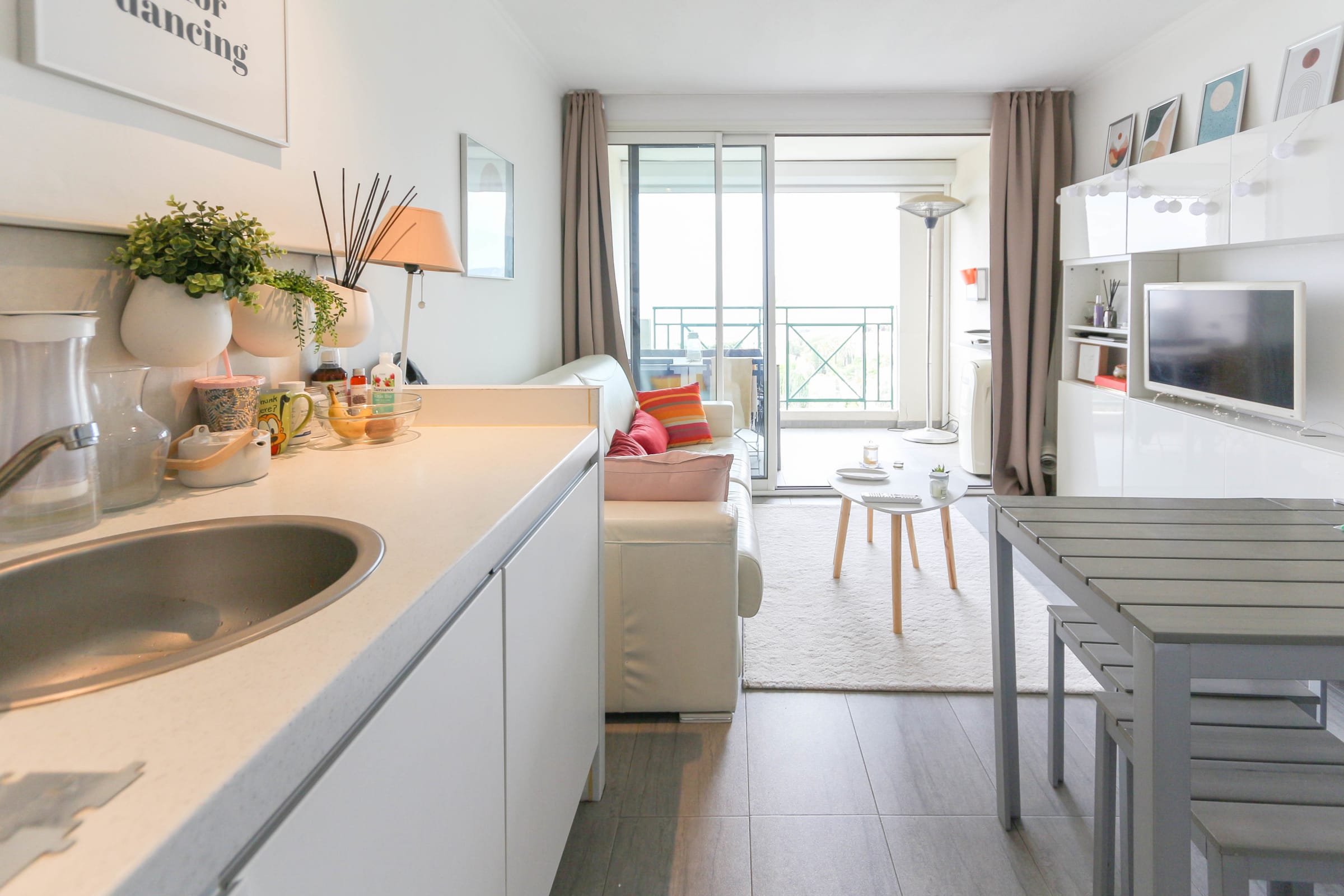 Discover this charming 2 rooms of 30m² that can accommodate 4 people, with its parking space and terrace with a breathtaking view of the bay of Cannes!