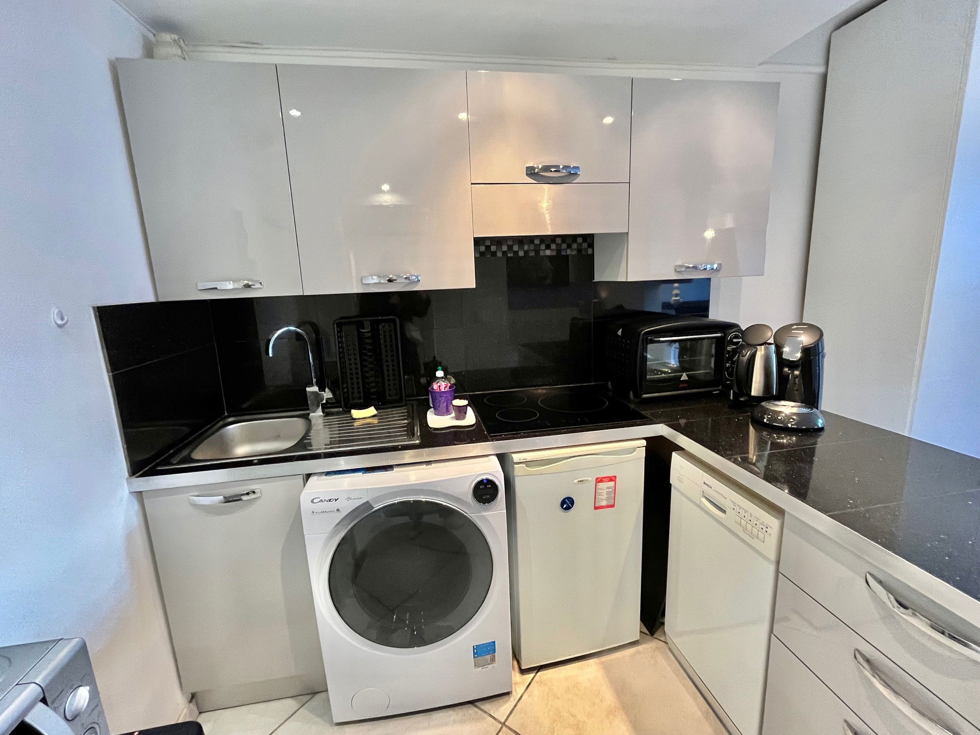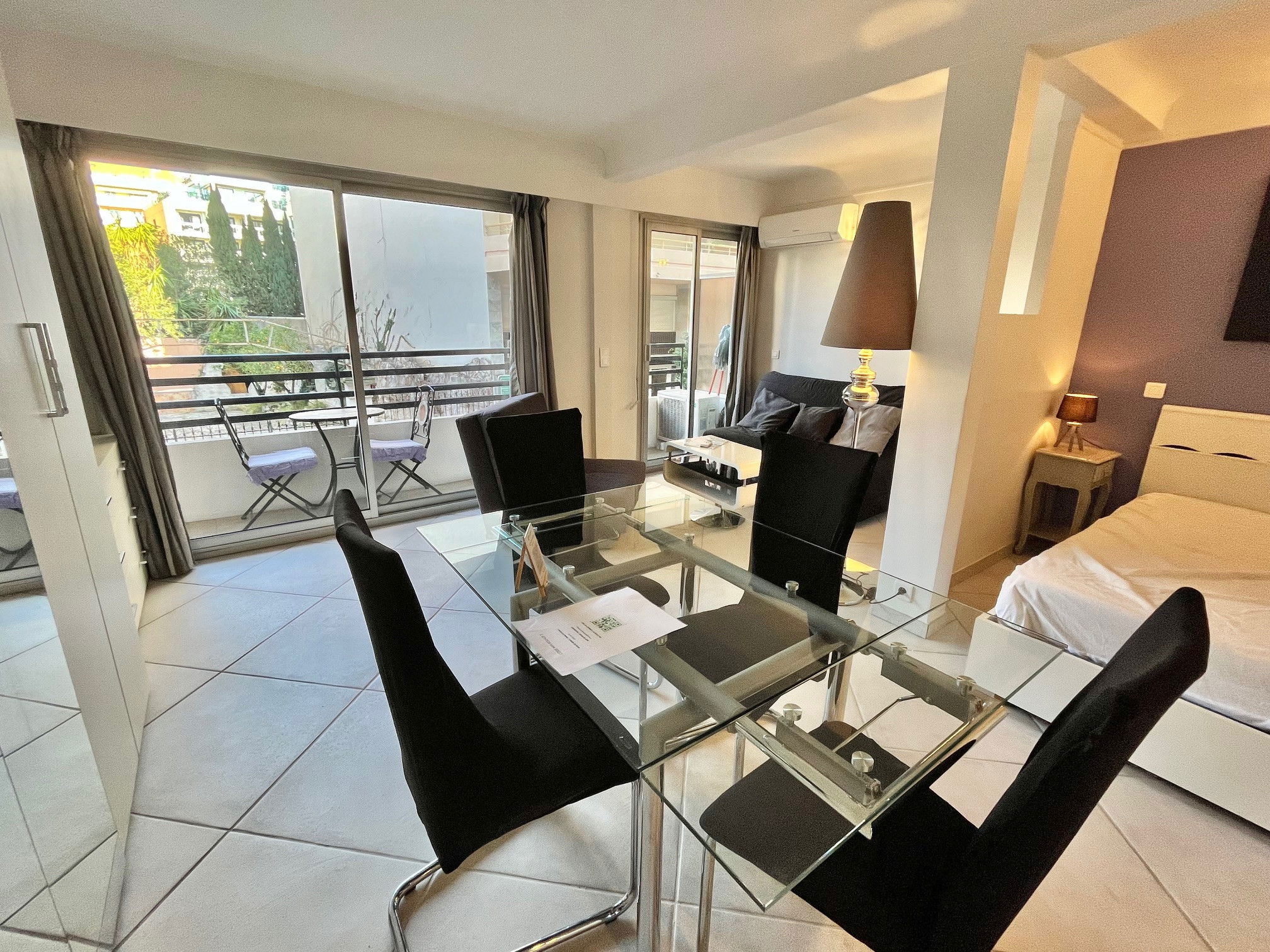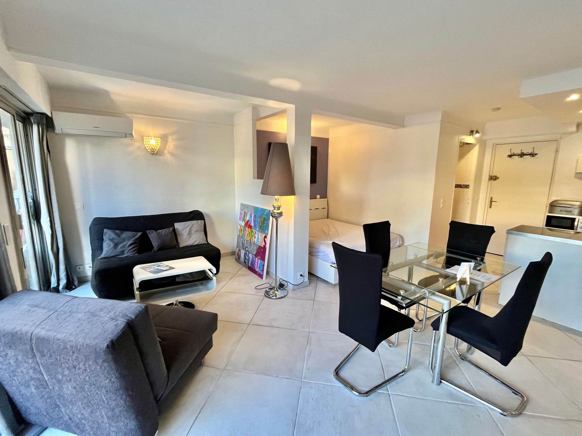 Ideally located 50 meters from the Croisette and the beaches, this charming, comfortable 33 m2 studio has a living room with sleeping area and dining area, fitted kitchen and balcony. a bathroom with wc. air conditioning wifi capacity 4 people.