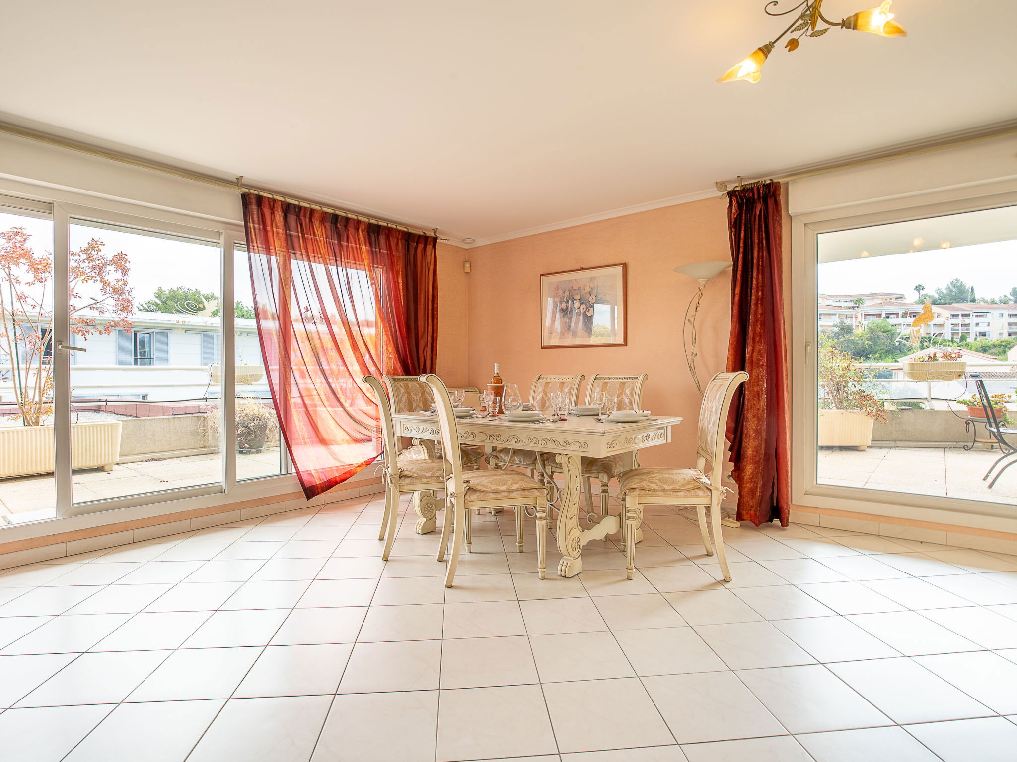 4-room apartment 122 m2 on 3rd floor. Comfortable furnishings: living/dining room 47 m2 with TV (flat screen), air conditioning. Exit to the terrace. 1 room with 1 french bed (140 cm, length 190 cm), air conditioning. Exit to the terrace. 1 room with 1 french bed (160 cm, length 200 cm), shower/WC and air conditioning. Exit to the terrace. 1 room with 1 wall-trunk bed (140 cm, length 190 cm), air conditioning. Exit to the terrace. Kitchen 11 m2 (3 hot plates, oven, dishwasher, toaster, kettle, microwave, freezer, electric coffee machine, Capsules for coffee machine (Nespresso) extra). Bathroom, sep. WC. Air-conditioning, forced-air heating. 2 terraces 25 m2, east facing position and north facing position terrace 50 m2, west facing position. Terrace furniture. View of the mountains. Facilities: washing machine. Internet (WiFi, free). Parking space n 672. Please note: smoke alarm. Offer by a private individual according to Art. 155, IV of CGI. 06030 000390 44
