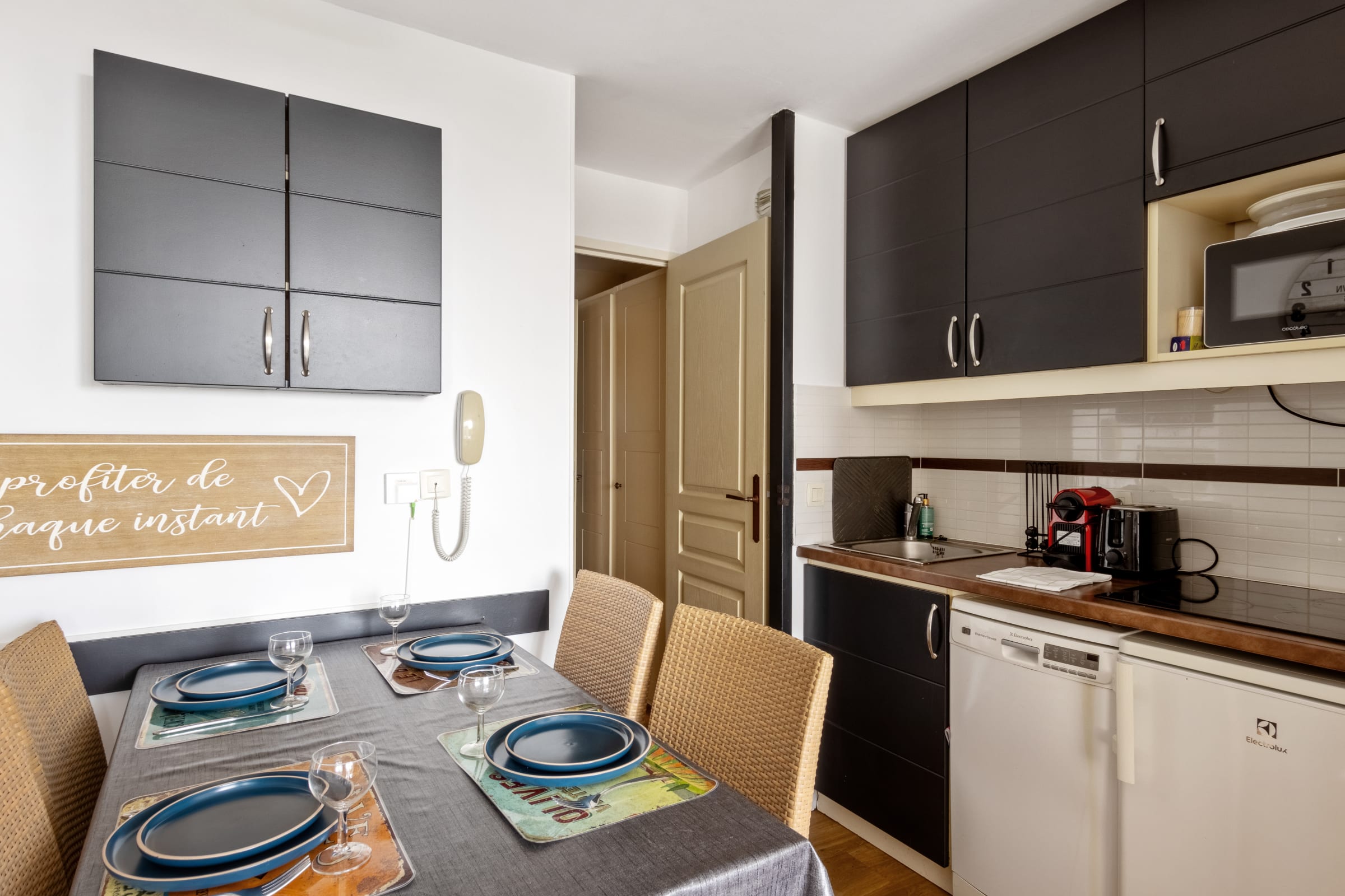 - a fully-equipped kitchen (coffee machine, toaster, microwave, hob, fridge, dishwasher),