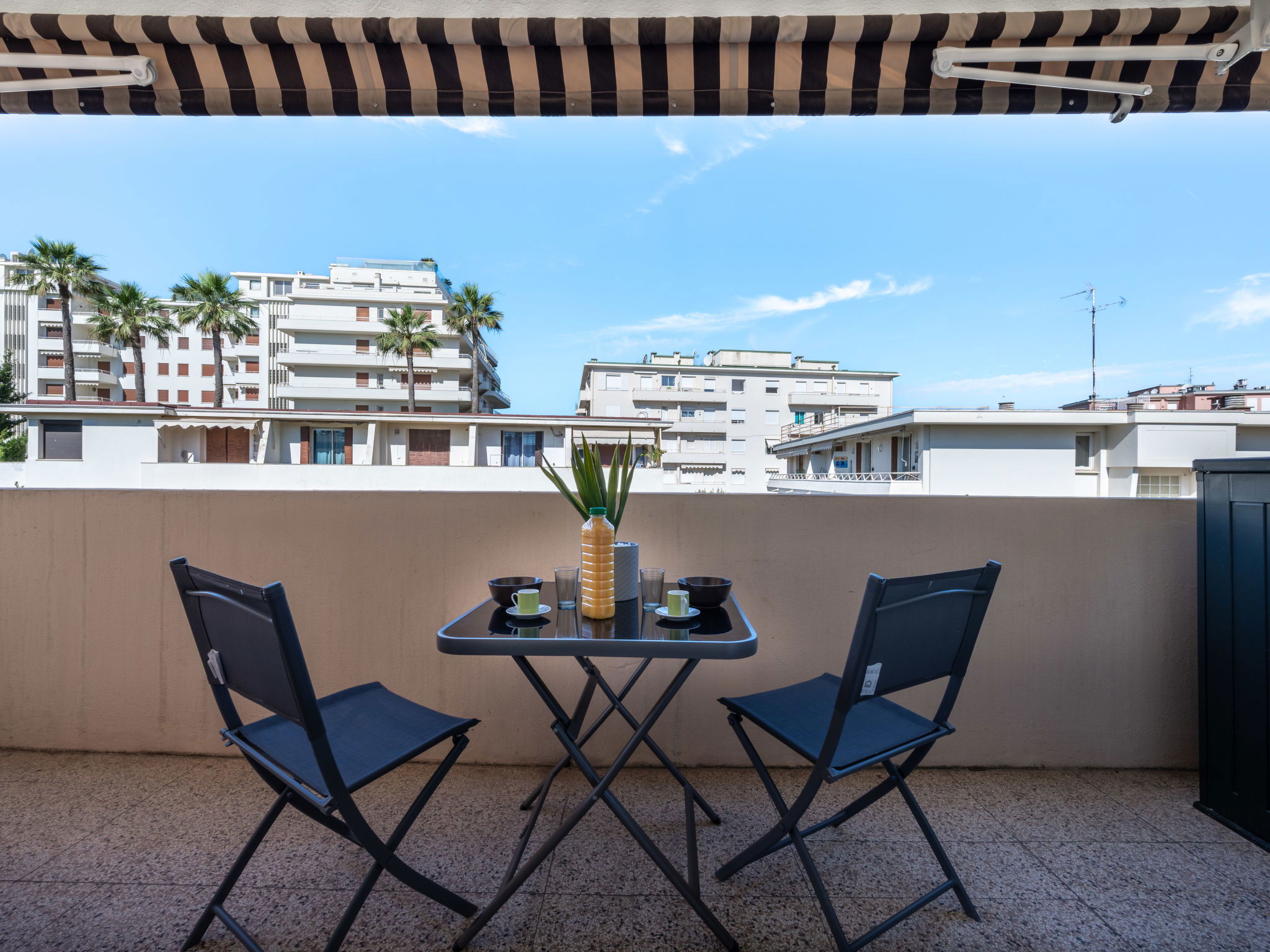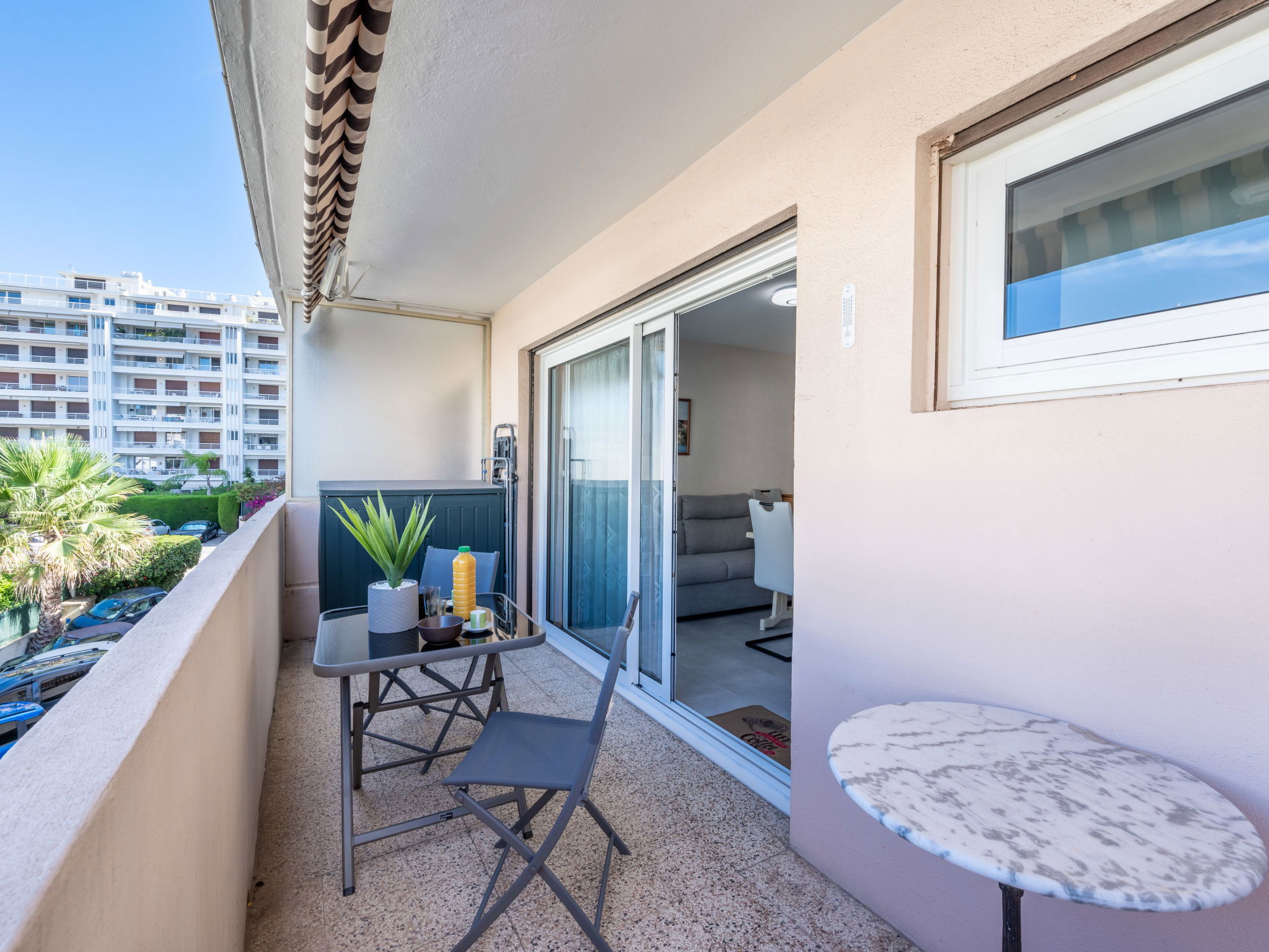 Apartment block "Le Copacabana", 2 storeys. In the district of Palm Beach, 100 m from the sea, 100 m from the beach, in a cul-de-sac. Parking at the house. Grocery, restaurant, bakery 100 m, bus stop "Hesperides" 260 m, sandy beach "Mouré Rouge" 100 m. Sailing school 100 m. Nearby attractions: Palais des Festivals 2 km, Vieil Antibes 9 km, Nice 33 km. Well-known lakes can easily be reached: Lac de Saint-Cassien 40 m. Hiking paths: Estérel 40 m. Please note: no lift.