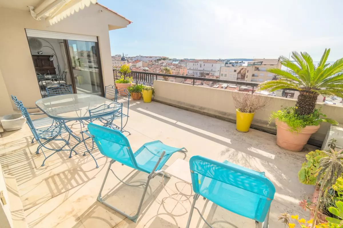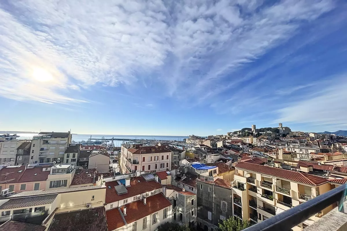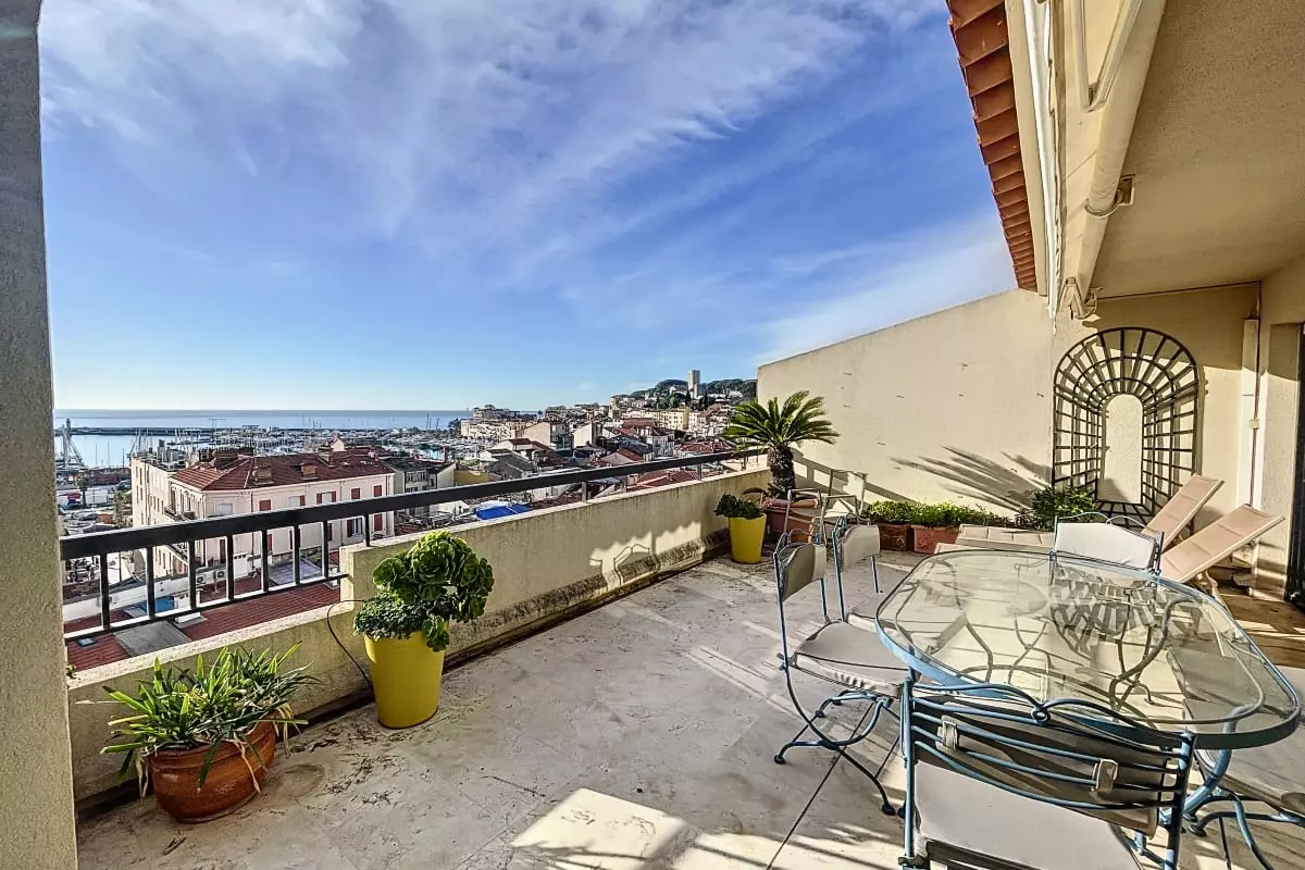 In a modern residence, 2 minutes from the Old Port and Forville Market: superb 110 m2 apartment with 50 m2 roof terrace and panoramic sea view from Pointe Croisette to Le Suquet.