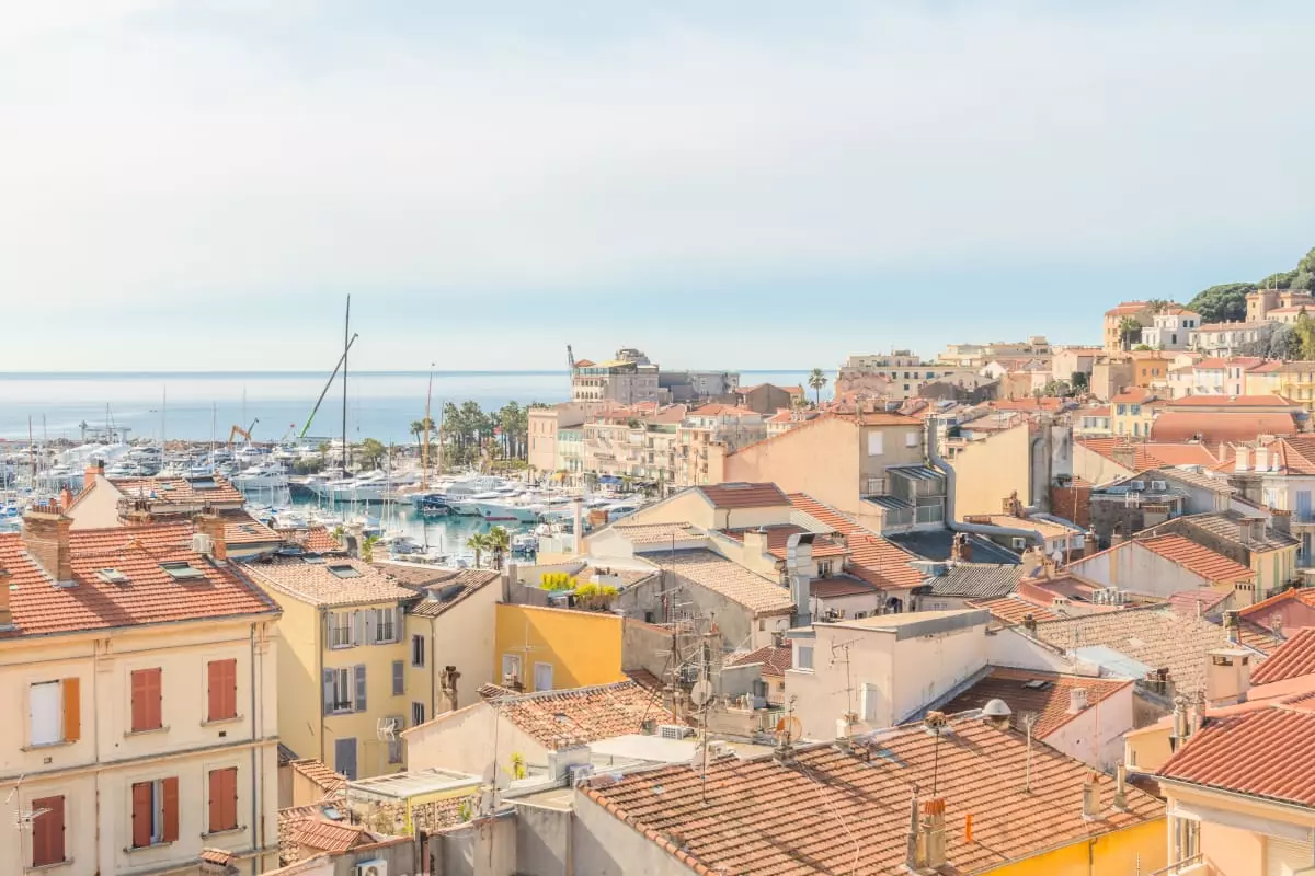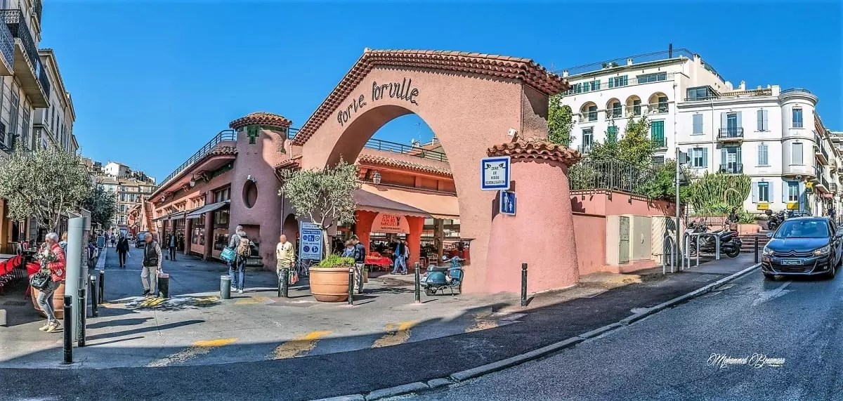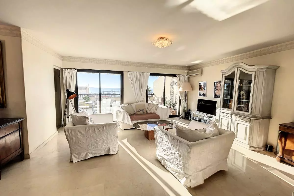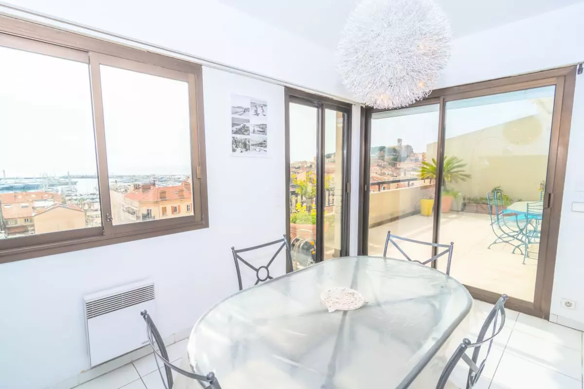 In a modern residence, 2 minutes from the Old Port and Forville Market: superb 110 m2 apartment with 50 m2 roof terrace and panoramic sea view from Pointe Croisette to Le Suquet.