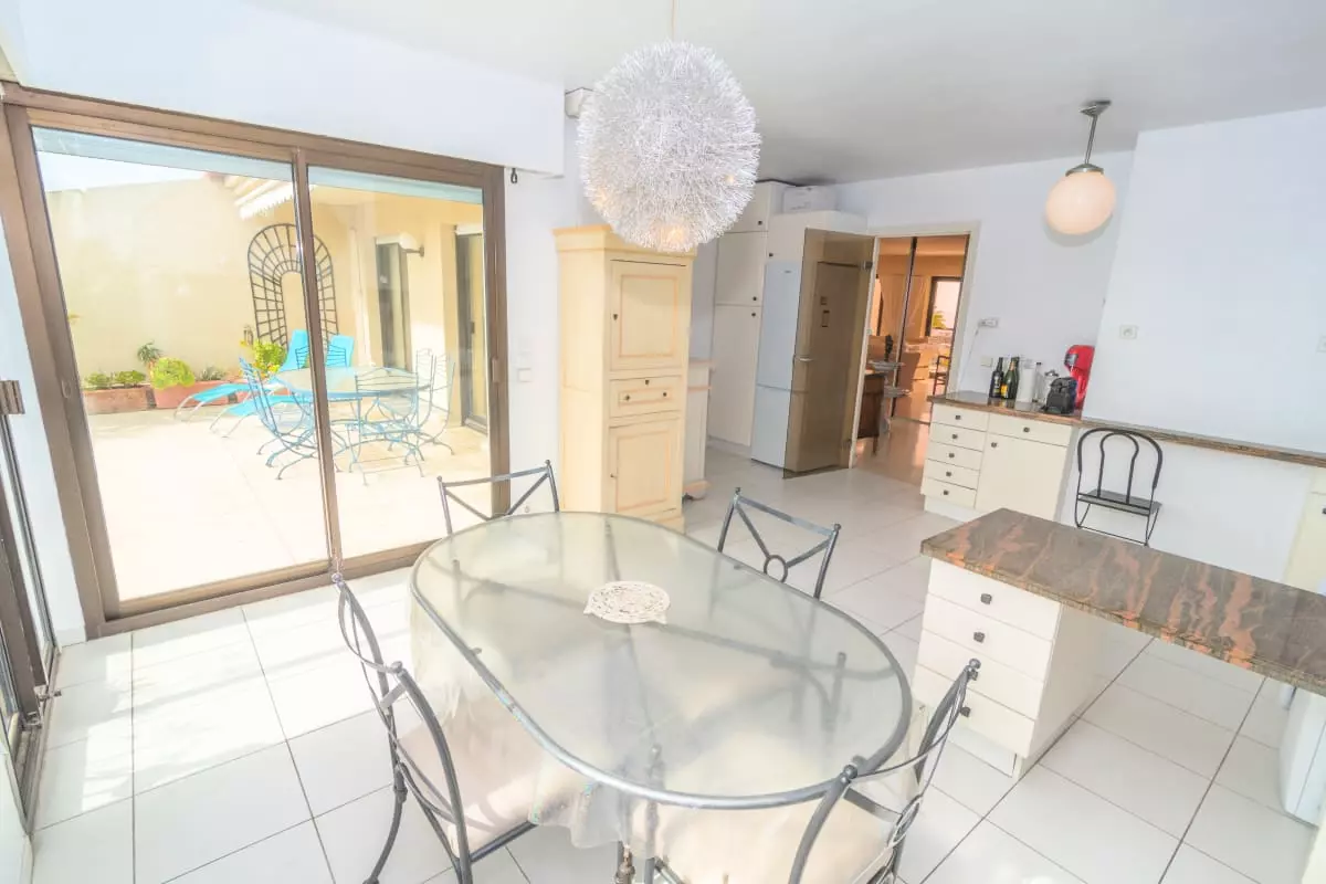 For your meals, you will have the choice between the indoor dining table in the large kitchen or the garden furniture located on the terrace with a view of the Big Blue.