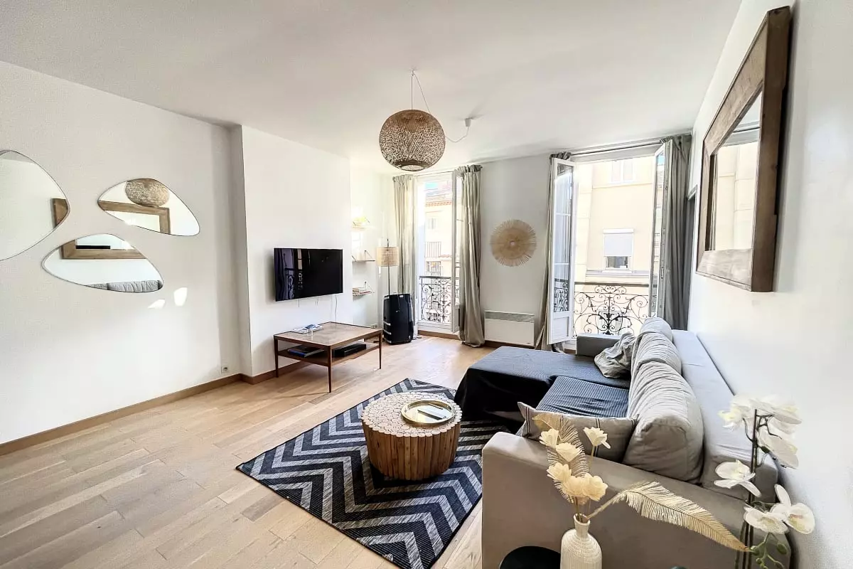 Cannes: Charming 2-bedroom apartment located in the heart of Cannes, tastefully renovated in 2022. It is just a few minutes' walk from the Palais du Festival (ideal for MIPIM, Film Festival, Cannes Lions, MAPIC, ILTM, etc.) and is also perfect for family vacations.