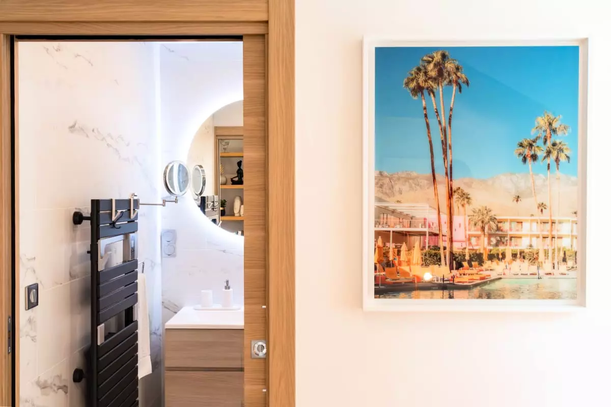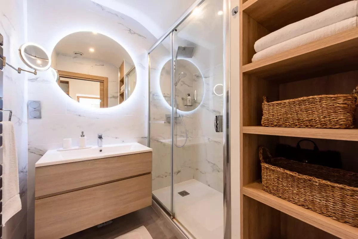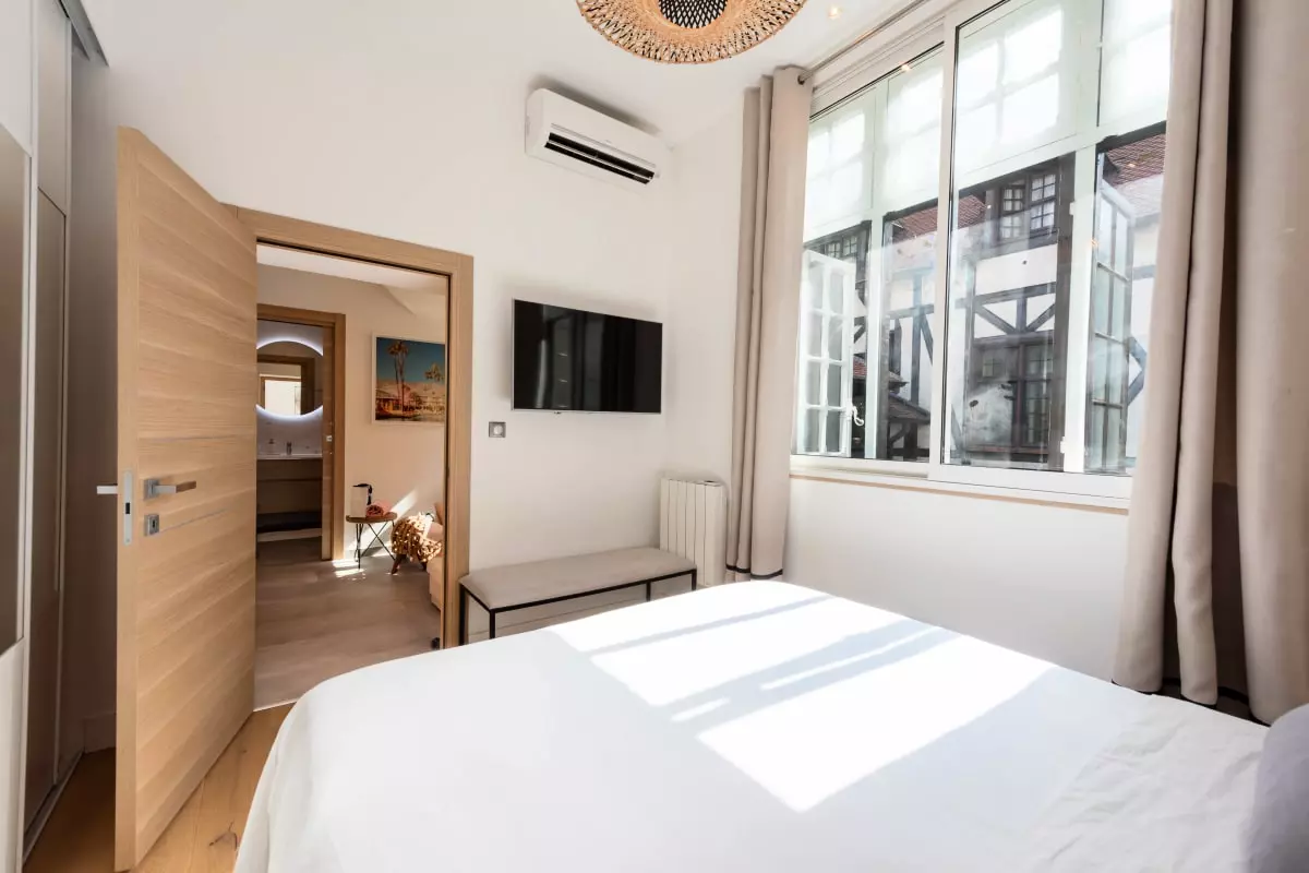 The bedroom will offer you a queen-size bed (160cm) as well as a built-in dressing room and a smart TV.