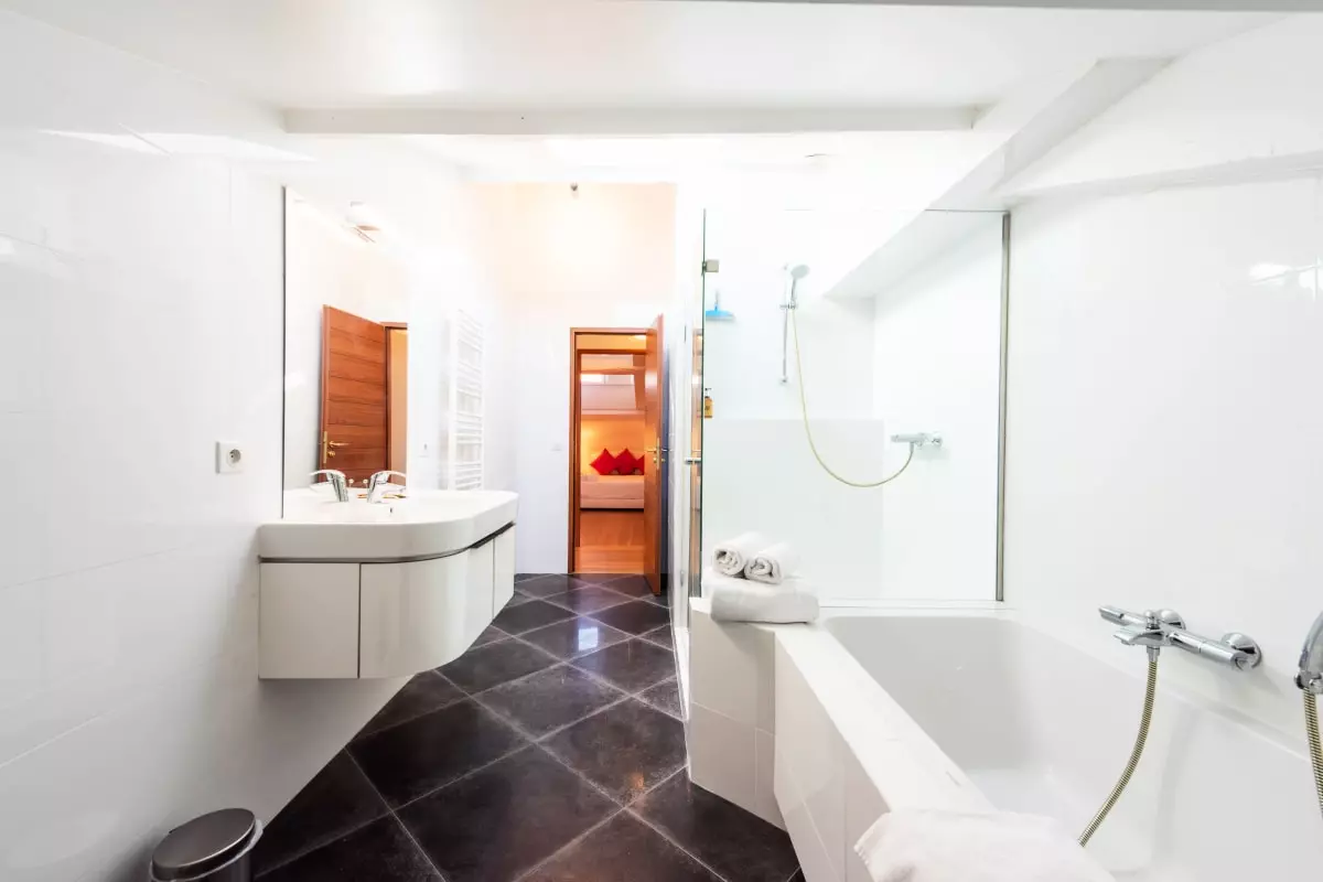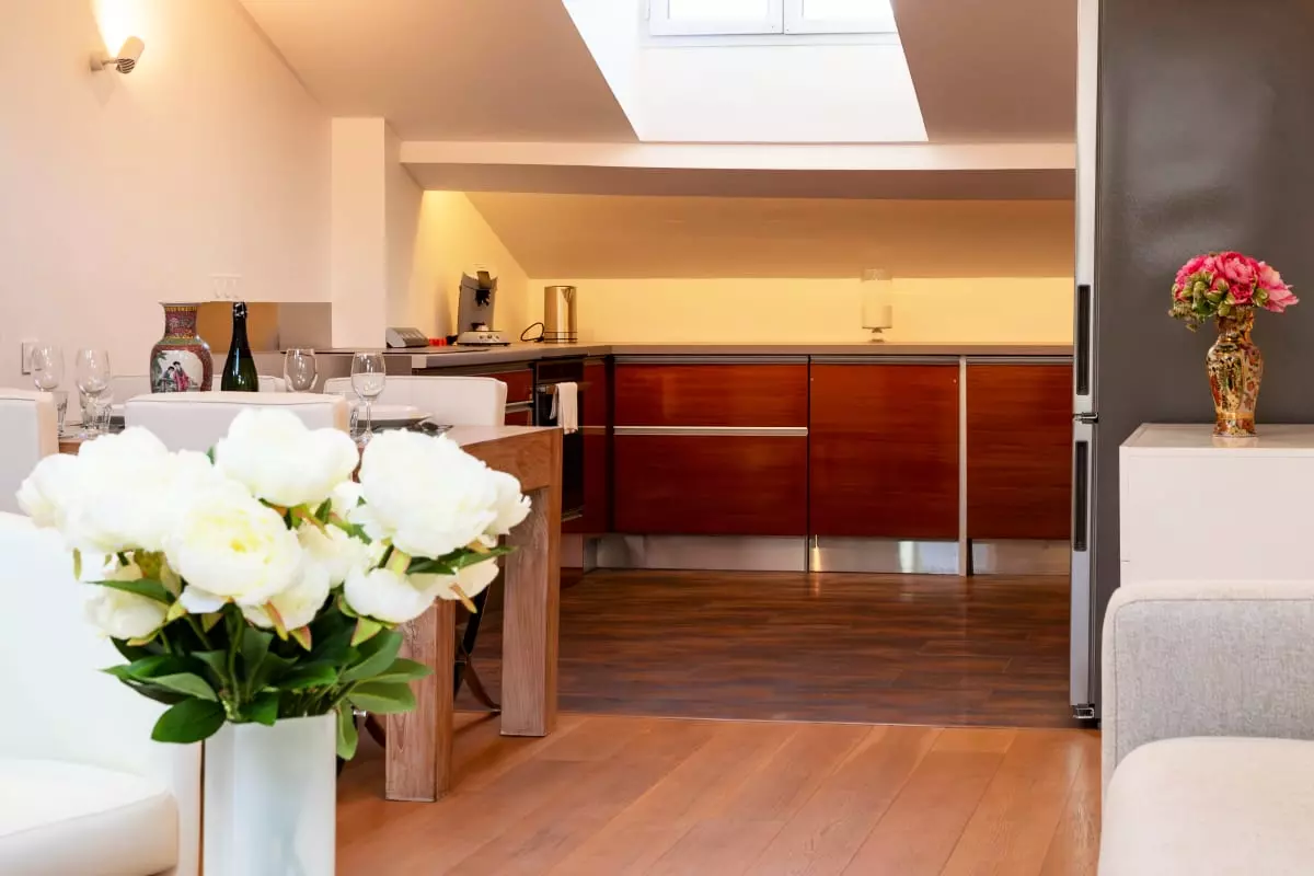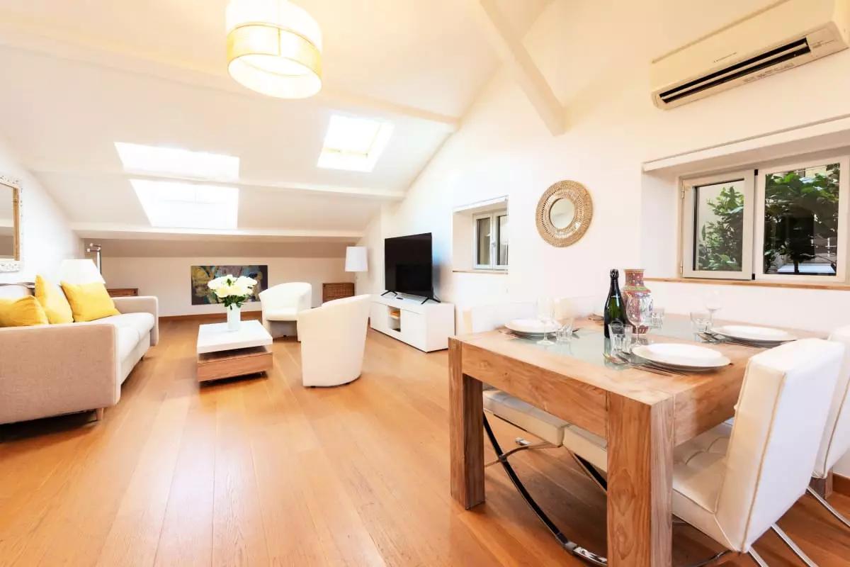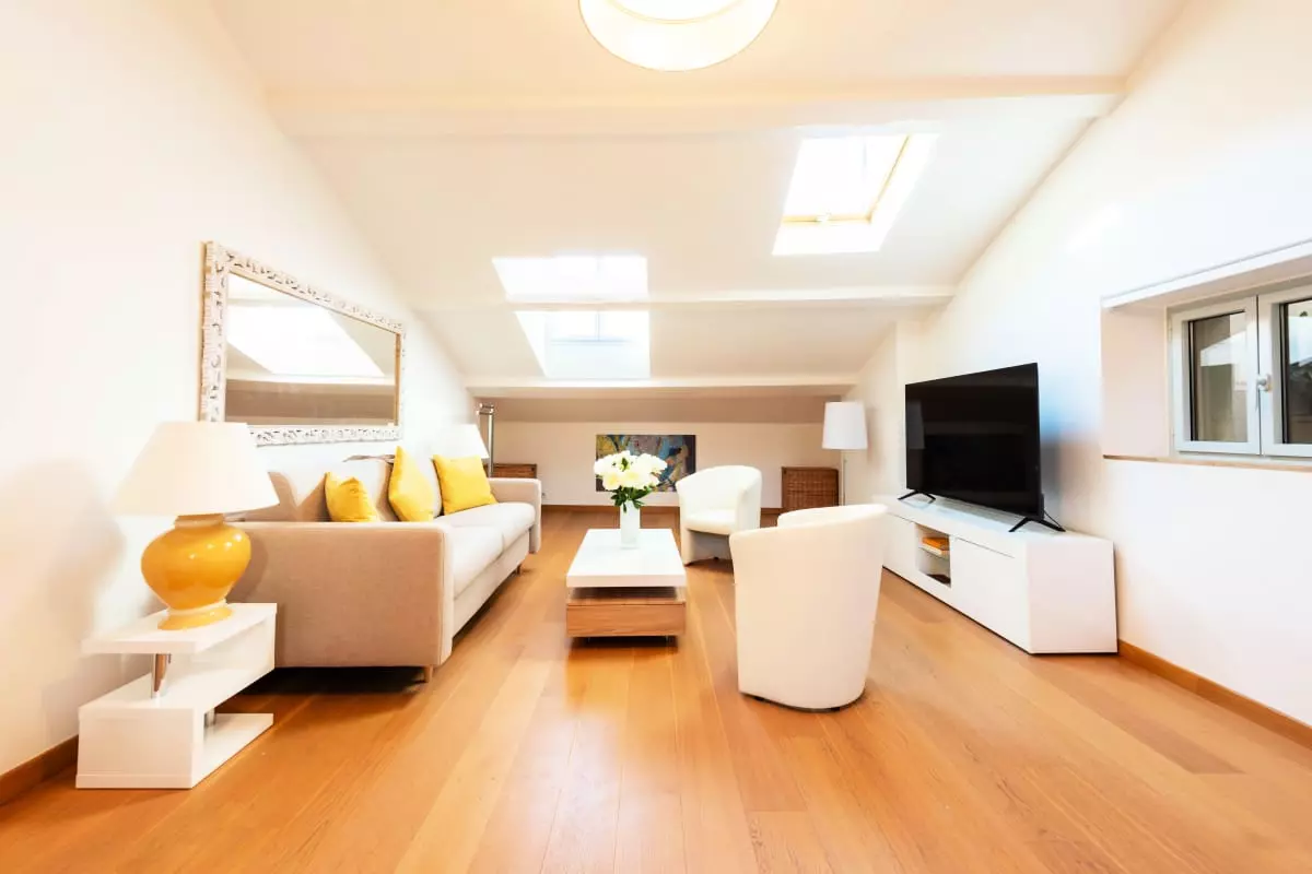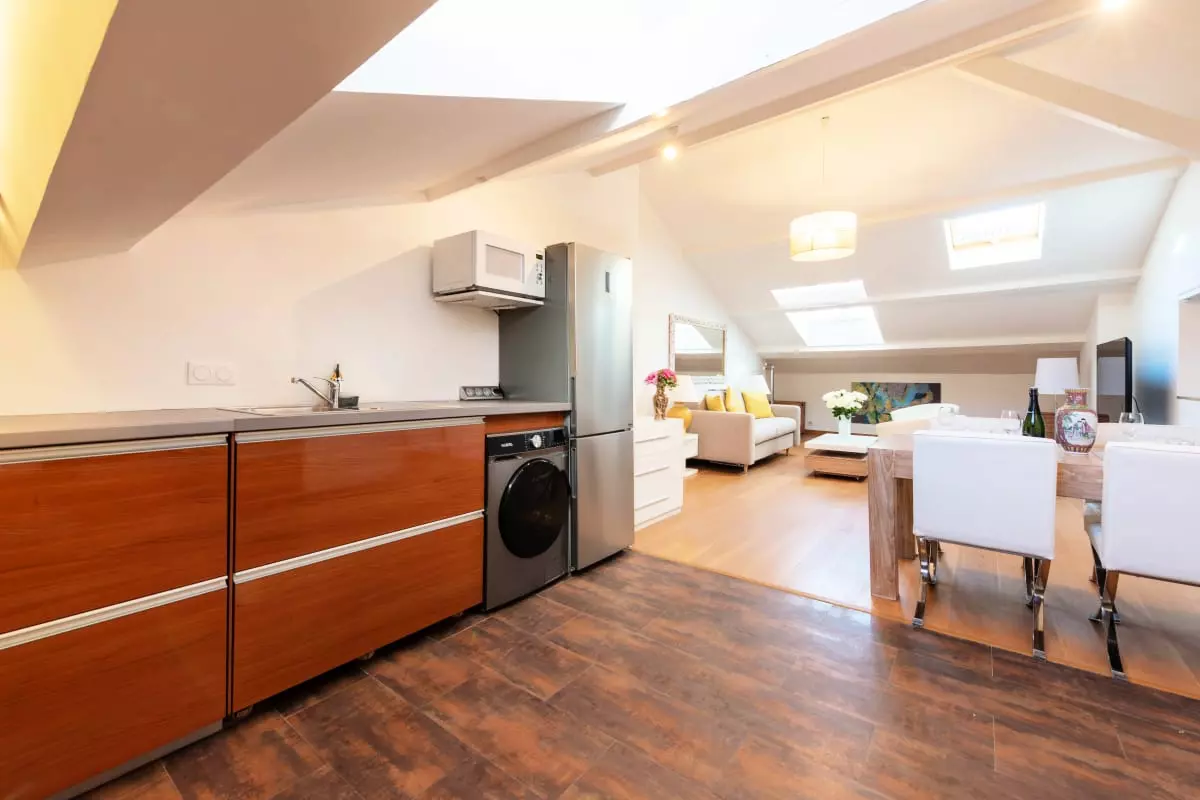 - A large living room with a carefully decorated lounge: a large sofa, large screen smart TV, as well as a dining area for 4 people.