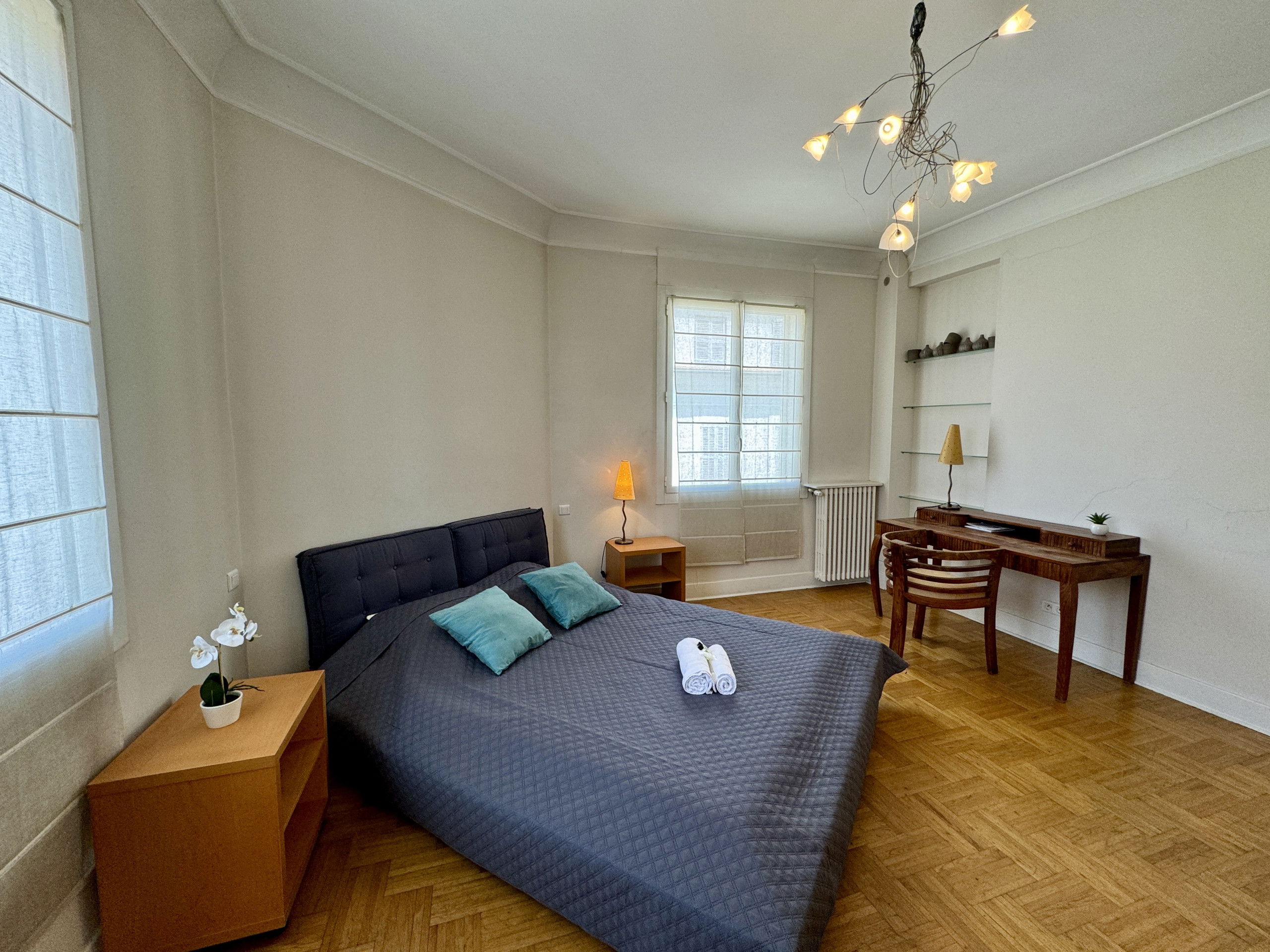 105m2 three bedrooms , 3 bathrooms apt, 4th floor with elevators, at 5mn walking distance to the Palais des Festivals.