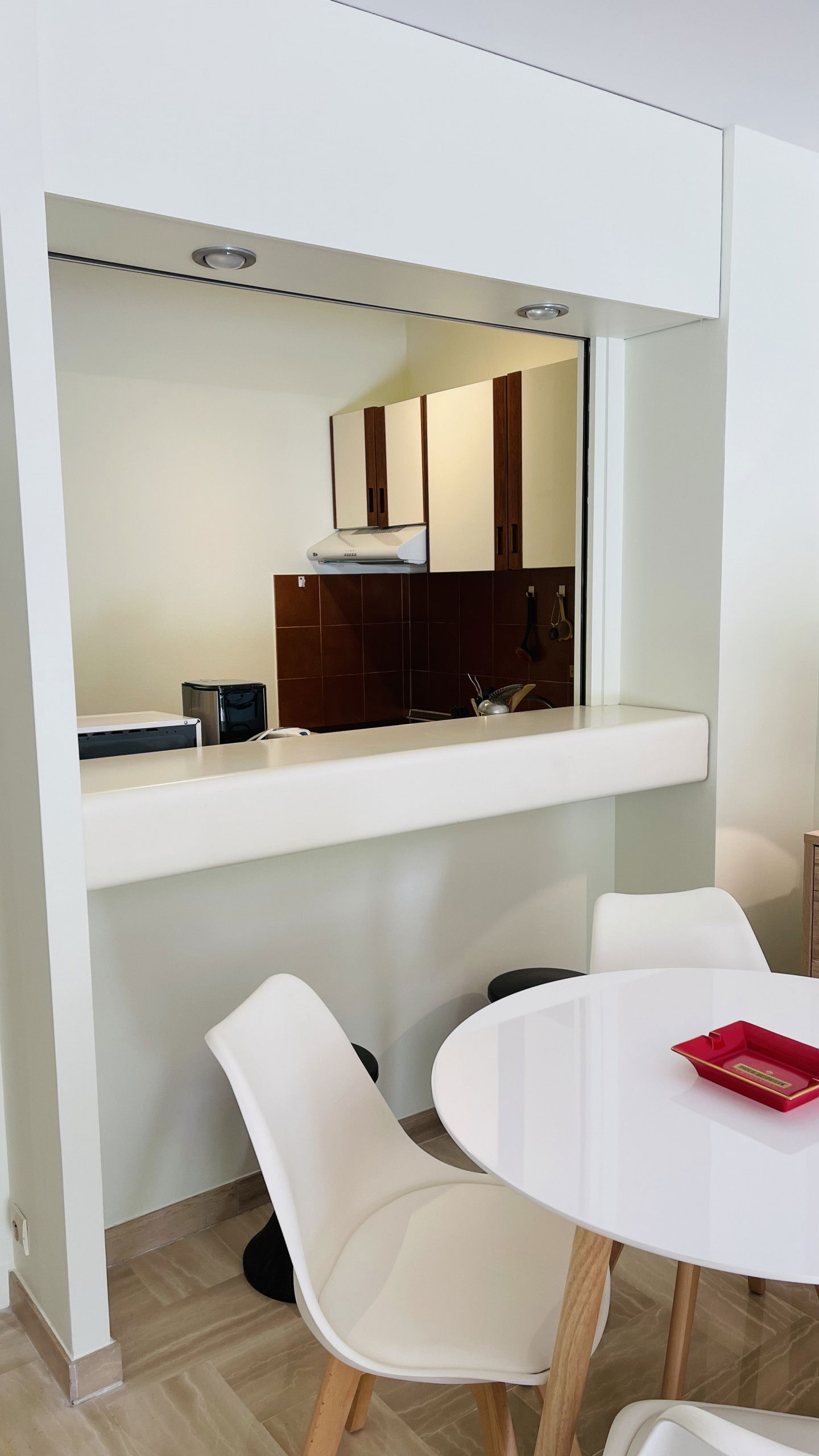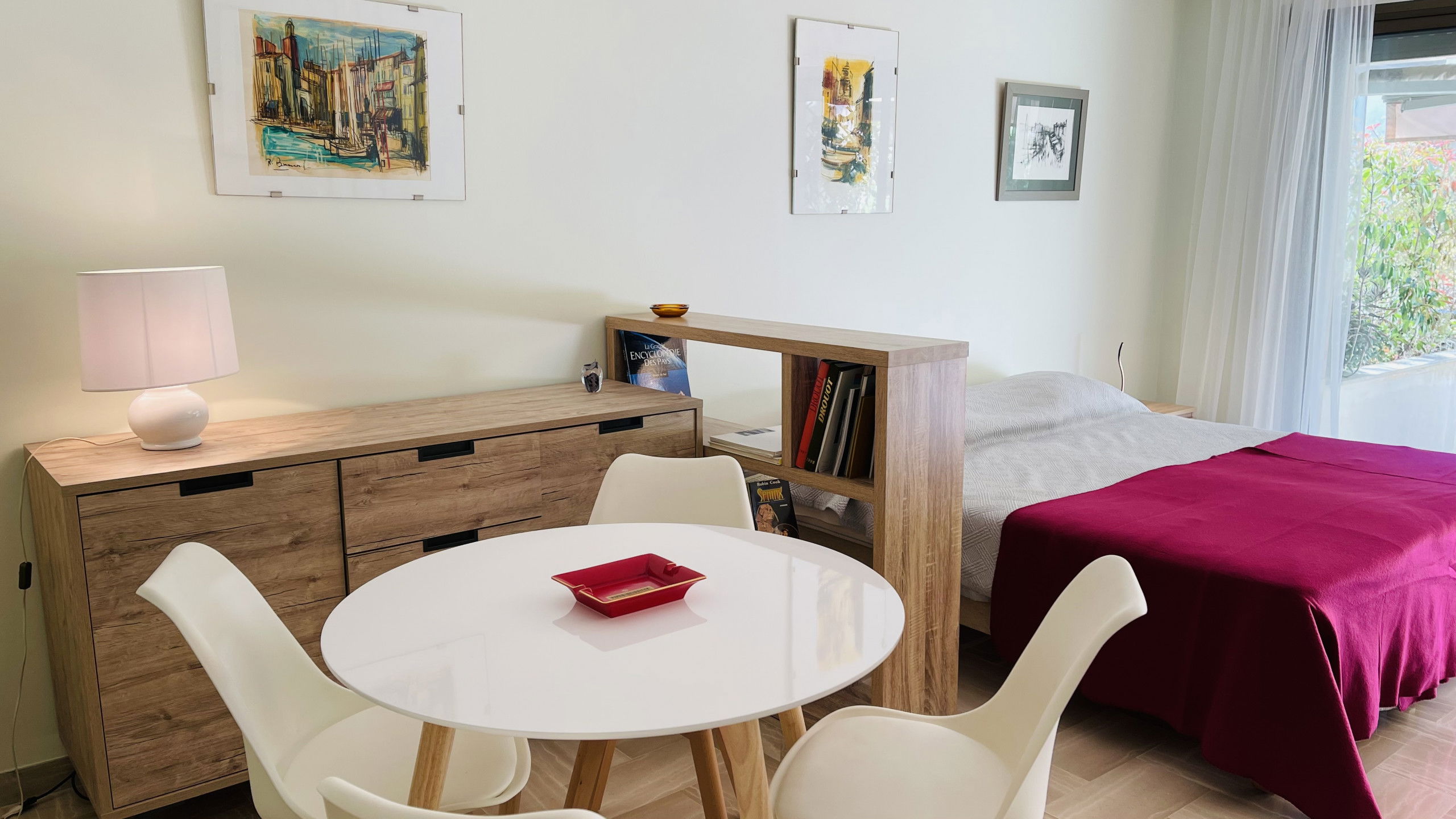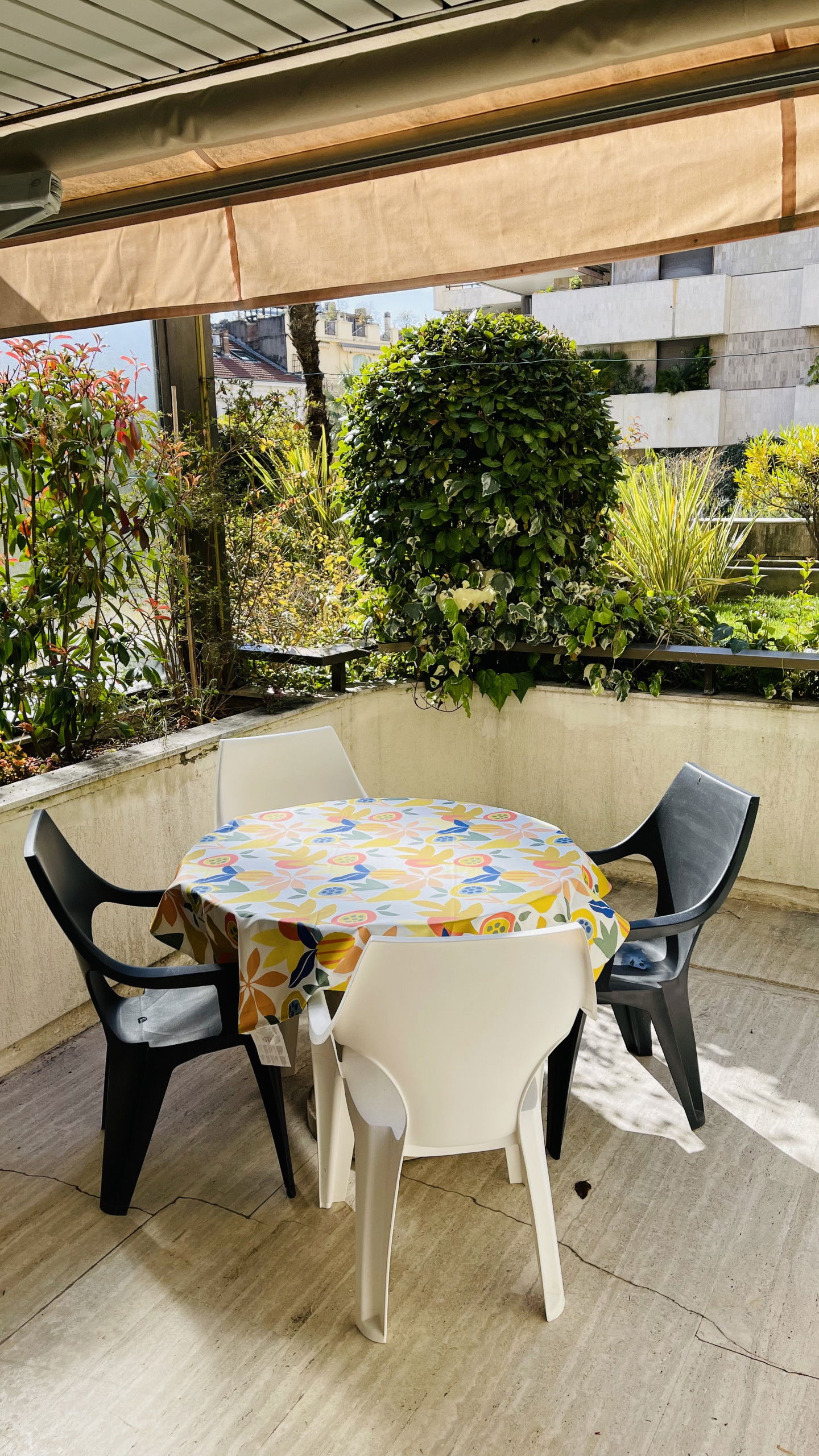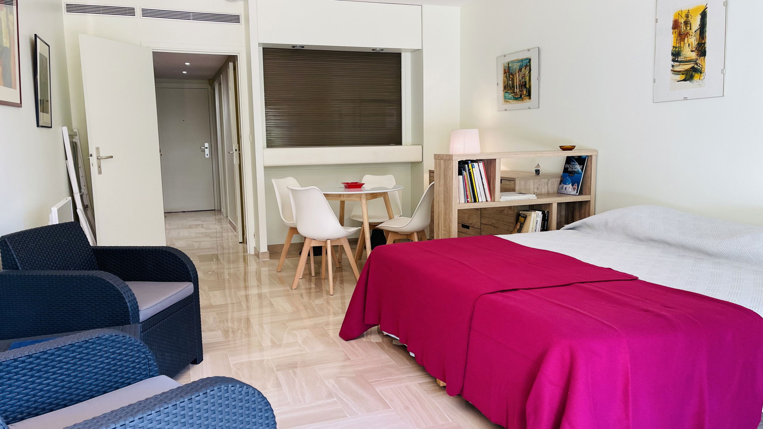 Welcome to this charming studio of approximately 35m², facing south and located on the 3rd floor with an elevator. This accommodation offers a pleasant setting for your stay.The living area is equipped with two twin beds (2x90x190), a television, and WIFI for your moments of relaxation. The kitchen is functional with a refrigerator, an oven, a 4-burner ceramic hob, a coffee maker, a toaster, a kettle, and a dishwasher to simplify your household tasks.The bathroom is equipped with a shower, a hairdryer. The toilet is separate for added convenience. Air conditioning is provided by the building, ensuring a comfortable environment throughout your stay.Washing machine, iron and ironing table at disposalA large terrace with outdoor furniture offers a peaceful outdoor space to enjoy the sun and fresh air. The high-end building ensures security 24/7. Paid underground parking is available for your vehicle.The advantages of this location are numerous, with the beach and the Croisette just 150 meters away. The train station (SNCF) is also 150 meters away, facilitating your travels. Nearby, you will find shops, a supermarket, and restaurants, making your stay as convenient as it is comfortable.