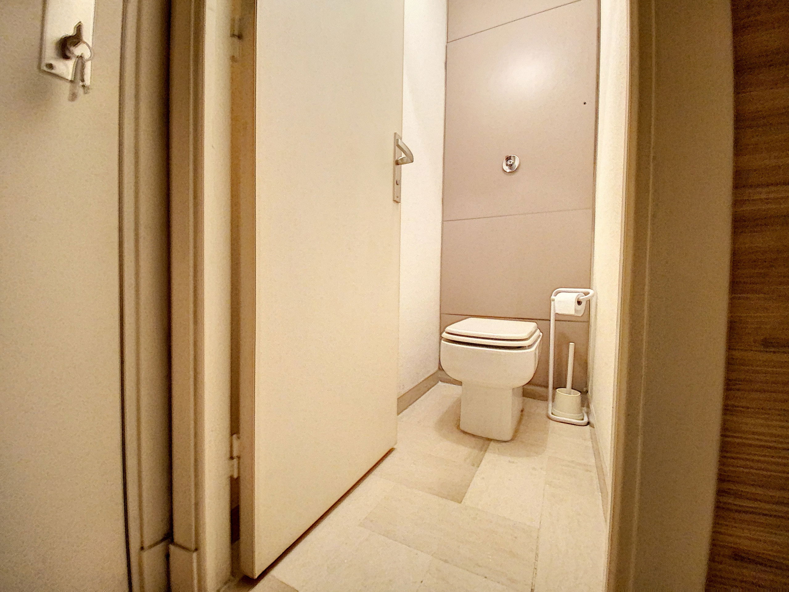 The bathroom is equipped with a hairdryer for your convenience, and the toilet is separate for added privacy. The air conditioning in the building ensures a pleasant climate throughout your stay. An iron and ironing table are at disposal.