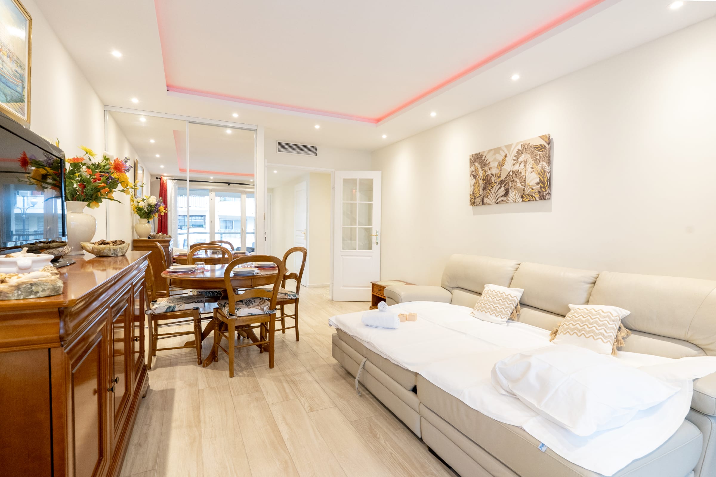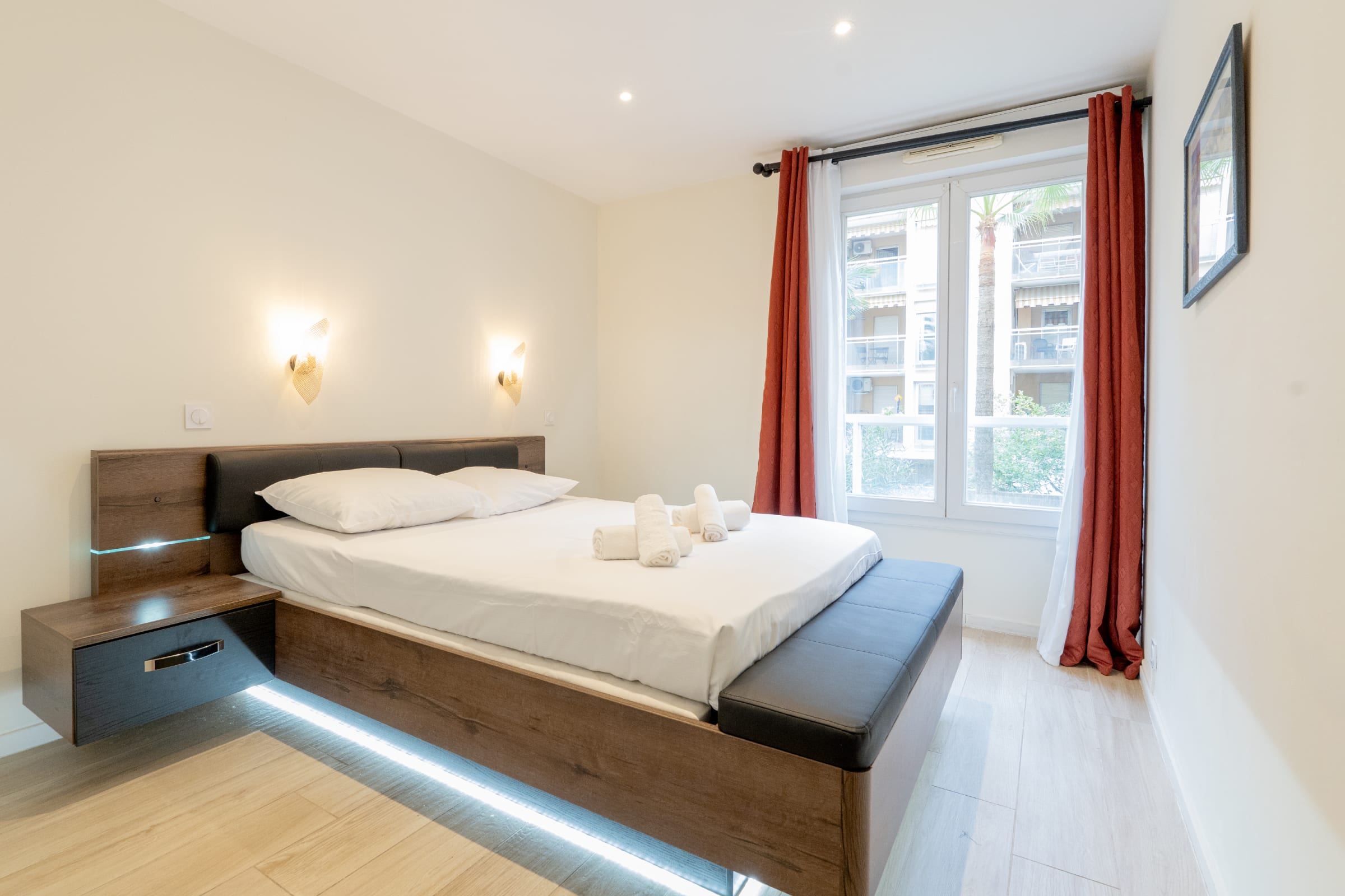 Cannes, the emblematic city of the Côte d'Azur, is renowned for its film festival, its sandy beaches and its lively port. The Lycée Carnot district, where the flat is located, is quiet and residential, yet close to all amenities. You can reach the famous Rue d'Antibes, known for its luxury boutiques, in just a few minutes on foot. Explore the charming lanes of Le Suquet or spend a sunny day on the Croisette. Enjoy fine restaurants such as La Môme or Mediterranean dishes at Bobo Bistro, just a short walk away.