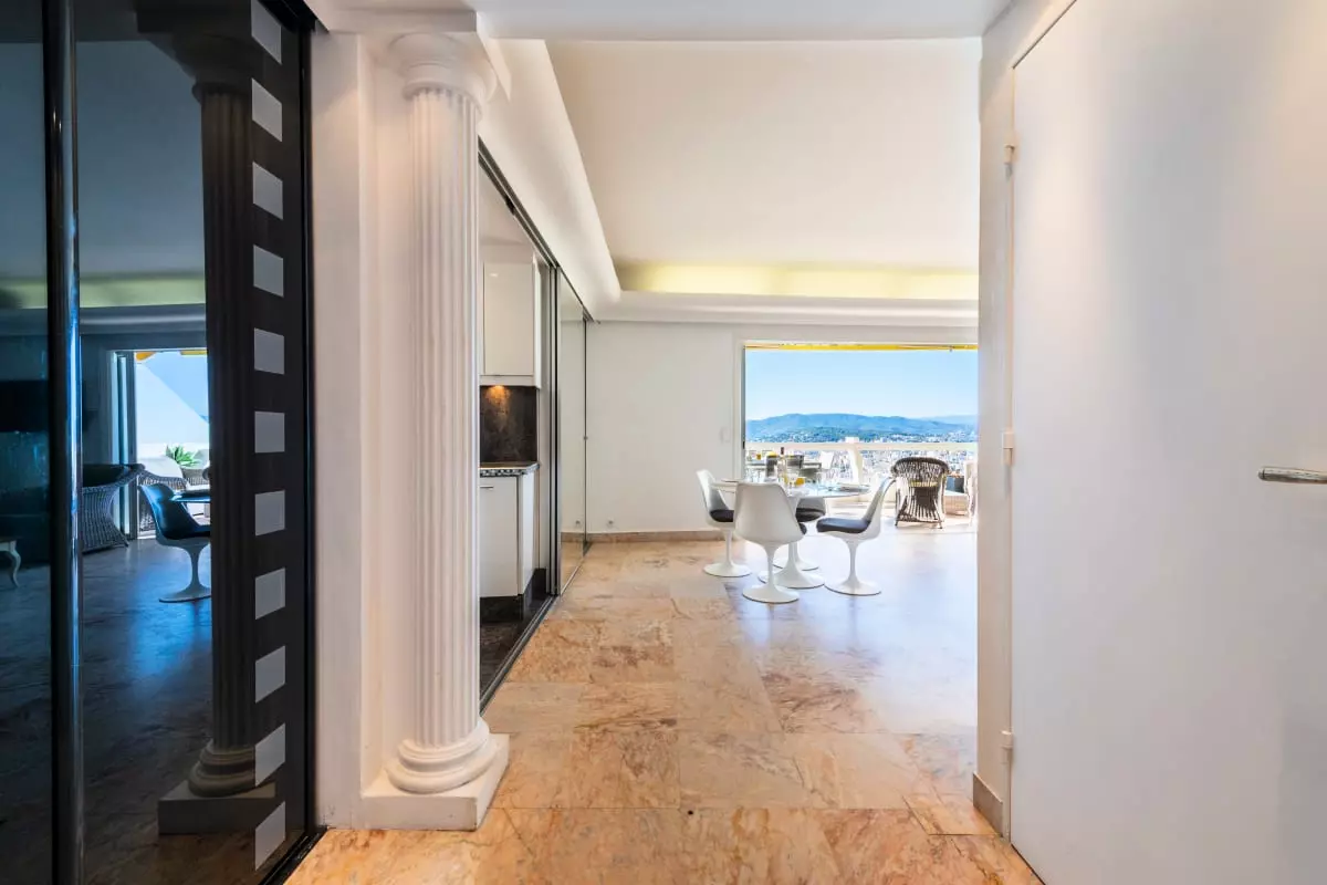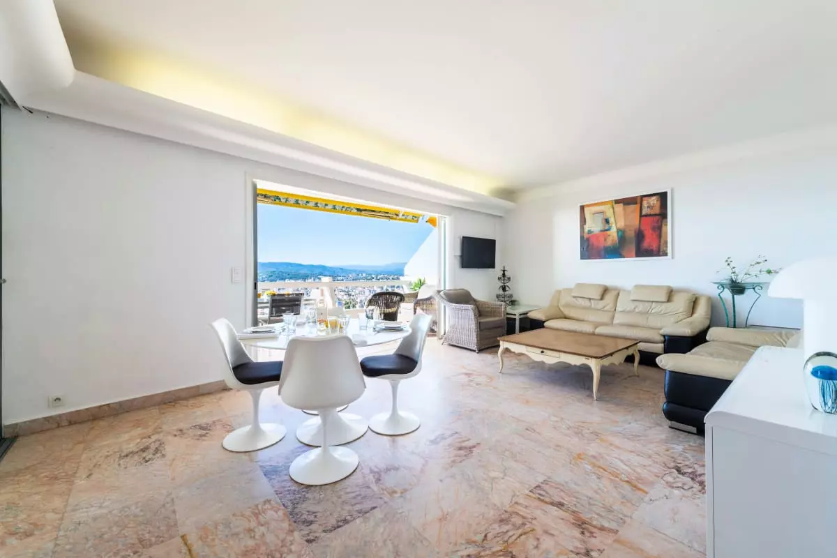 A bright, airy apartment overlooking Cannes, where sunsets over the hills meet the sparkling sea and illuminate your stay. From its terrace, you can enjoy a breathtaking panorama, a perfect blend of residential tranquility and proximity to the vibrant atmosphere of the French Riviera.