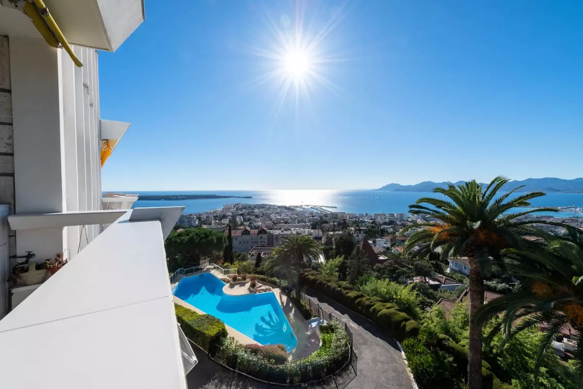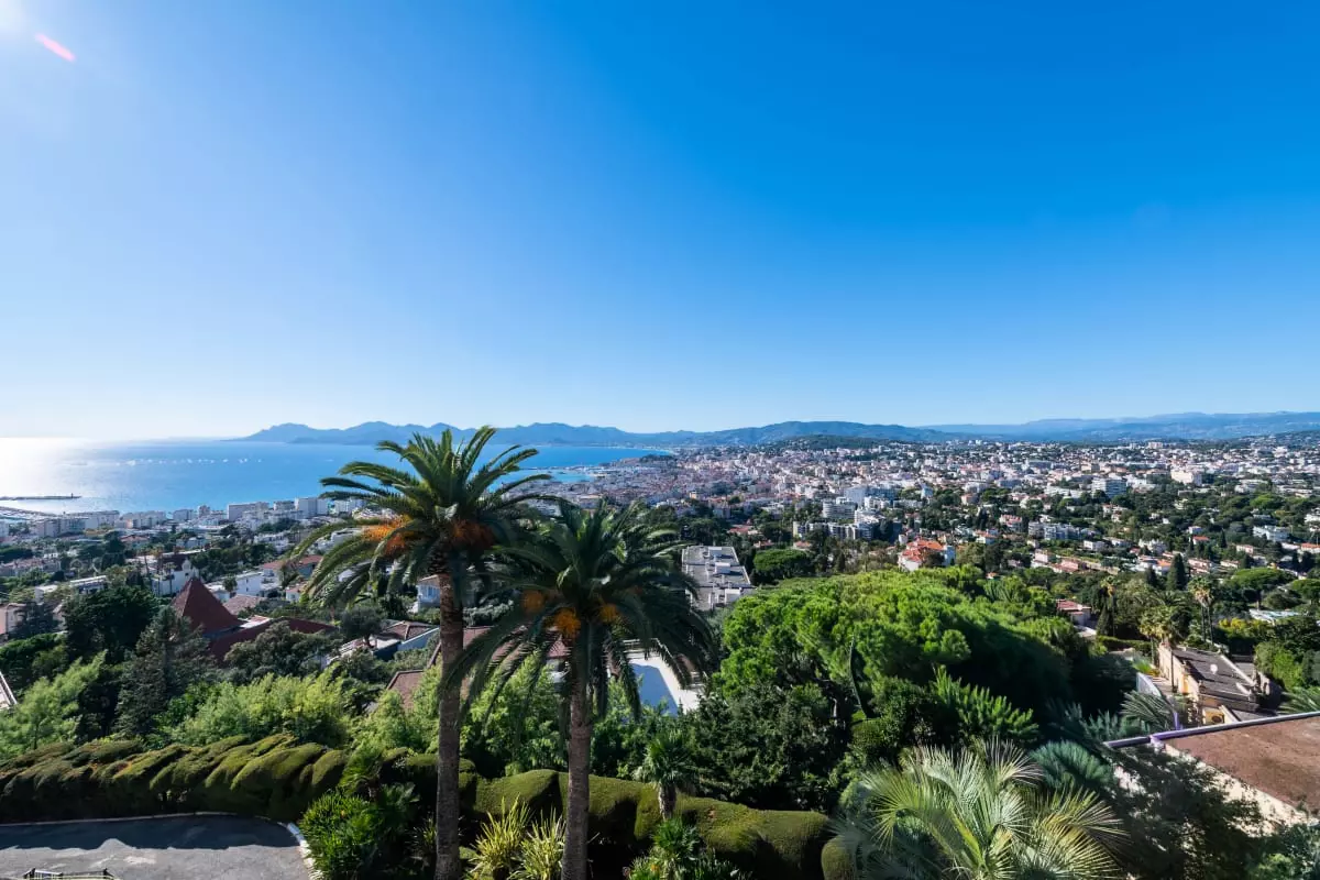 The apartment is located in the residential area of La Californie in Cannes, a quiet and sought-after area, perched on the heights, which offers a privileged view of the bay, the hills and the islands.