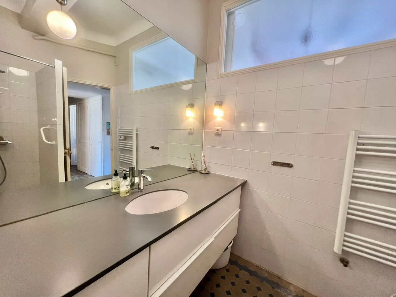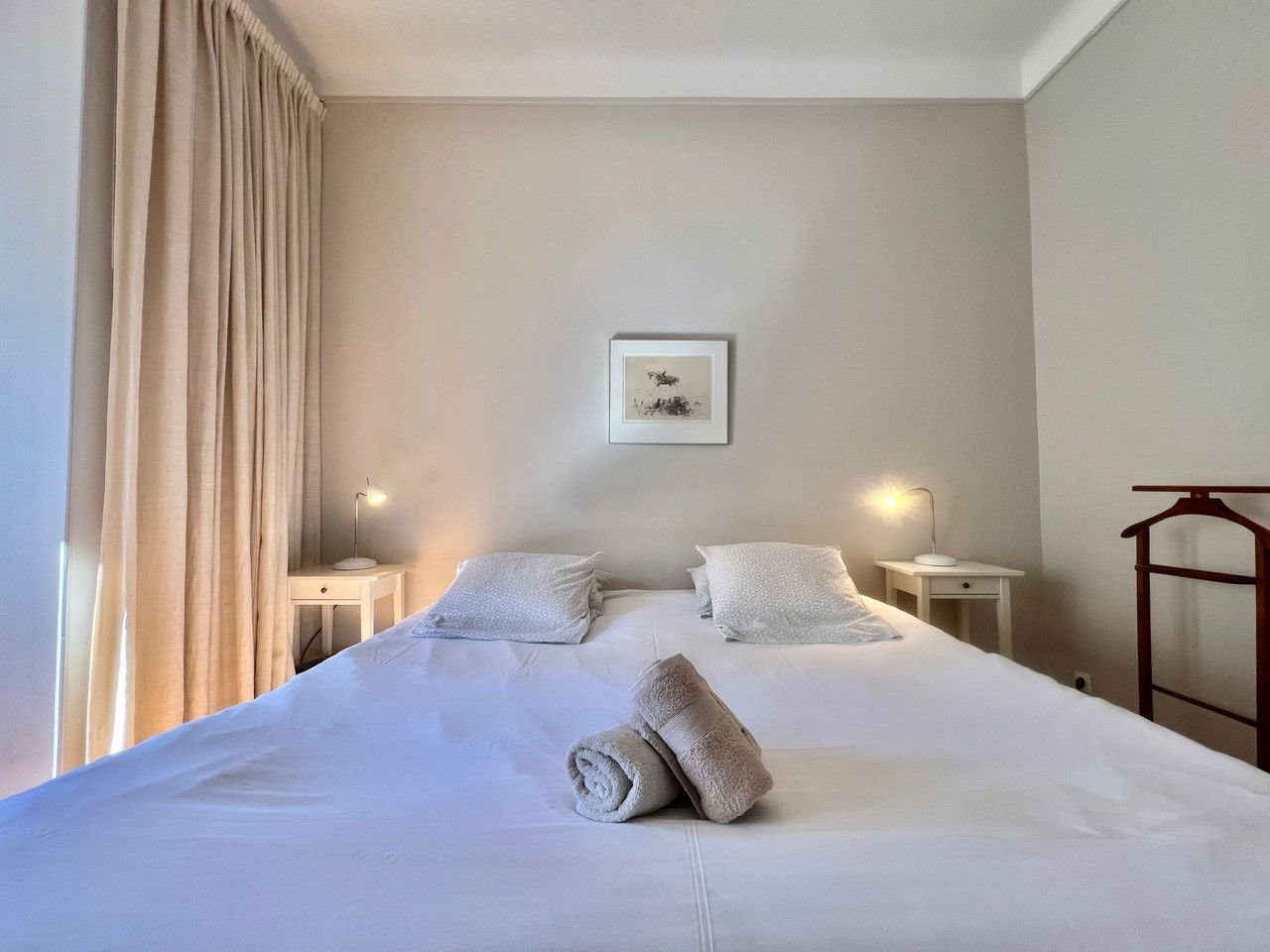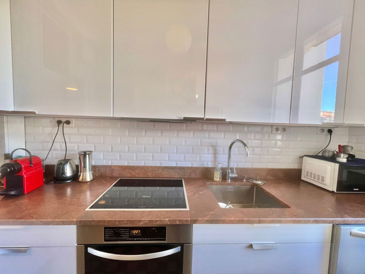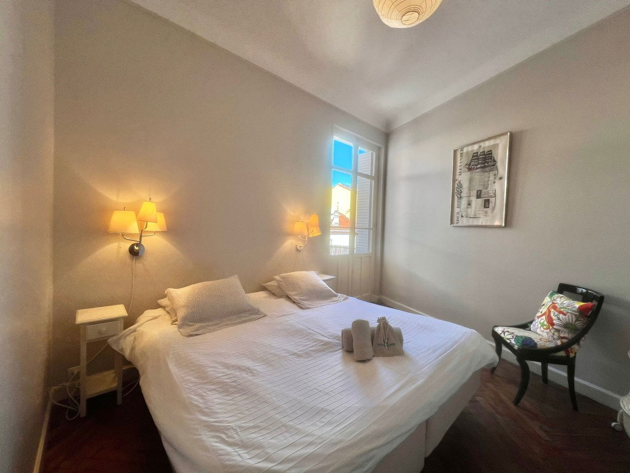 in a town building, 8 minuts walk from the beaches and the Croisette, high floor without elevator, large 3 rooms of 97m2 offers a beautiful double living room with its dining area open on a sunny balcony and a pleasant living room, 2 bedrooms with 2 single beds in each room (possibility to make a big bed)a bathroom, a beautiful kitchen open to a balcony