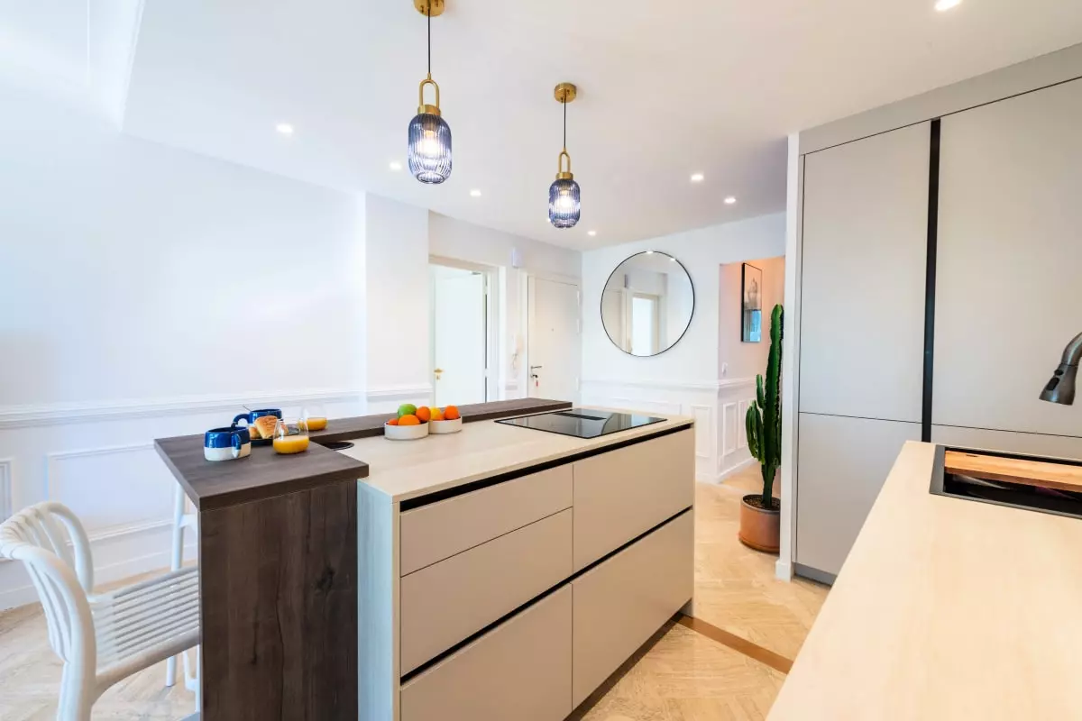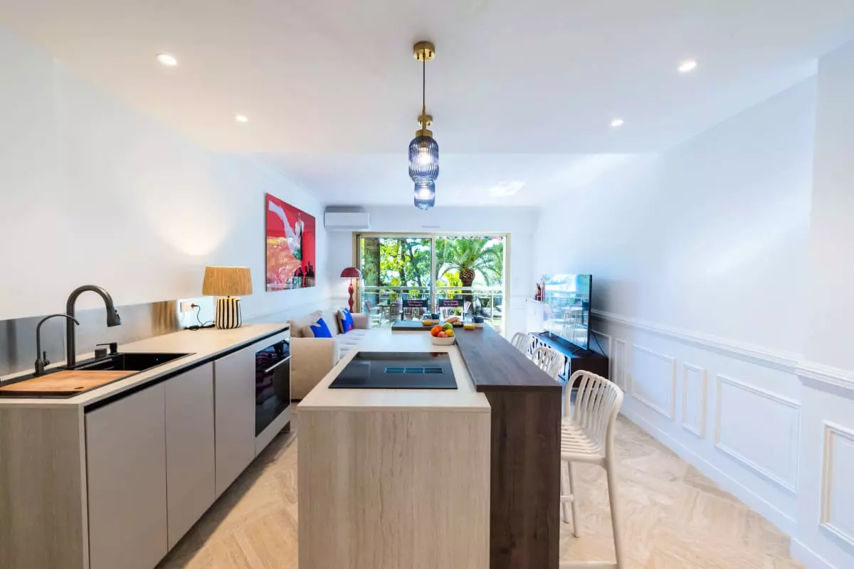 A bright apartment facing the sea, just steps from the beaches of the Midi. Here you can enjoy the gentle southern light, meals on the terrace overlooking the Mediterranean, and the tranquility of a residential area just minutes from the heart of Cannes.