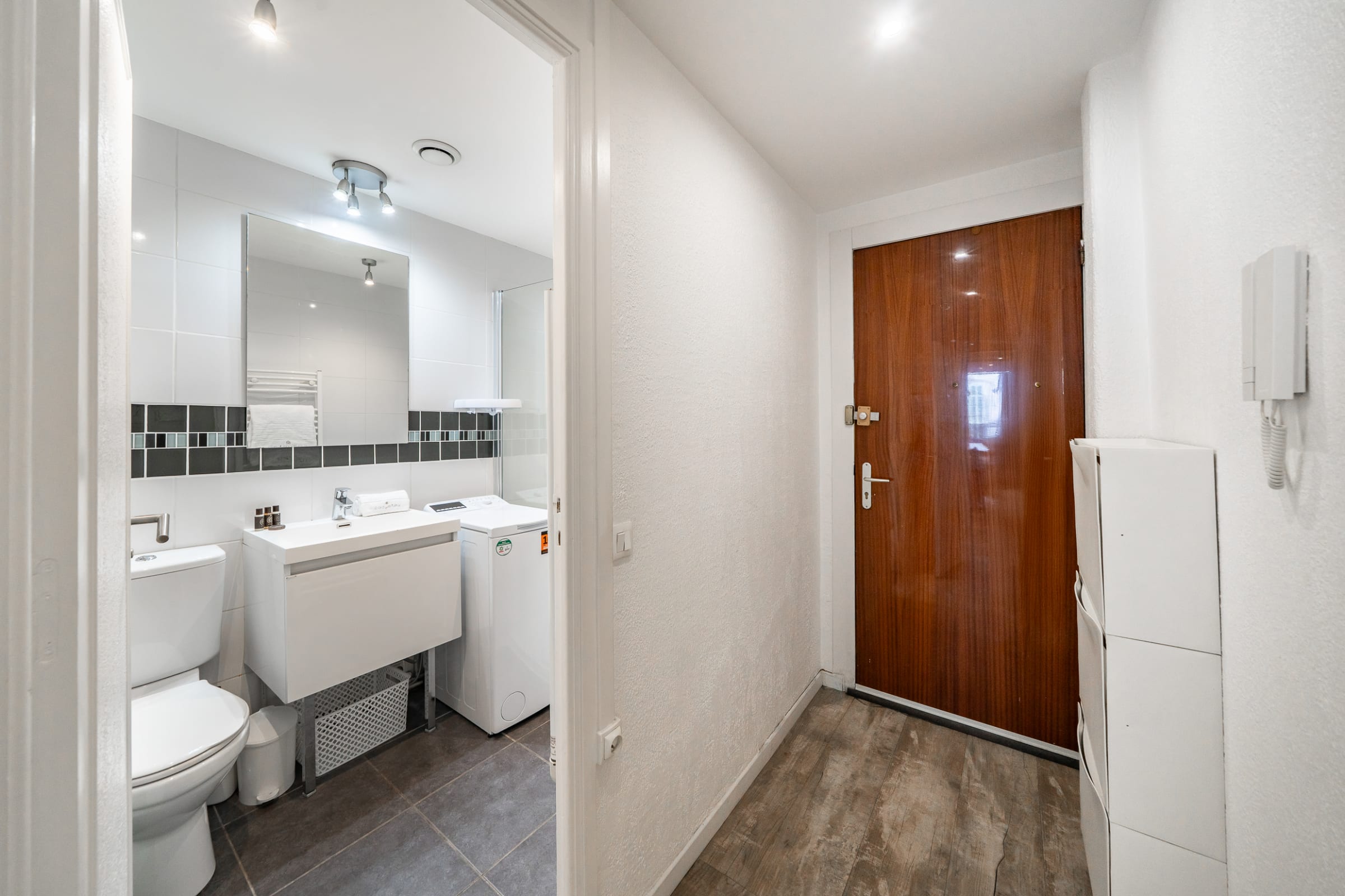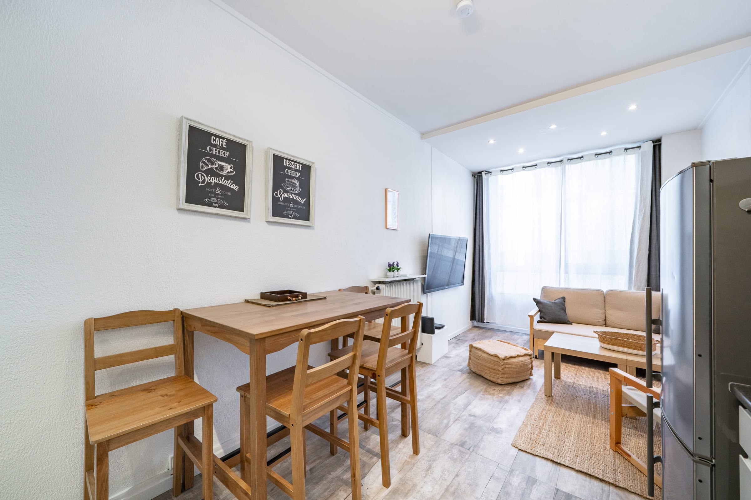 The living room/kitchen area ensures a comfortable daily life, while the secure building guarantees easy and reassuring access.