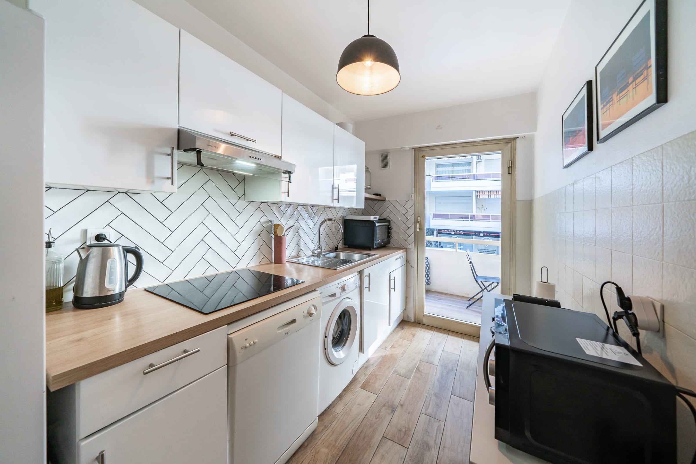 The flat consists of a separate bedroom with quality bedding, a pleasant and bright living room, a fully equipped kitchen designed for both short and long stays, and a modern bathroom with meticulous finishes. The whole flat has been carefully designed to ensure a smooth, calm and relaxing stay, while being at the heart of the bustling city of Cannes.