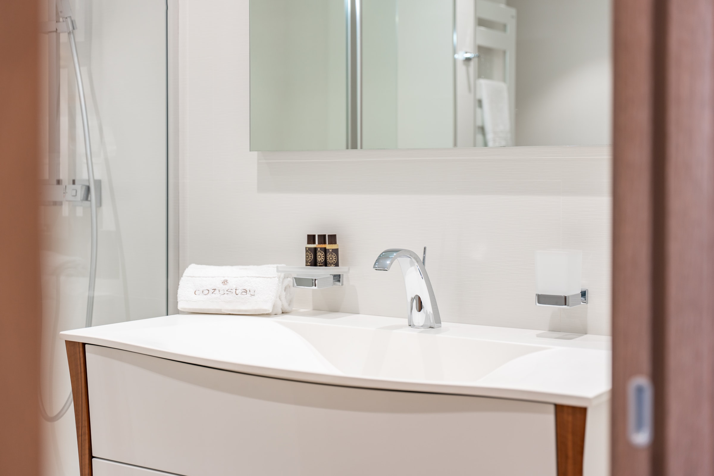- Modern bathroom with walk-in shower