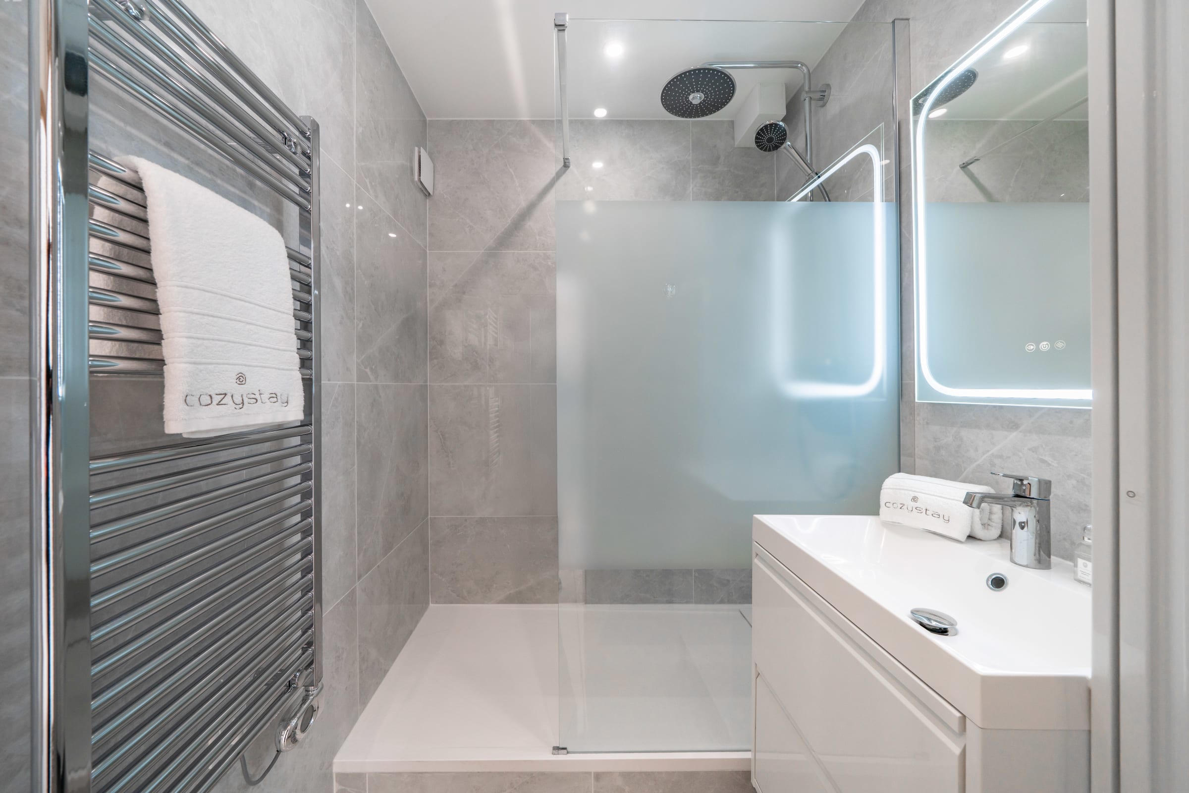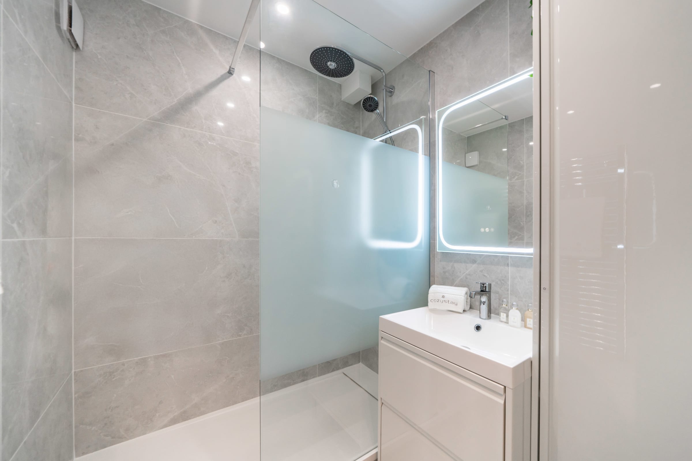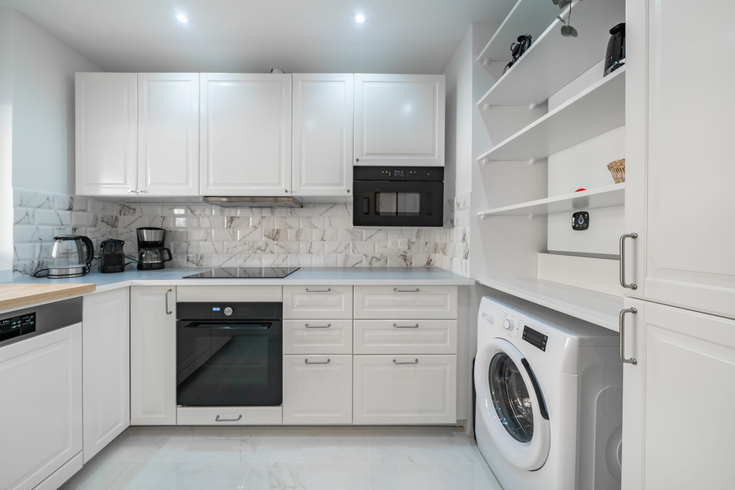 L’appartement se compose de deux belles chambres lumineuses, d’une salle de bain moderne au design soigné, d’un spacieux séjour idéal pour recevoir, ainsi que d’une cuisine séparée entièrement équipée, alliant fonctionnalité et esthétisme.