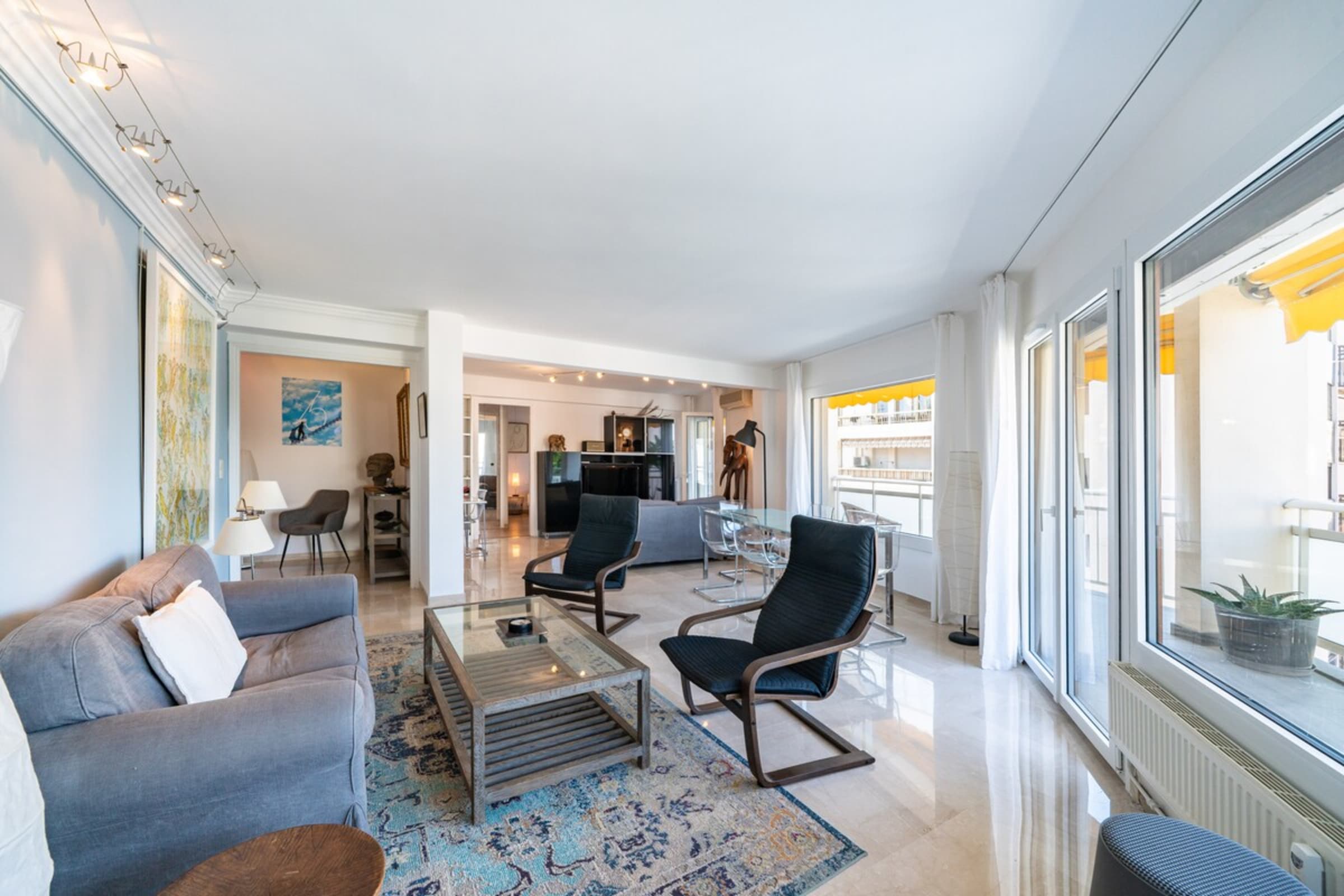 En plein cœur de Cannes, à 10 min à pied du Palais des Festivals, ce vaste 3 pièces allie confort, calme et emplacement stratégique. Double salon lumineux, deux chambres avec salles de douche (dont une avec WC), bureau, cuisine semi-ouverte, buanderie, WC invité et grande terrasse de 25m². À deux pas de la rue d’Antibes, des restaurants et boutiques, tout en étant niché au calme d’un étage élevé.