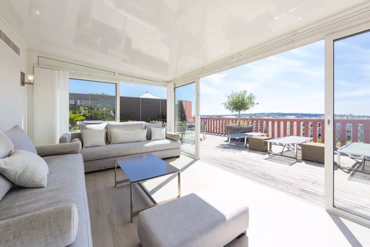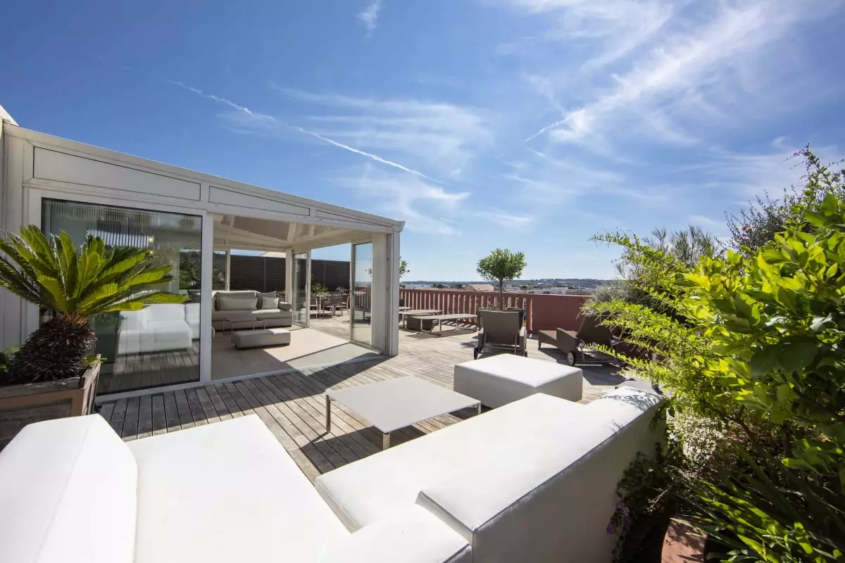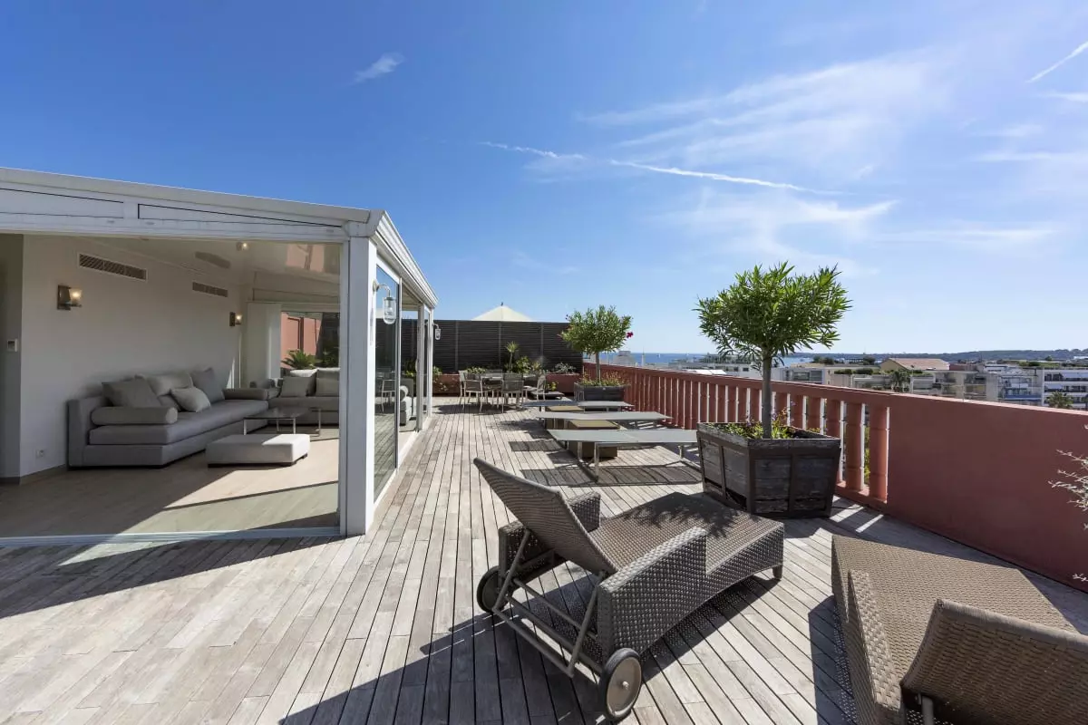 Cannes, located in the famous Palm Beach Pointe Croisette district, an exceptional 170 m2 rooftop apartment consisting of 4 bedrooms with their own bathrooms/showers, a large living room with open kitchen, all opening onto a terrace, as well as its incredible 170 m2 rooftop terrace furnished with an air-conditioned veranda that can be fully opened.