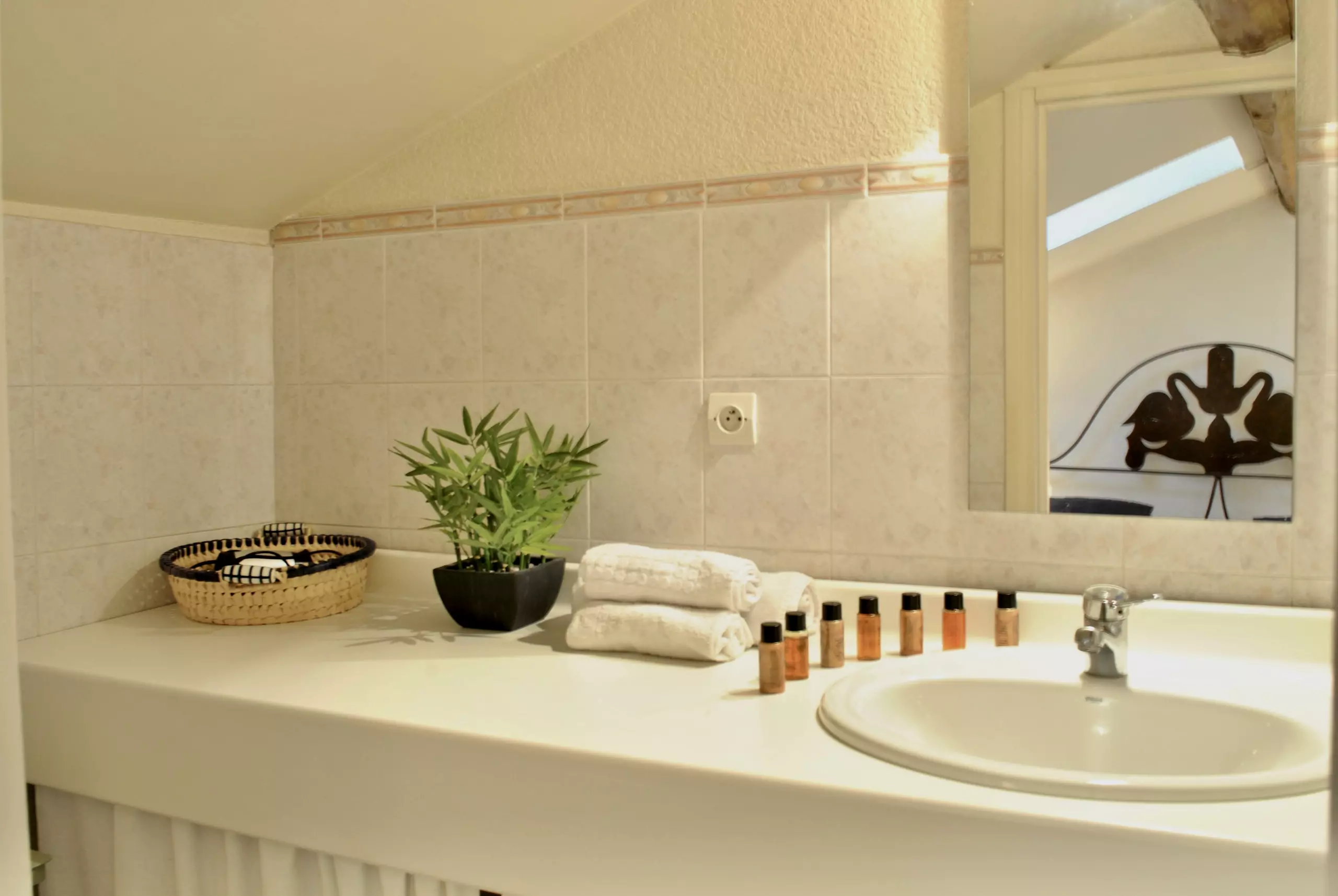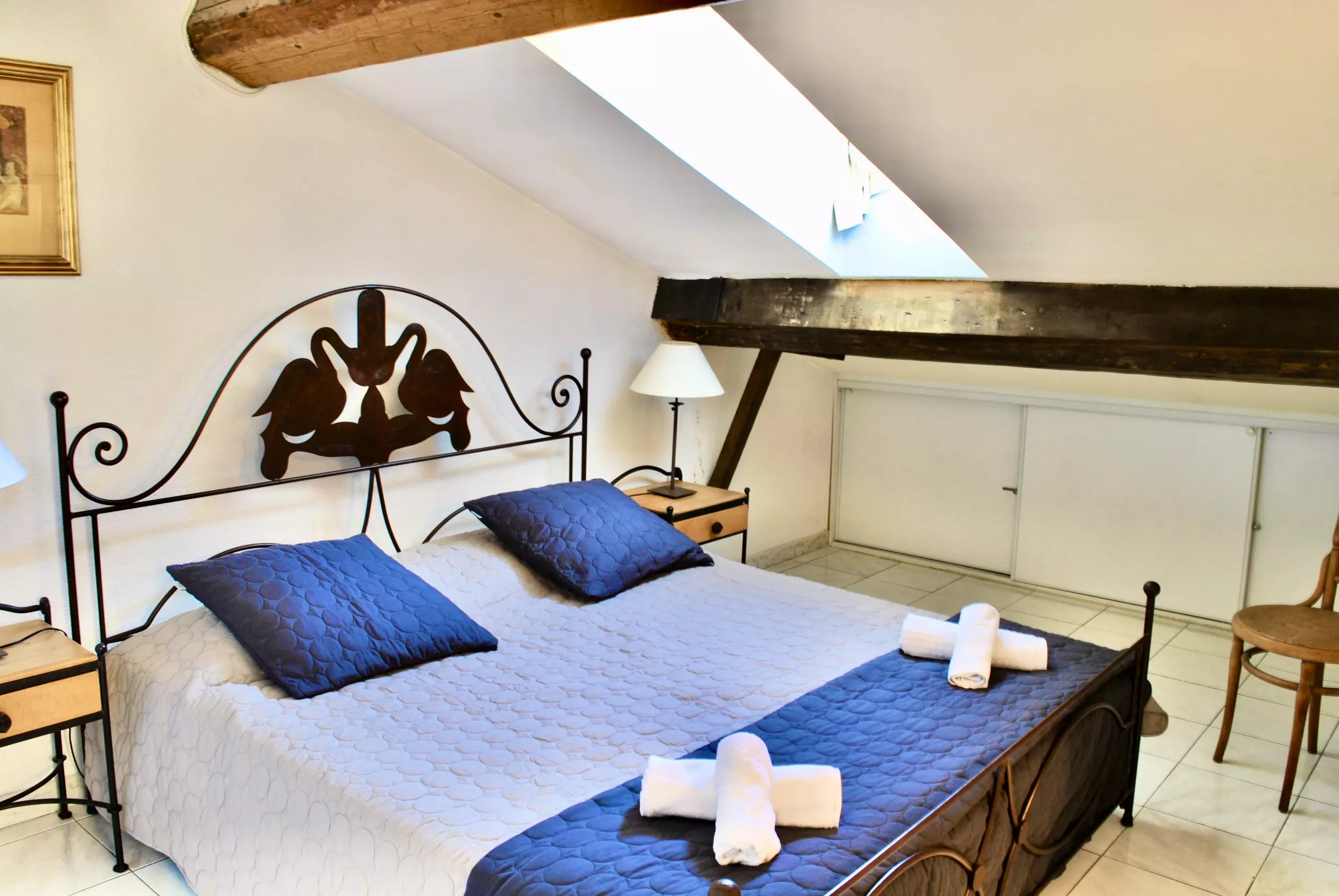 The master bedroom features a queen-size bed (160x190 cm) and an en-suite bathroom for added convenience. A second bedroom, located in the attic, offers a double bed (140x190 cm). The apartment also includes a separate toilet. For your comfort, you will have access to a television, Wi-Fi, and air conditioning.