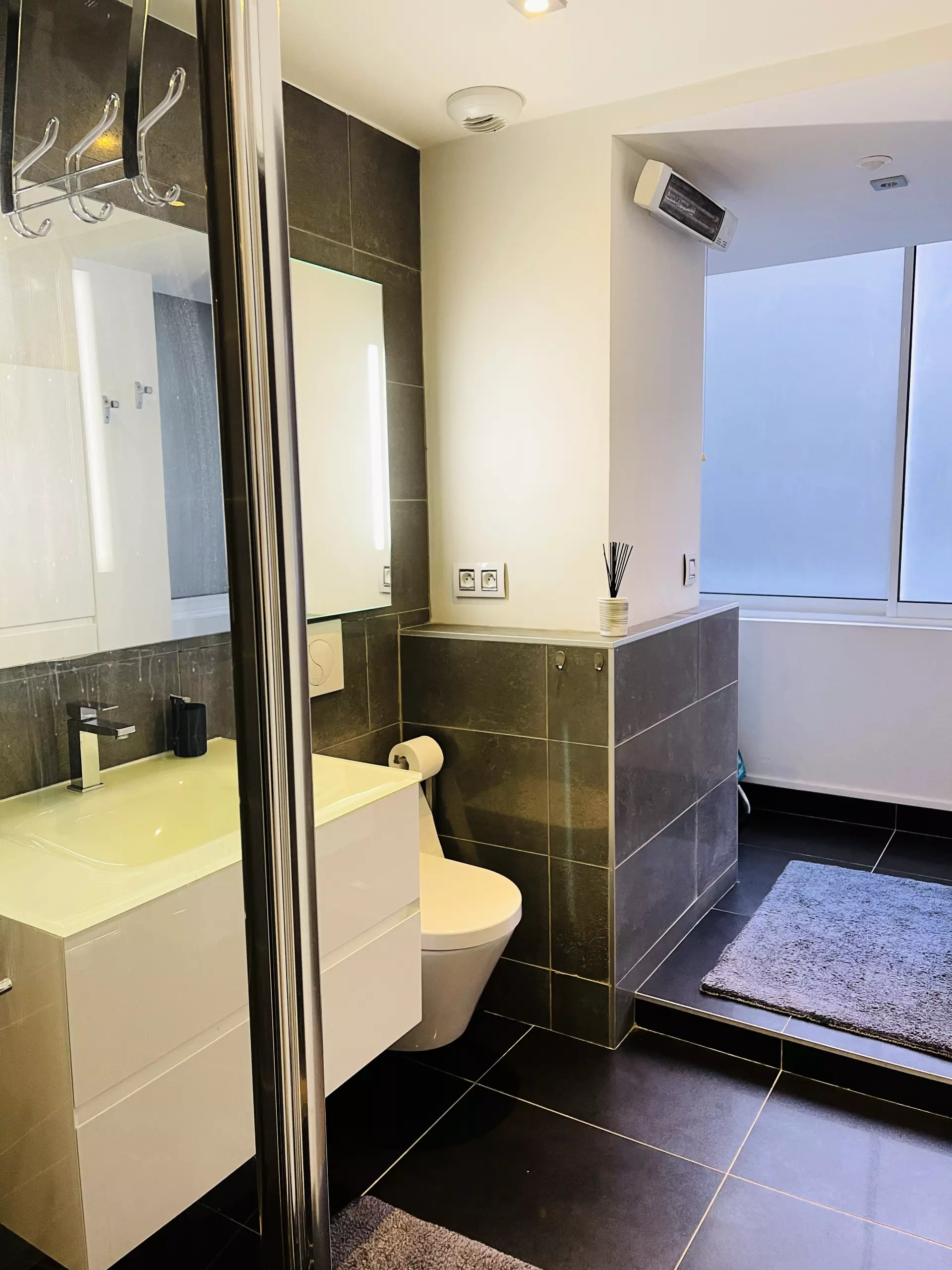 Welcome to this beautiful one-bedroom apartment, located on the floor of a small, peaceful building, close to the beaches and the Croisette. This elegant space comprises a spacious living room with a sitting area and a fully equipped open-plan kitchen. The lovely bedroom offers a double bed and an en-suite shower room with a stunning walk-in shower. The sofa bed and separate access to the shower room provide maximum flexibility. The apartment is also equipped with a television, washing machine, Wi-Fi, and air conditioning.