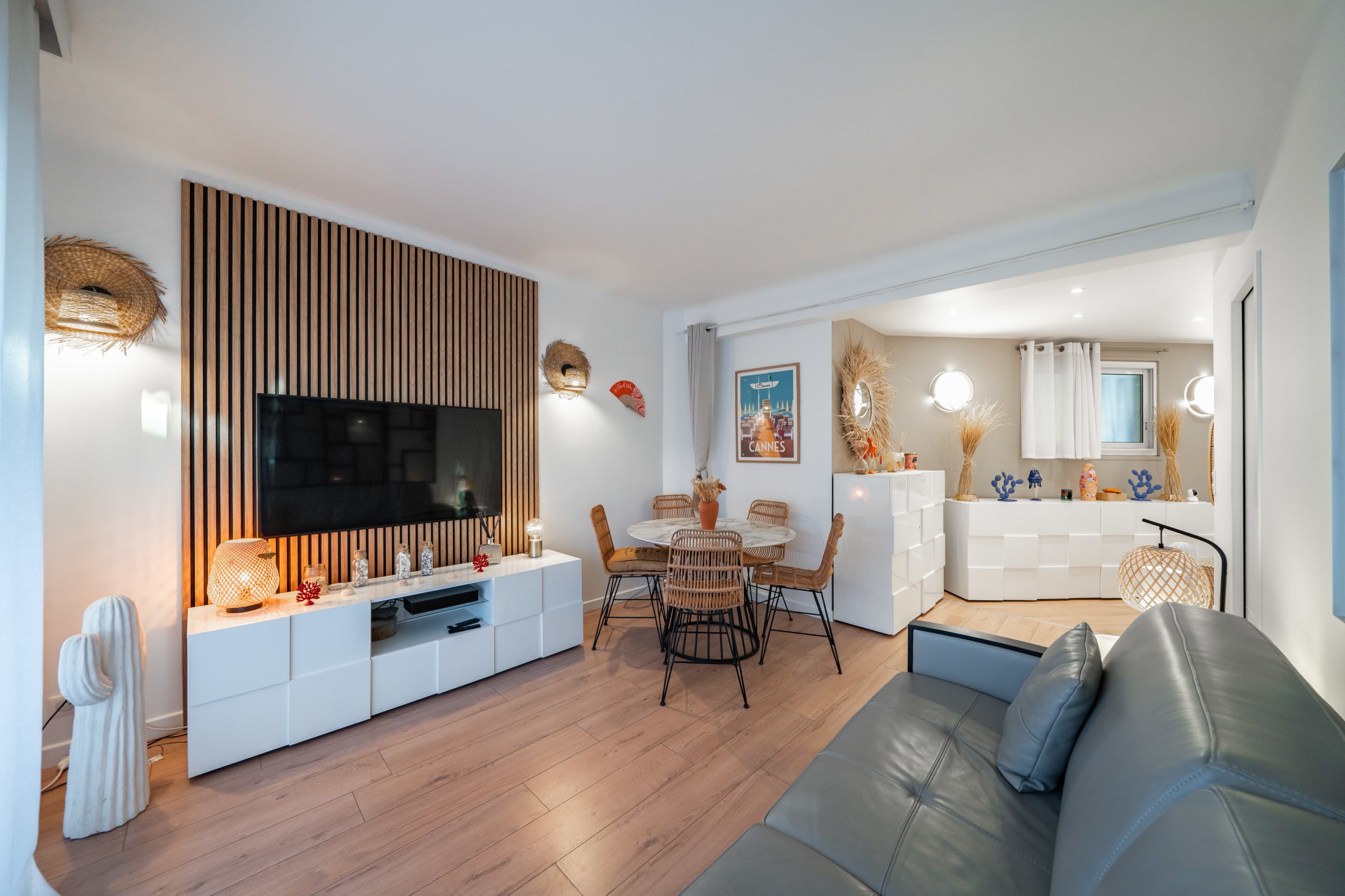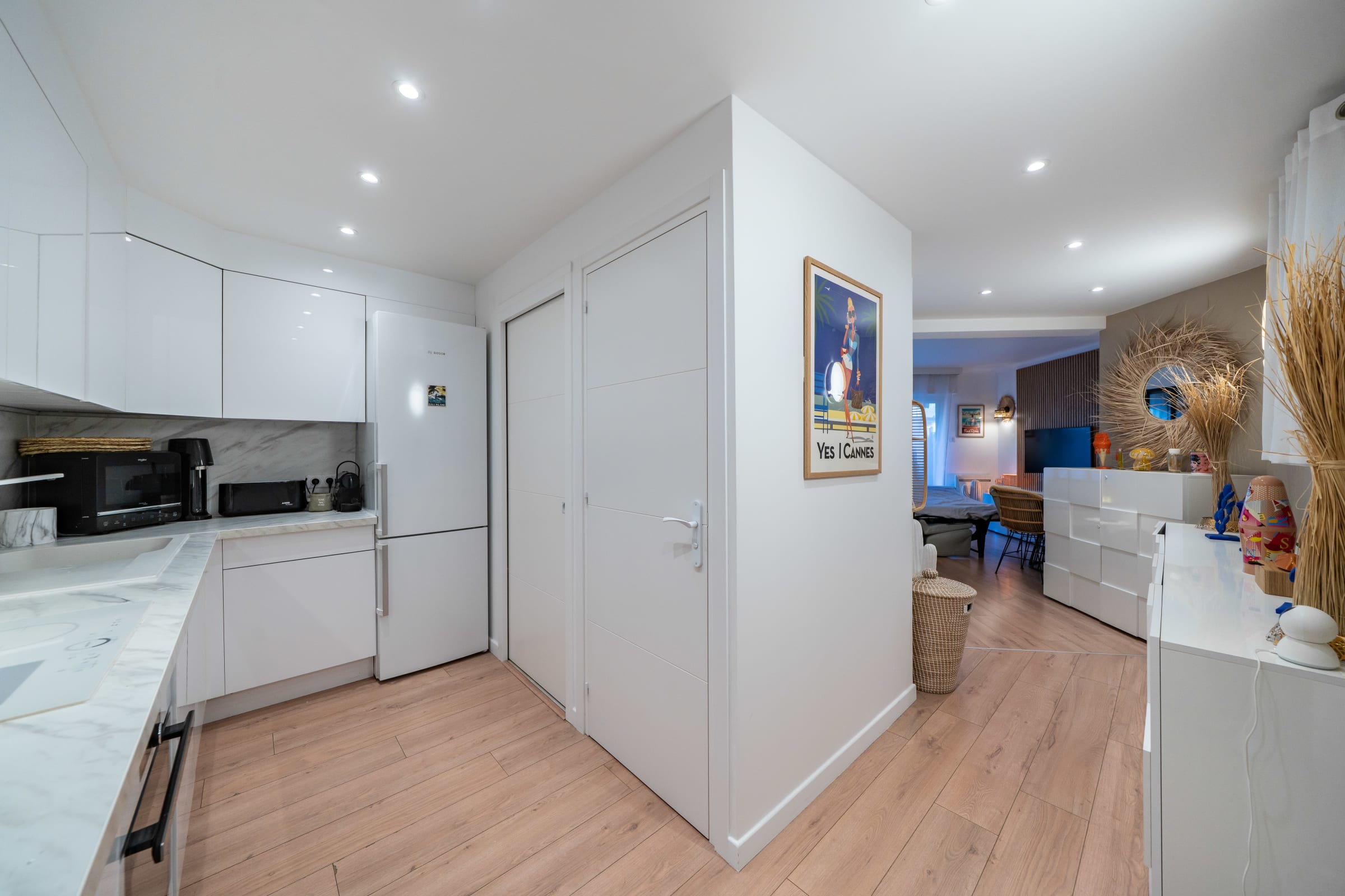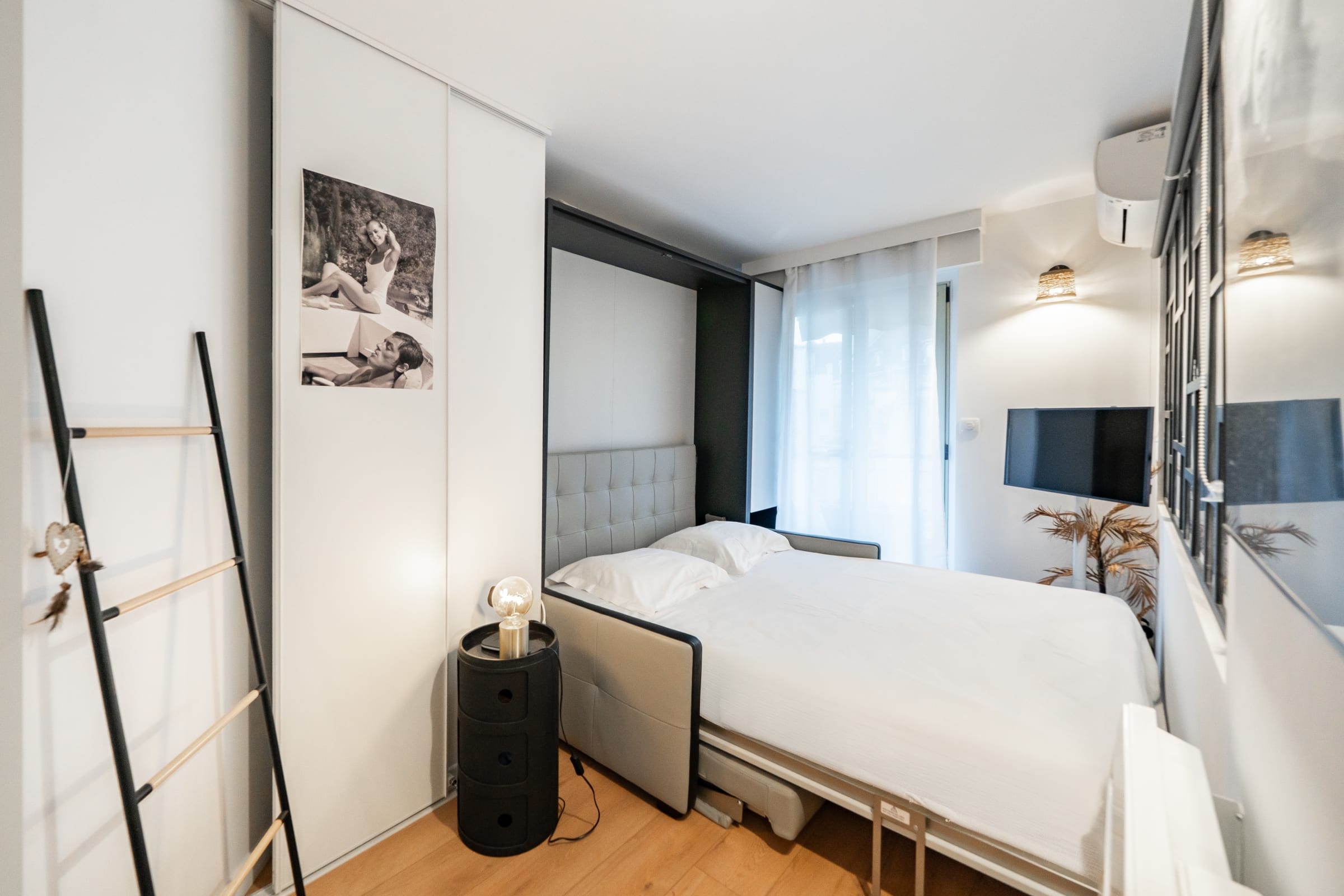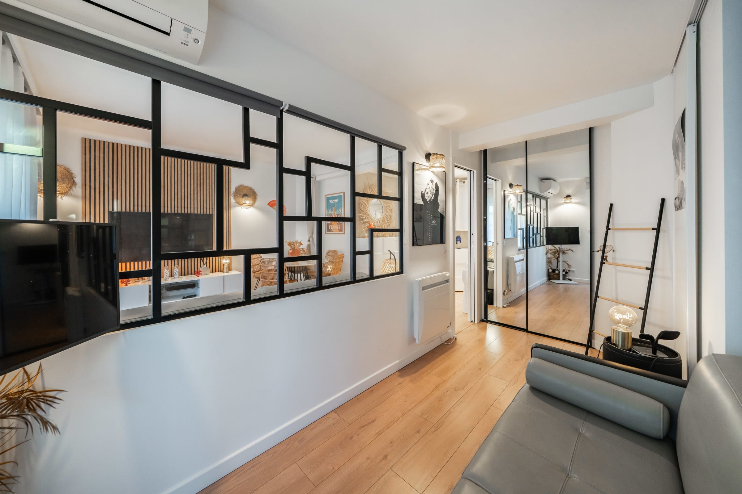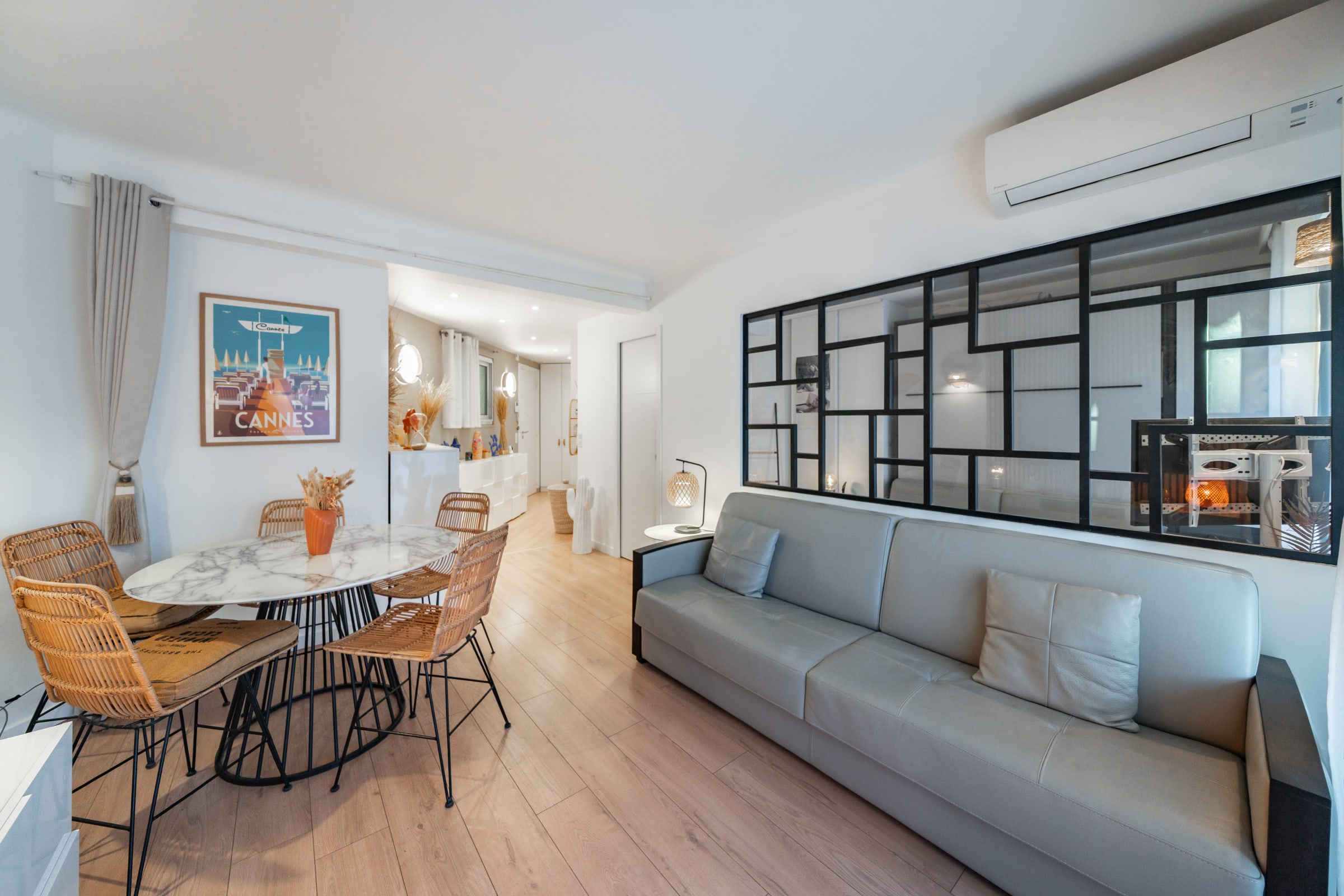 This beautiful apartment is ideally located in the heart of Cannes. It's fully equipped and enjoys a glimpse of the sea with an independent kitchen, a bedroom with a double bed and a living room extended by a balcony. It can welcome up to 4 guests thanks to the quality sofa bed in the living room. Rue d’Antibes (famous shopping street) is at the bottom of the residence. The Croisette and the beaches are only 2 min walk and the Palais des Festivals a 10-minute walk away.
