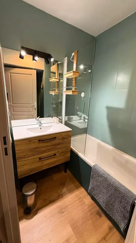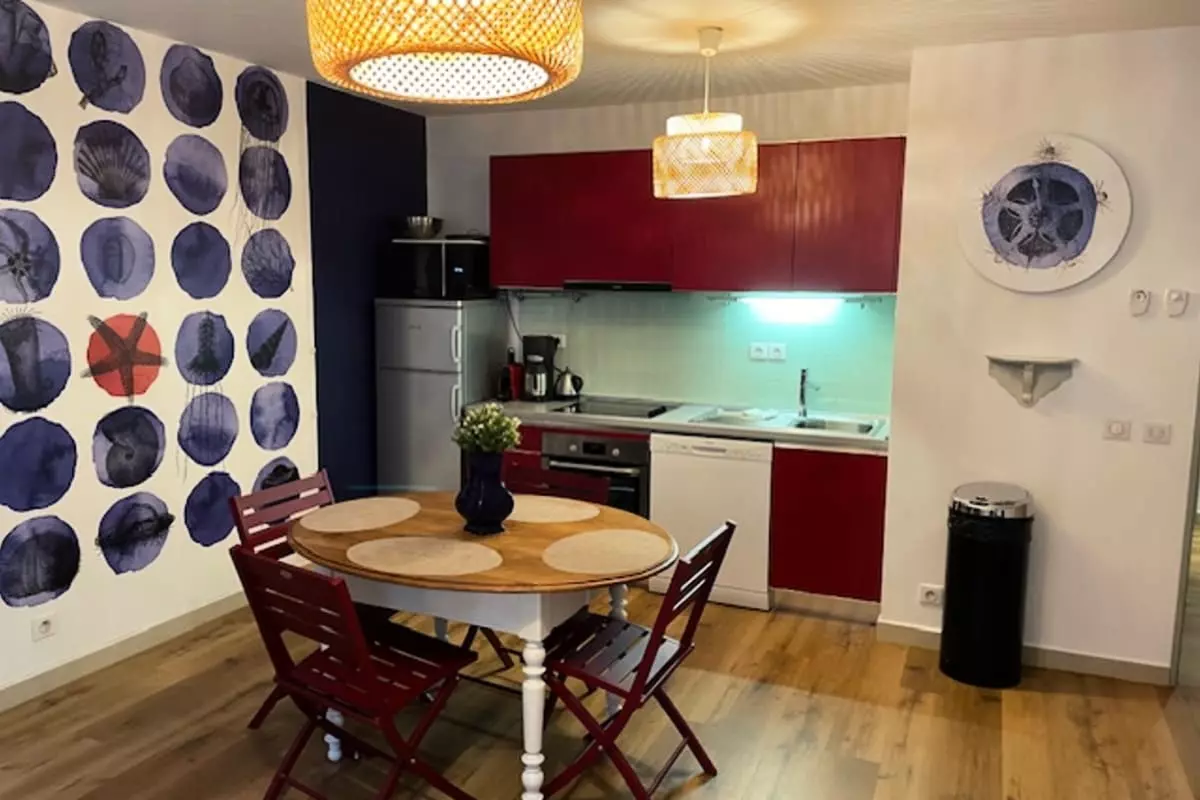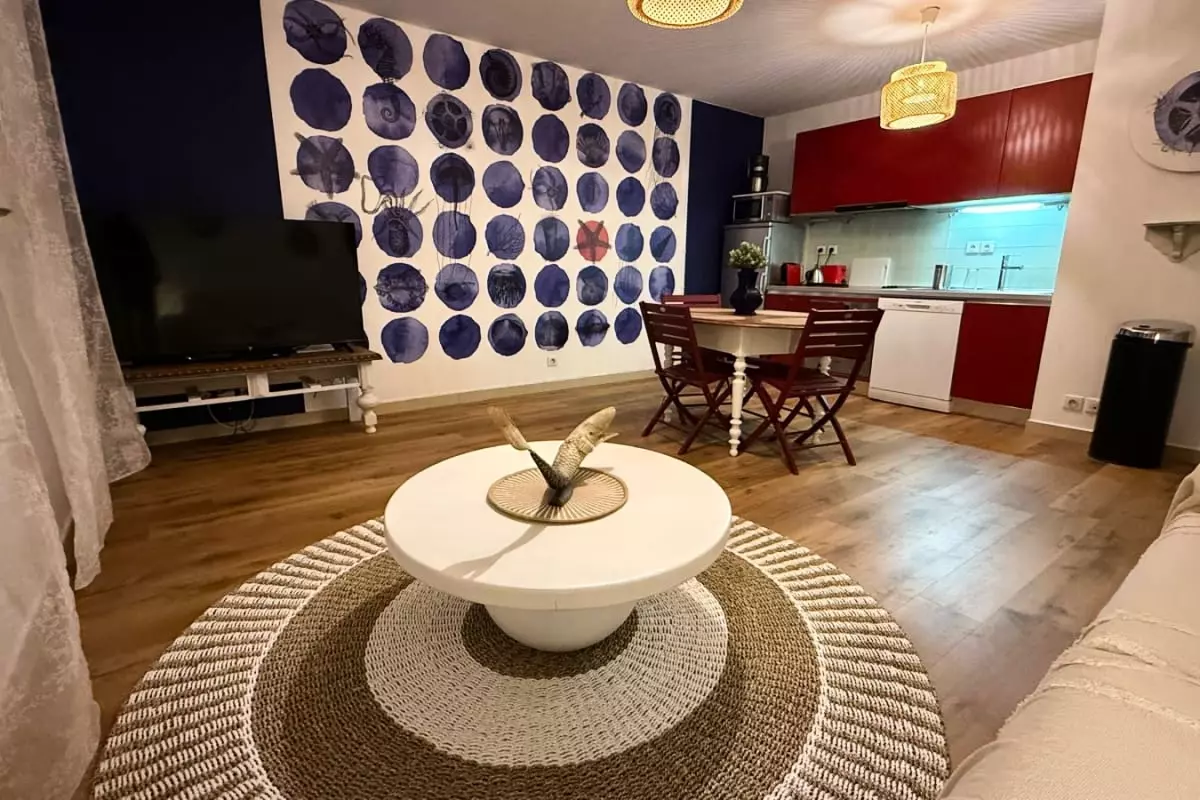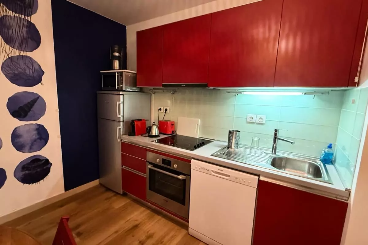 The apartment includes a bathroom and offers all the necessary amenities for your comfort: a fully equipped kitchen with oven, microwave, dishwasher, and Nespresso coffee machine, as well as practical items such as a hairdryer and iron. You will also benefit from Wi-Fi and air conditioning, which is particularly welcome on sunny days.