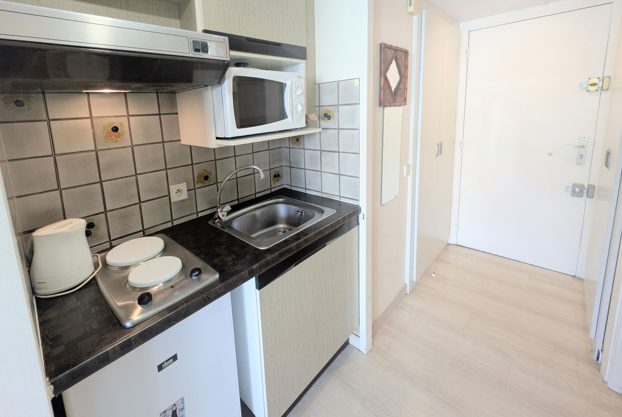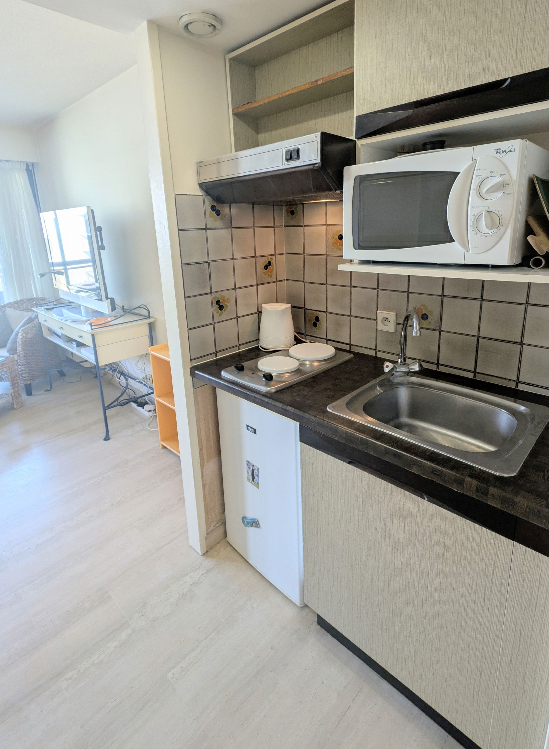 . Kitchenette equipped with : Microwave, fridge, 2 hotplates, kettle
