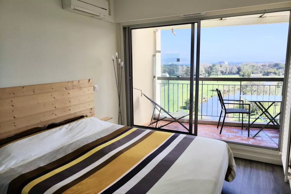 Located on the 9th floor with elevator, this bright apartment offers a breathtaking view of the sea (Bay of Cannes and Lérins Islands) as well as the golf course. It includes: