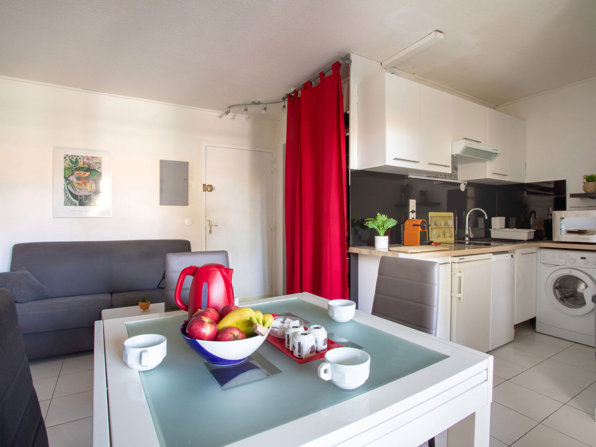 2-room apartment 27 m2, on the ground floor. Bright, fully renovated in 2020, practical and modern furnishings: living/dining room with 1 double sofabed (140 cm, length 190 cm), TV (flat screen). Exit to the garden, to the terrace. 1 room with 2 beds (90 cm, length 190 cm). Open kitchen (dishwasher, 2 induction hot plates, kettle, microwave, electric coffee machine). Shower/WC. Electric heating. Large terrace 13 m2, garden. Terrace furniture, deck chairs (2). Facilities: washing machine, iron, hair dryer. Internet (WiFi, free). Parking space n 38 (1 car). Please note: maximum 1 pet/ dog allowed. Smoke alarm. Offer by a private individual according to Art. 155, IV of CGI. 06161000499LY