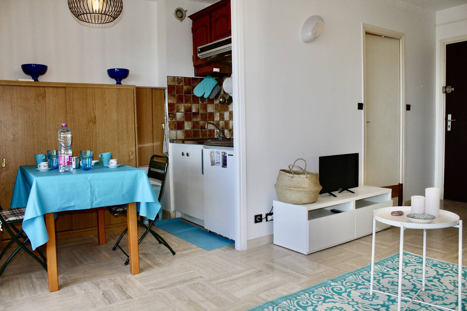Villeneuve Loubet (06) 47 Avenue Chaminadas LE MONTET Nice studio 30 m², Sleeps 2 Apartment located on the 2nd floor in a Residence Le MONTET 1.5 km from the beach. With a closed balcony and a view of the Mediterranean coast, this charming air-conditioned studio includes a spacious bright living room with television, a dining area, a sofa with a 140 cm retractable bed. The kitchen is equipped with a two-burner plate, a top refrigerator. A bathroom with toilet. Private parking completes this property. Towels and bed linen are not provided. End of stay cleaning is included. Most of this accommodation: Located in a quiet residence with swimming pool and tennis