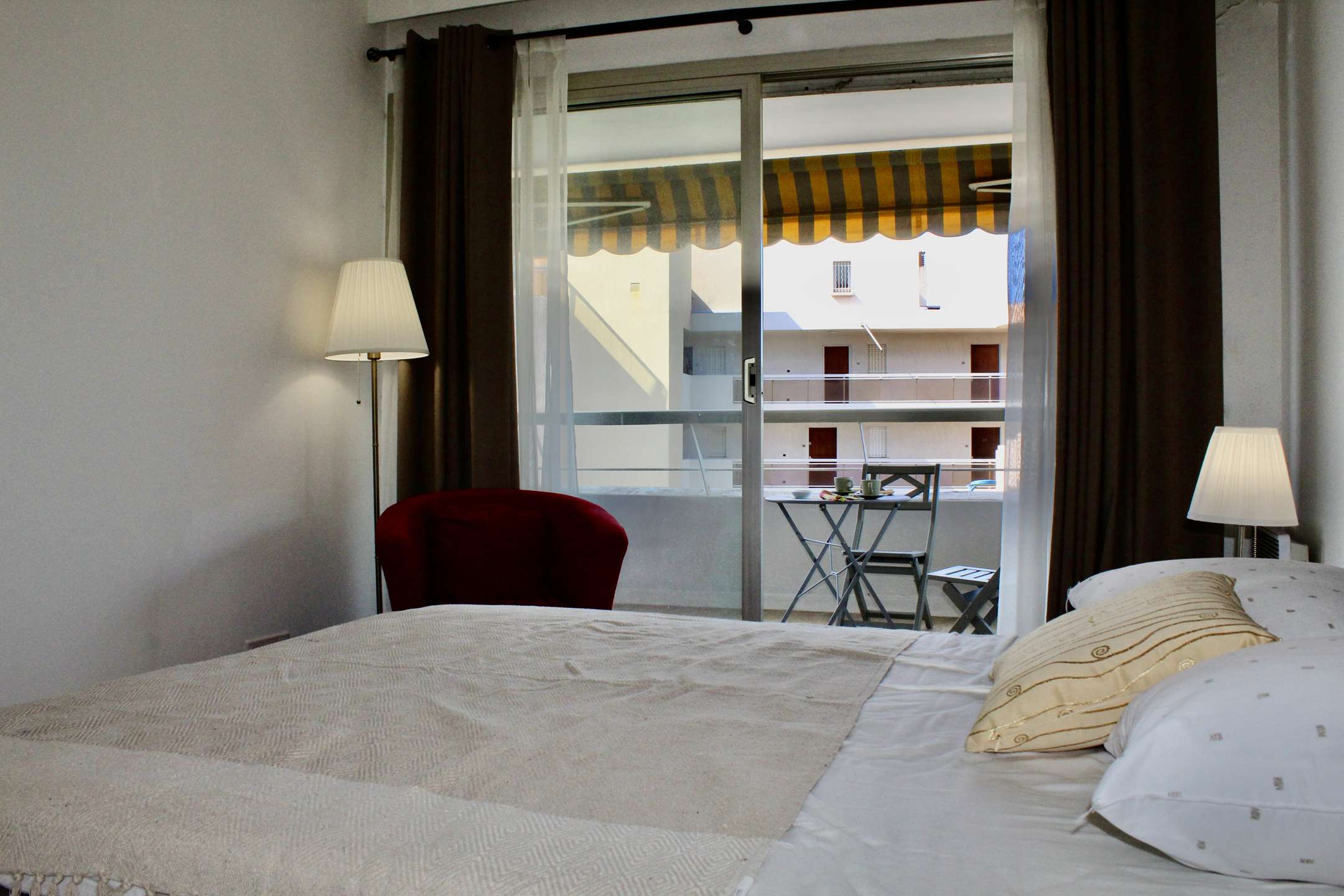 Villeneuve-Loubet Plage (06) L'Amiral Port Marina Baie des Anges Very pretty 2-room apartment of 57m² - 2 to 4 beds. Apartment located in La Résidence L'Amiral at the water's edge. You are 5 minutes from the train station and public transport. We offer you a pleasant 2-room apartment on the second floor of the Admiral's residence. It is composed on the left of the entrance of a fully equipped kitchen (dishwasher, oven, refrigerator and microwave). Then to your right, you will find a bathroom. The toilets are separate. In the living room you have a television, a 140 cm convertible sofa, offering a radiant view of the Mediterranean Sea. The same goes for the air-conditioned bedroom with king size bed. End of stay cleaning is included. Household linen is not provided. Most of this accommodation: Pleasant apartment located at the foot of the beaches for sunbathing.