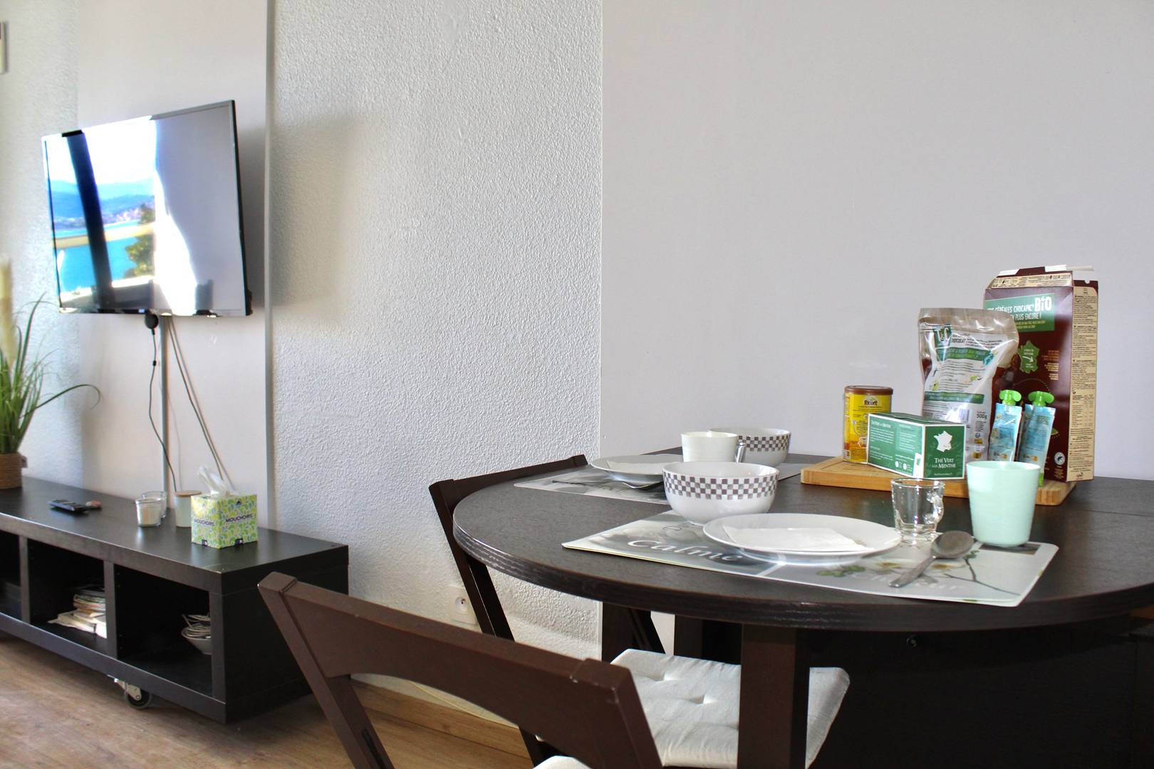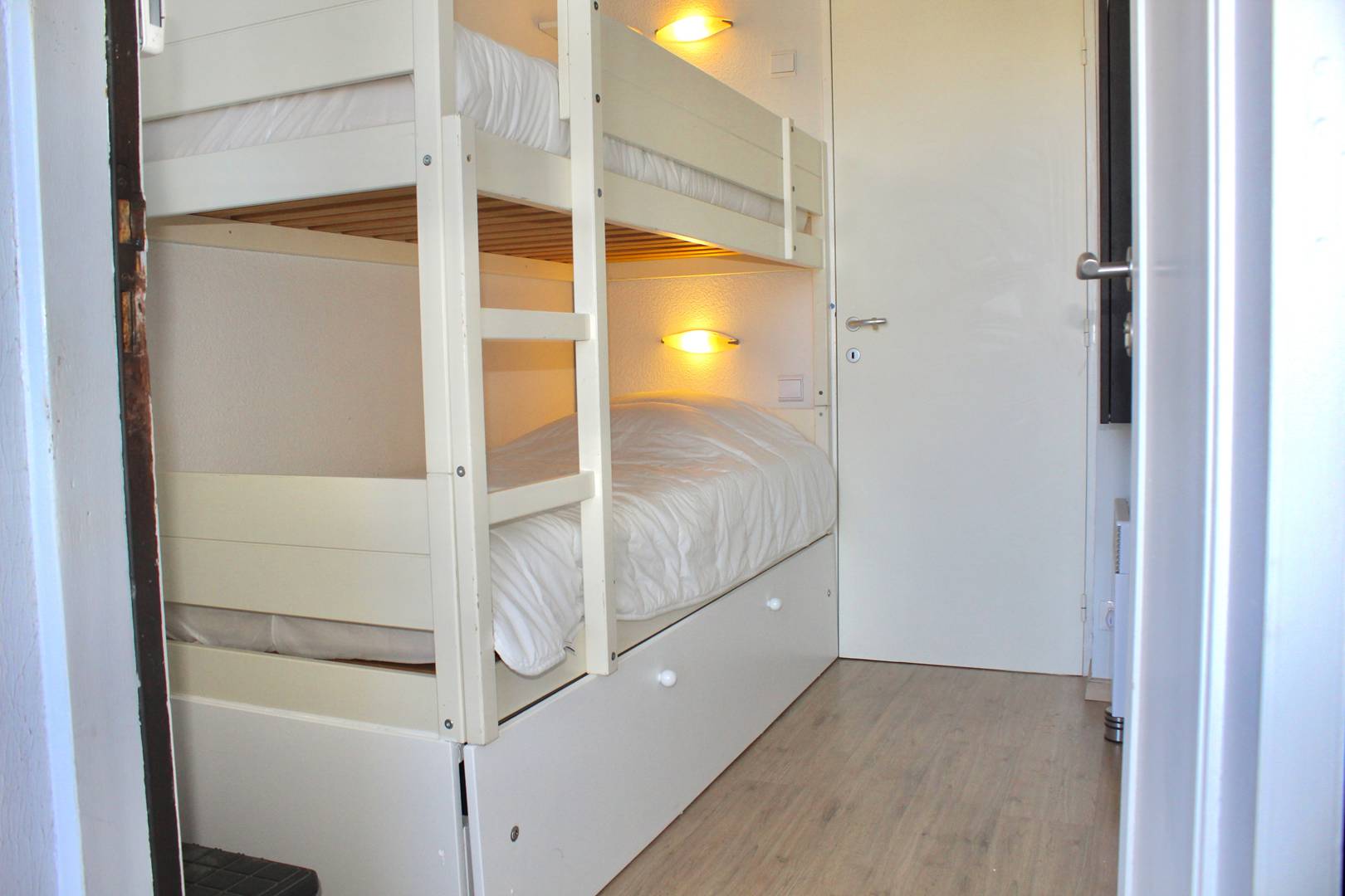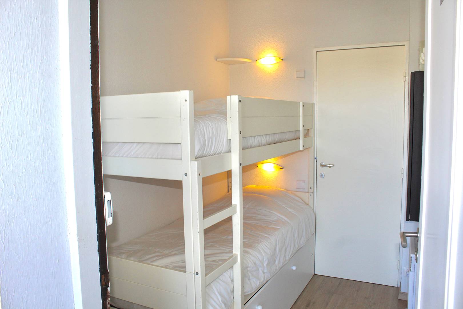 This very beautiful holiday apartment on the 11th floor with air conditioning and parking is composed at the entrance of a small bedroom with two bunk beds (80 x 190 cm), a bathroom with shower and toilet. In the main room you have a fitted kitchen with fridge, microwave, etc. A dining area, television, Wifi, two-person convertible sofa opening onto a very pretty furnished terrace with an exceptional view of the Bay of Angels.