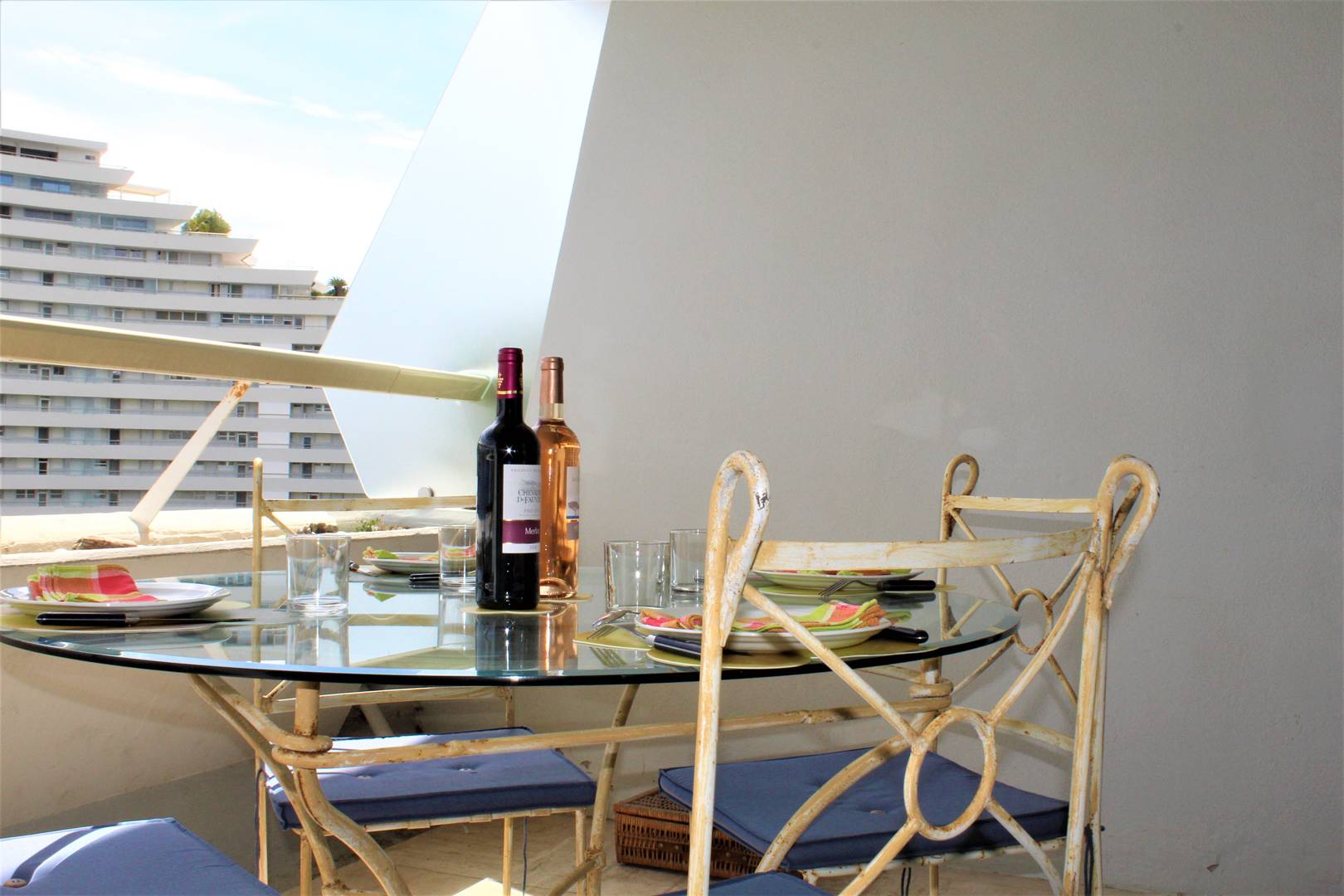 This apartment is located on the seventh floor, consists of a bedroom at the back with two 90x180 cm beds. A bathroom with toilet. An equipped American kitchen (washing machine, oven) a living room with television, a 140 cm sofa bed, its dining area opening onto a terrace with a beautiful sea view.