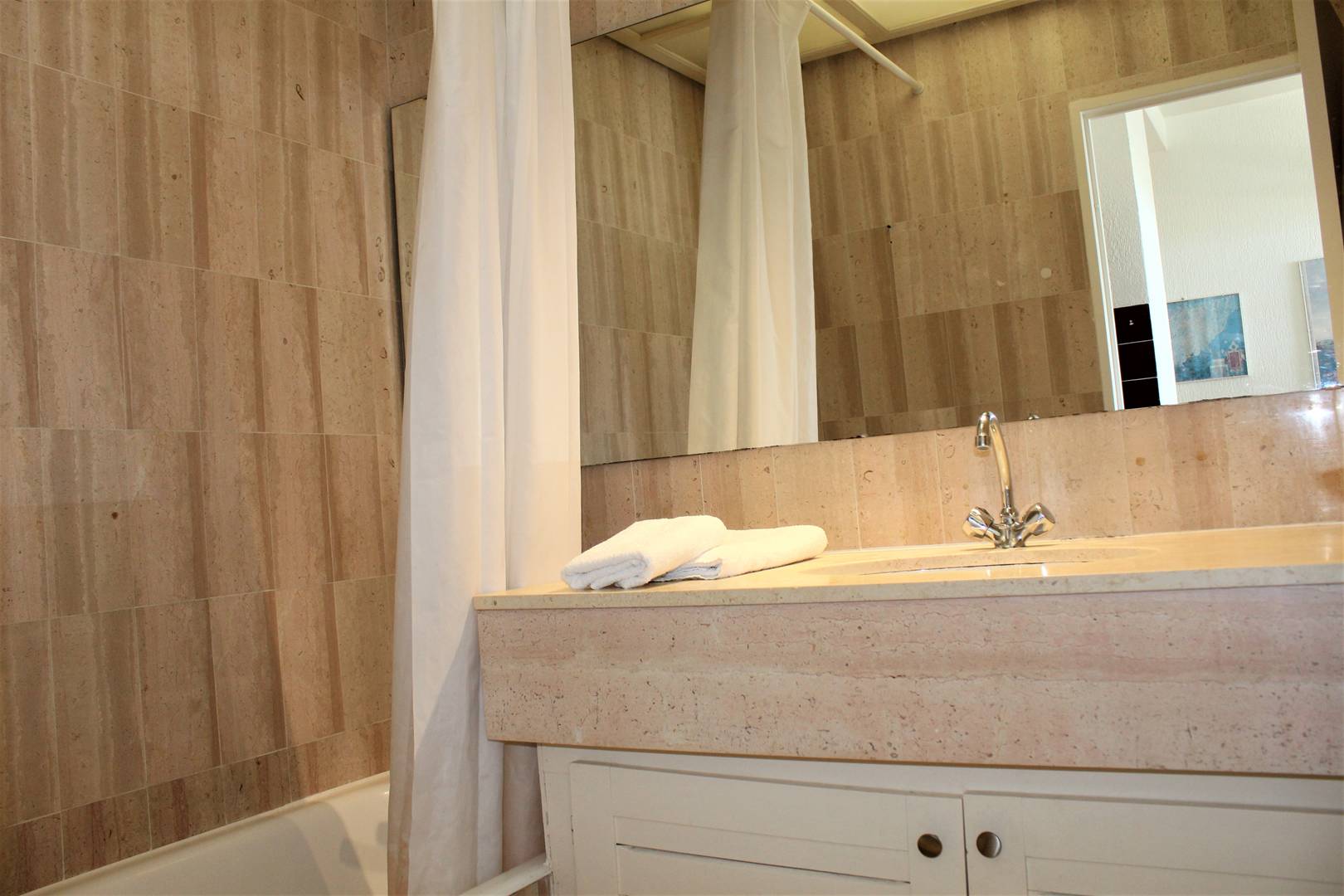 Apartment located in the Le Baronnet waterfront residence with all amenities. You are 3 minutes walk from the beach and 15 minutes from the shops.