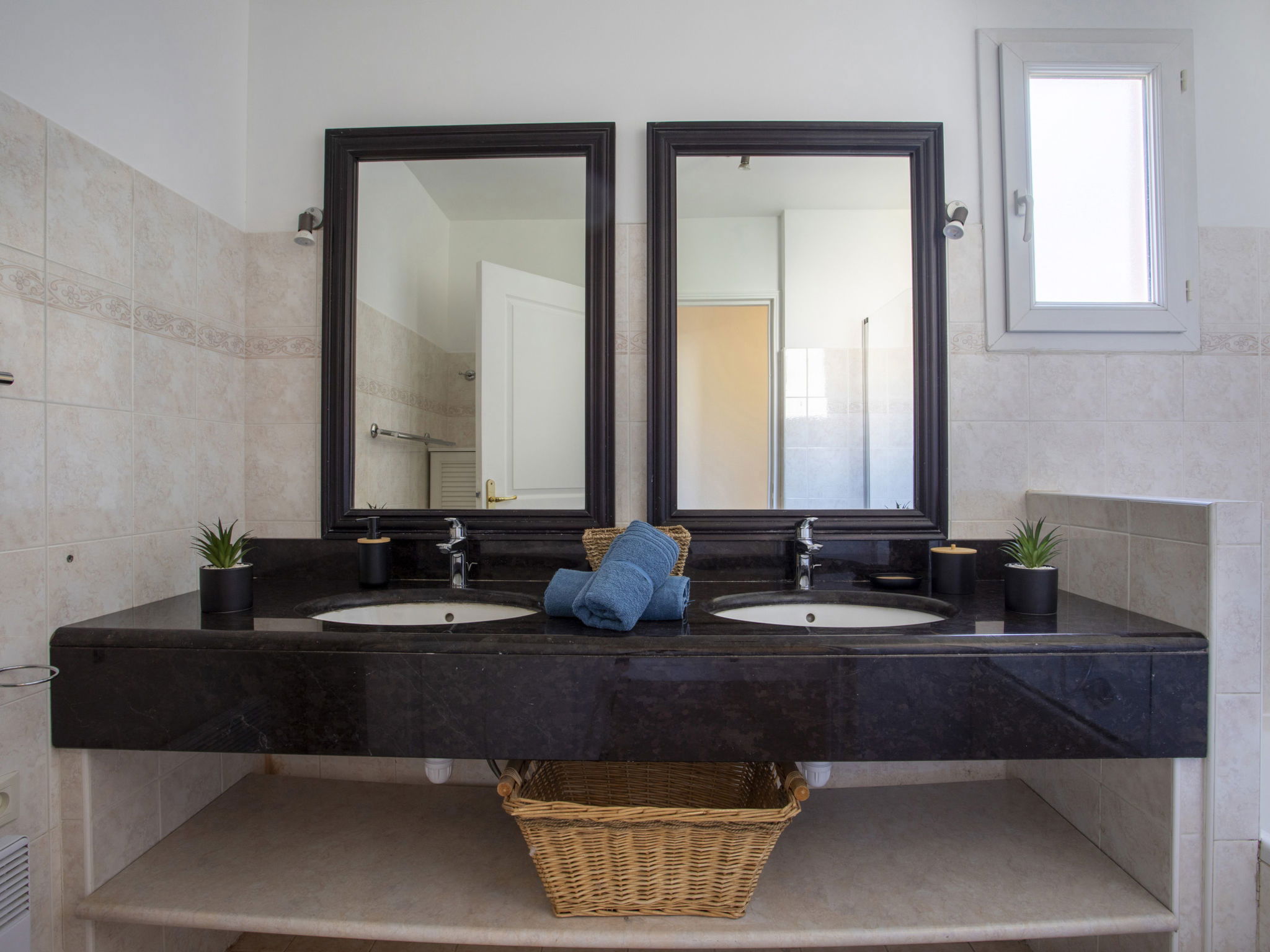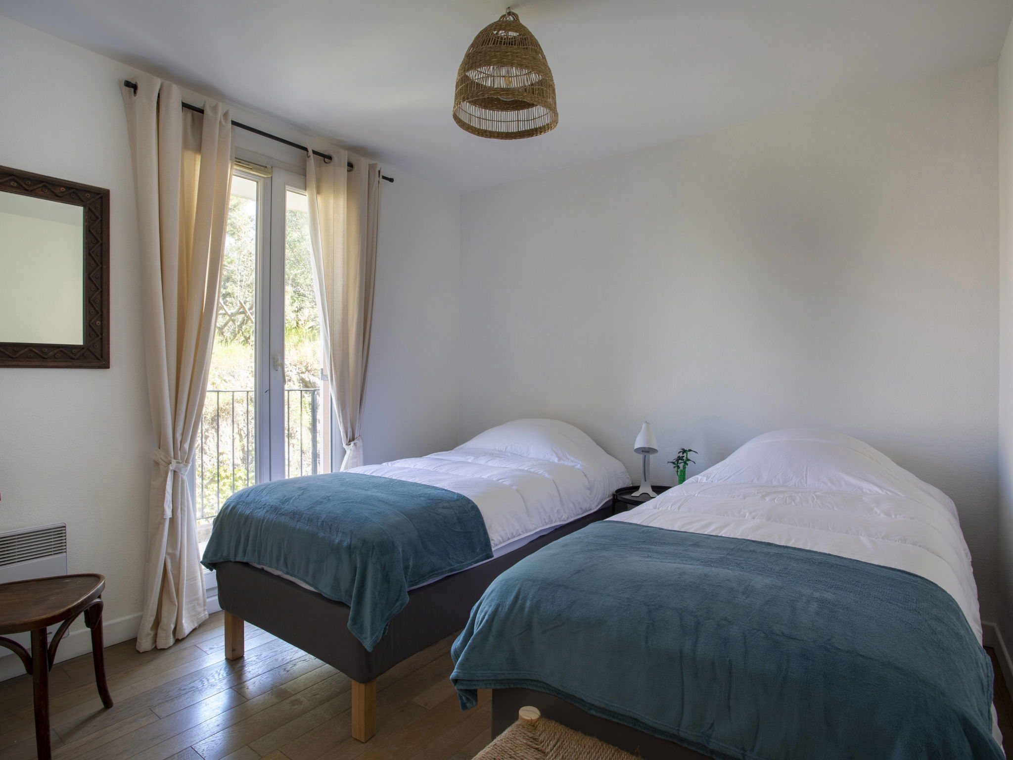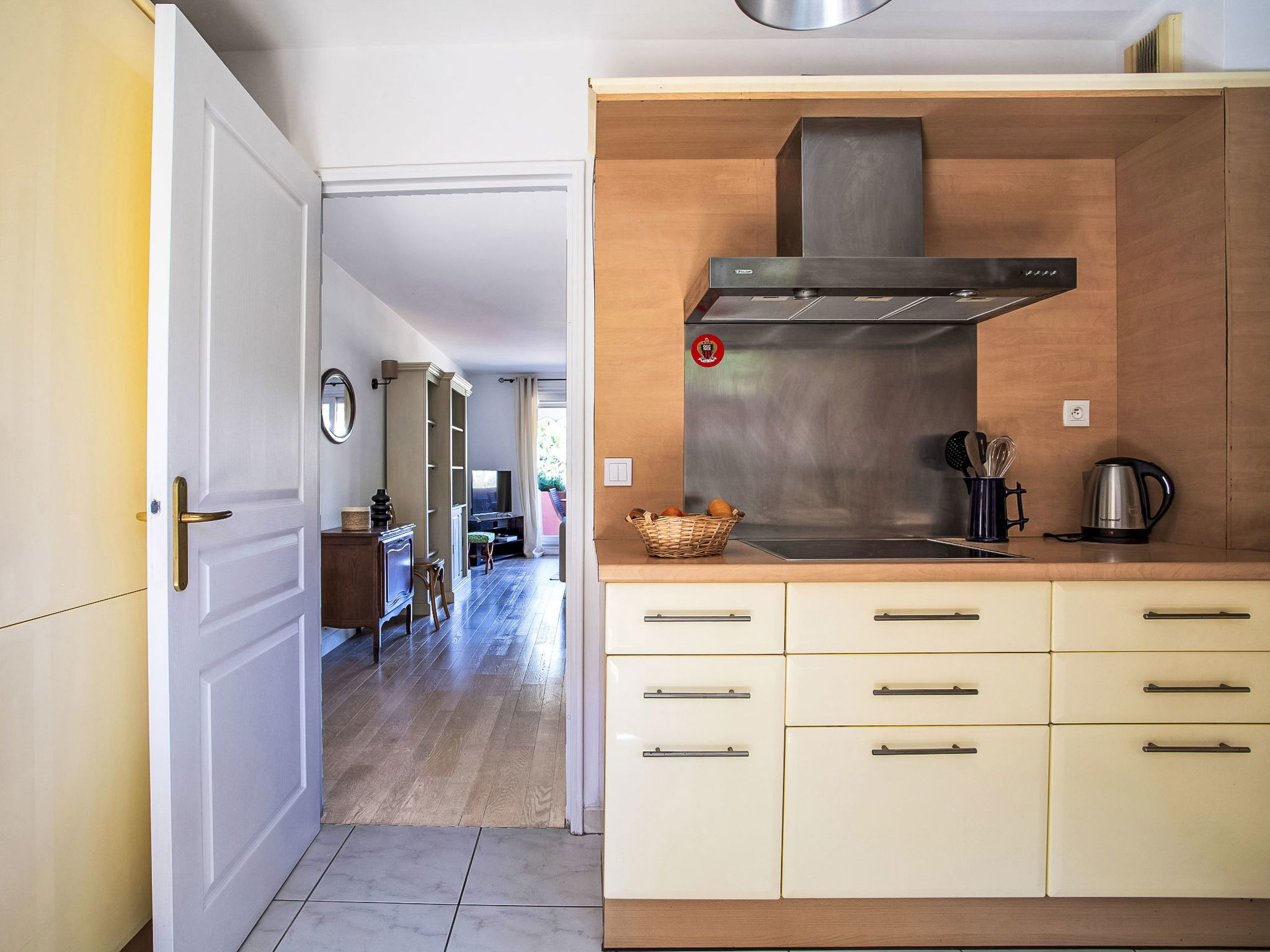 3-room apartment 75 m2 on 1st floor, west facing position. Comfortable and modern furnishings: living/dining room with TV (flat screen). Exit to the terrace. 1 room with 2 beds (90 cm, length 200 cm). Exit to the balcony. 1 room with 1 french bed (1 x 160 cm, length 200 cm). Kitchen (oven, dishwasher, 4 induction hot plates, toaster, kettle, microwave, electric coffee machine). Exit to the balcony. Bathroom, sep. WC, double hand-basin. Heating, air-conditioning. Balcony 10 m2, large terrace 20 m2. Terrace furniture. Beautiful view of the garden. Facilities: washing machine, iron, hair dryer. Internet (WiFi, free). Parking space n 95 (1 car). Please note: non-smokers only. Maximum 1 pet/ dog allowed. Smoke alarm. Offer by a private individual according to Art. 155, IV of CGI. 06027036668HT