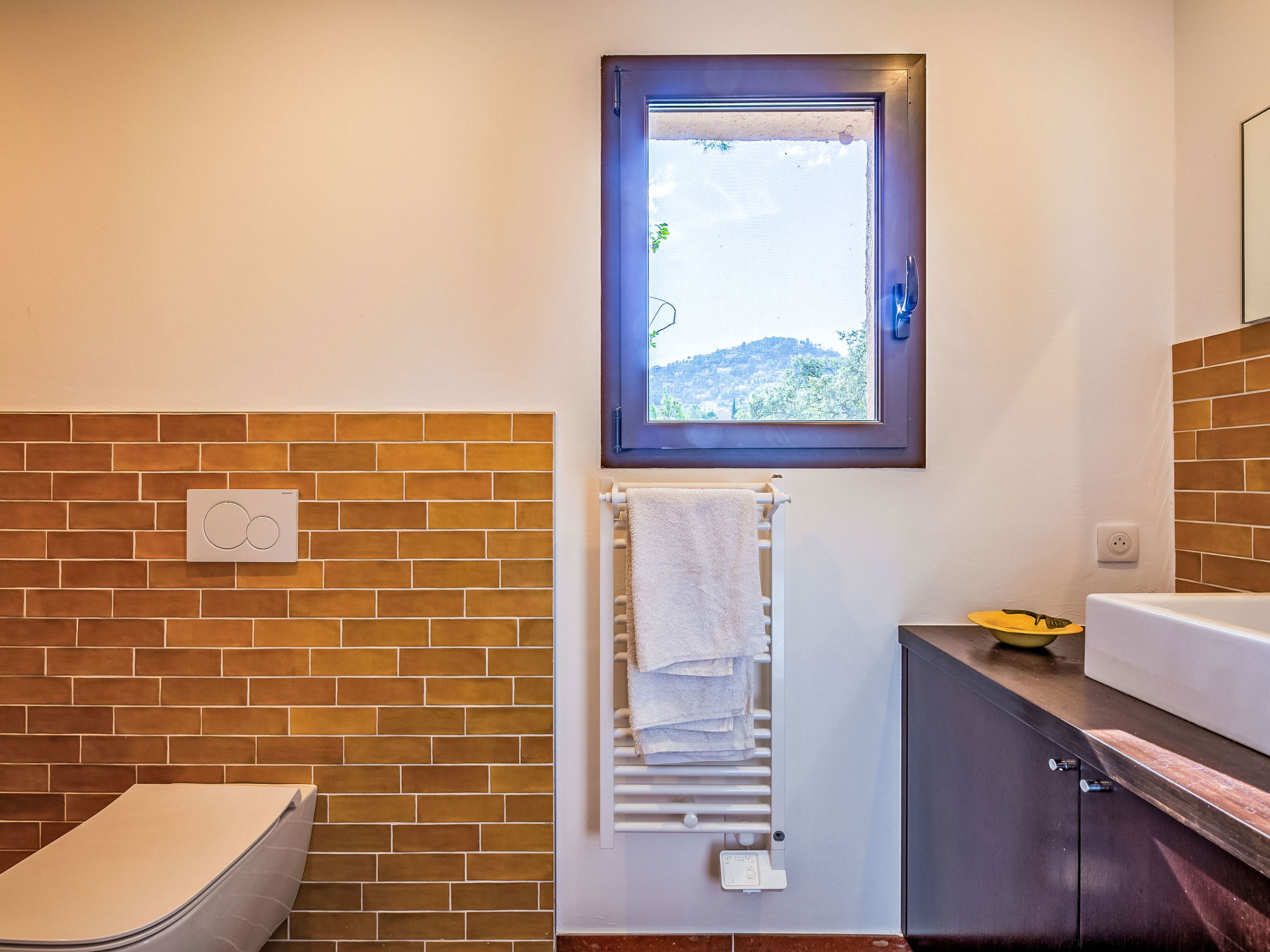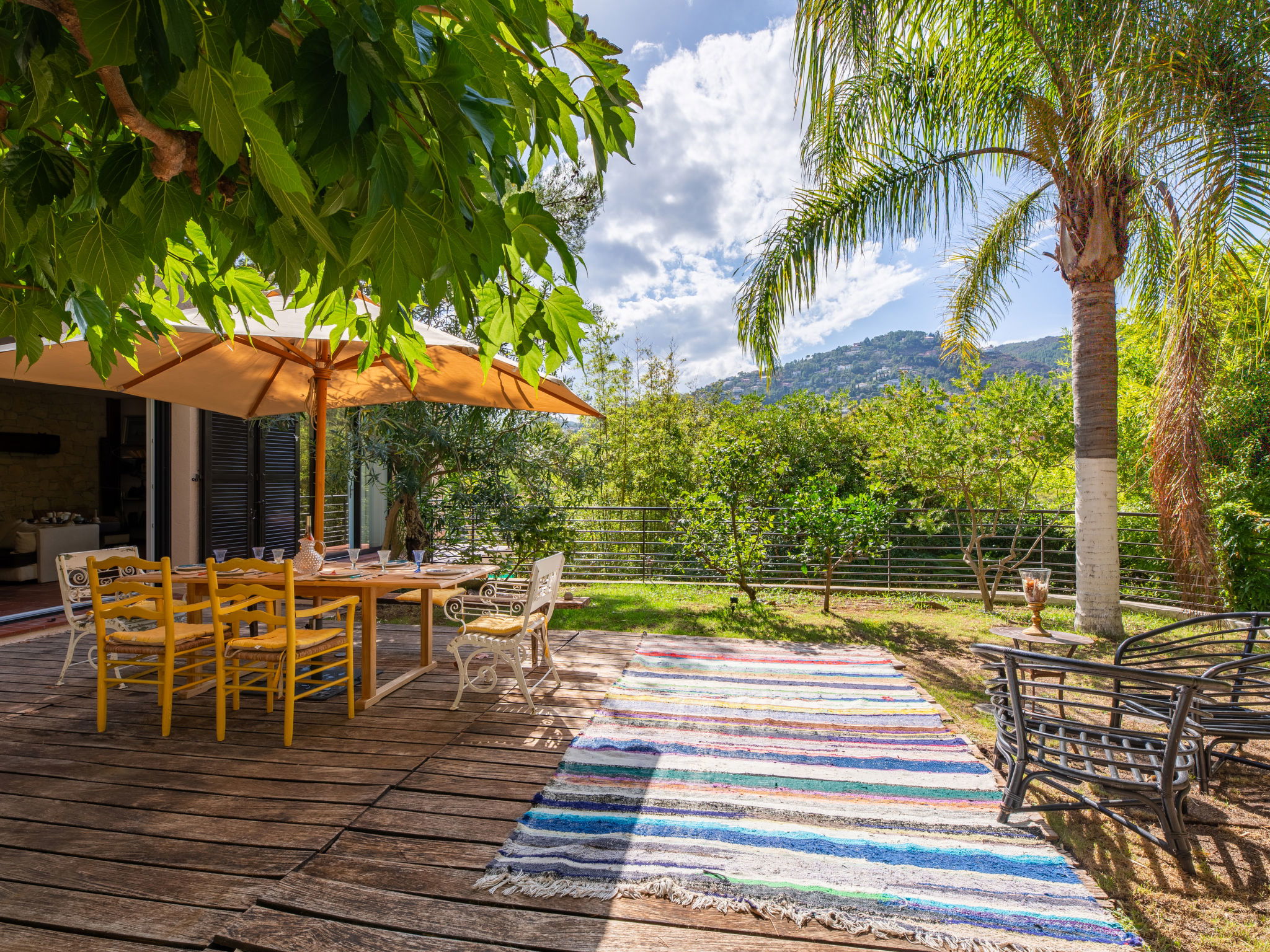 "Villa 50", 4-room house 113 m2 on 2 levels. Cosy furnishings: 1 room with 1 bed (120 cm, length 190 cm), shower/WC and fan. On the lower ground floor: living/dining room with 1 double sofabed (2 x 80 cm, length 200 cm), open-hearth fireplace and fan. Exit to the terrace. Kitchen-/living room (oven, dishwasher, 5 gas rings, toaster, kettle, microwave, electric coffee machine). Shower/WC. Upper floor: 1 room with 1 french bed (180 cm, length 200 cm), fan. Exit to the balcony. 1 room with 2 beds (90 cm, length 190 cm), air conditioning. Exit to the balcony. Bathroom, sep. WC. Electric heating. Large terrace 50 m2, west facing position. Terrace furniture, electric barbecue, deck chairs (4). Beautiful panoramic view of the valley. Facilities: washing machine. Internet (WiFi). Parking (1 car). Please note: suitable for families. Non-smoking house. 1 pet/ dog allowed. Smoke alarm. Offer by a private individual according to Art. 155, IV of CGI. 061380004503D