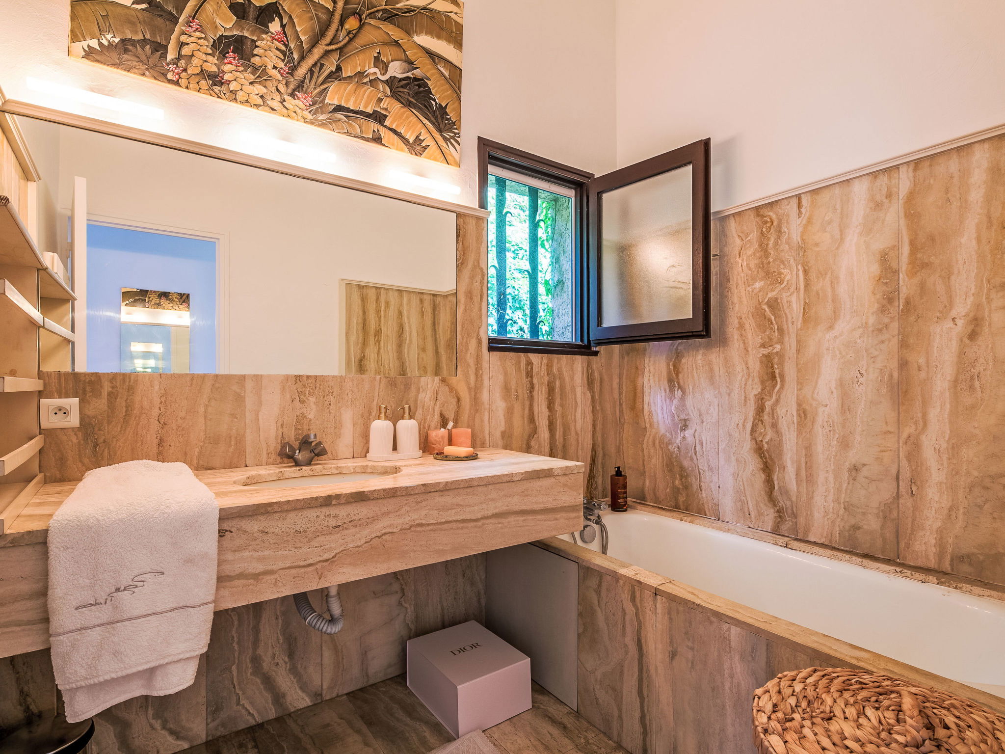 Single-family house "Villa 50", 2 storeys. In the residential district, 600 m from the sea, 600 m from the beach. Private: well-kept garden 570 m2 (fenced), parking. Shop 1 km, supermarket 6 km, restaurant 600 m, bus stop 400 m, sandy beach 600 m. Sports harbour 600 m, golf course (18 hole) 12 km, walking paths from the house 500 m. Nearby attractions: Cannes 16 km, Nice 45 km. Hiking paths: Esterel 500 m. Please note: car recommended. The owner does not accept any youth groups.