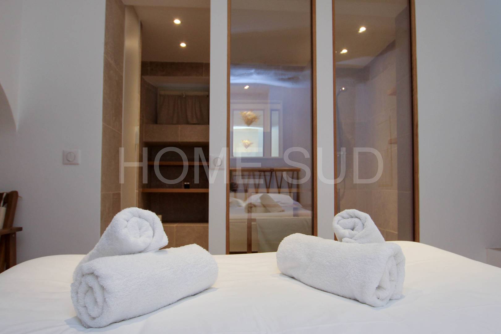 Fully air-conditioned 6-room villa of 200 m² on 3 levels: Entrance, fully equipped kitchen with central island (dishwasher, American fridge/freezer, oven, induction hob (4 burners), toaster, Nespresso) Dining room for 8 persons. Living room with TV (internet), sofa and armchair and fireplace.1 Shower room with washing machine, shower and WC. On the floor: 1 bedroom with a double bed (160), velux window, shower and washbasin. Sea view.1 bedroom with 1 double bed (160), shower and basin. Separate WC.1 bedroom with 2 single beds (2 x 90). Pool view.1 bedroom with 1 double bed (160). Access to terrace/independent entrance.1 shower room with shower and WC. On the ground floor: a bedroom/studio with 1 double bed (140), a shower room with shower and WC. Electricity at extra cost. Réf. 06026022