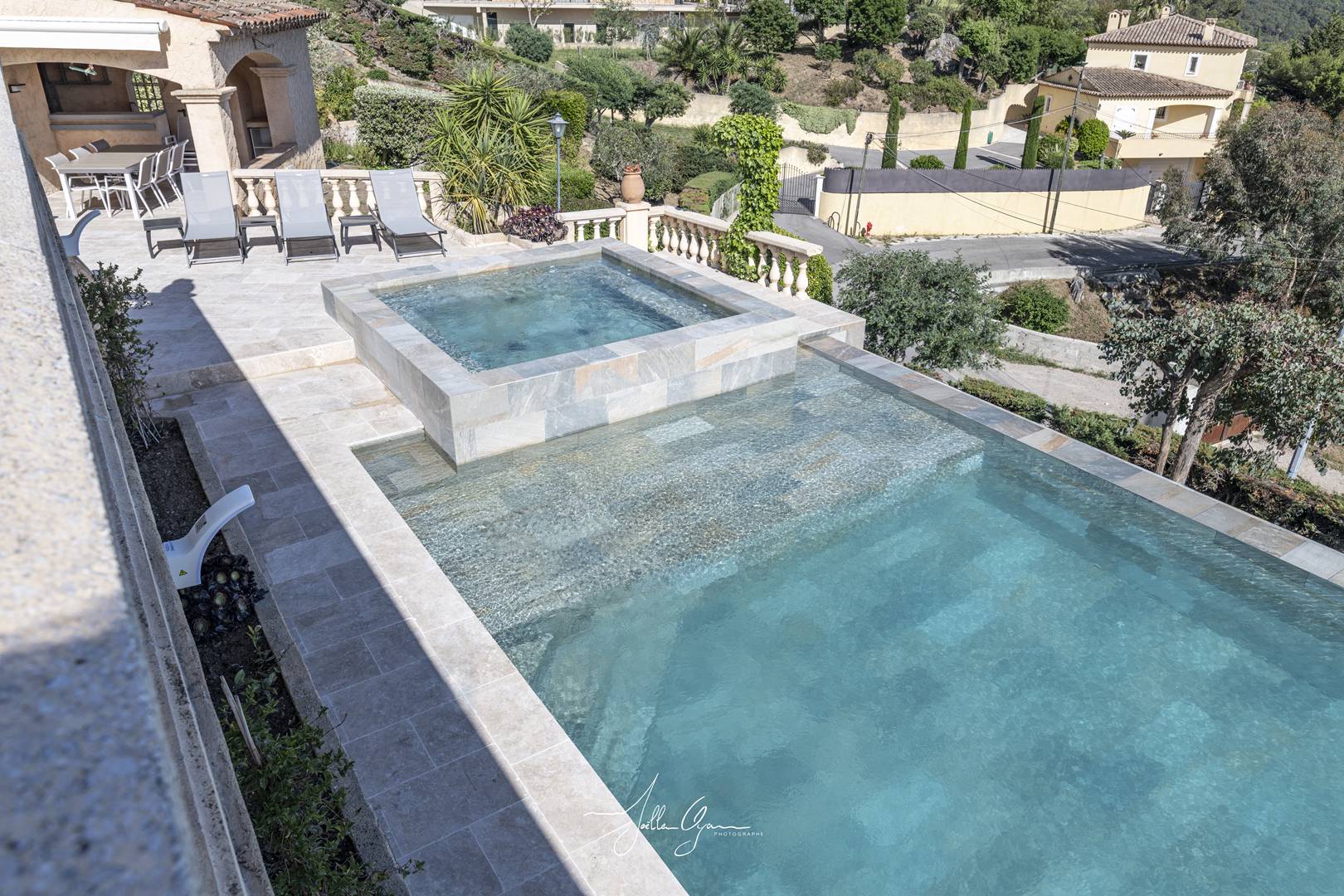 The villa (375m² of which 100m² garage) is of superior quality, entirely renovated with luxury materials and equipped to maximise your pleasure and comfort (fibre internet, air conditioning, luxury hotel bedding, wine cellar, ice maker, heated infinity pool from May to October, 12 person Spa heated all year round on request, pool house, terrace, petanque court, ping-pong table, electric fireplace, connected TV in the living room and in each bedroom except for the children's room ....) on 2500m² of wooded grounds.