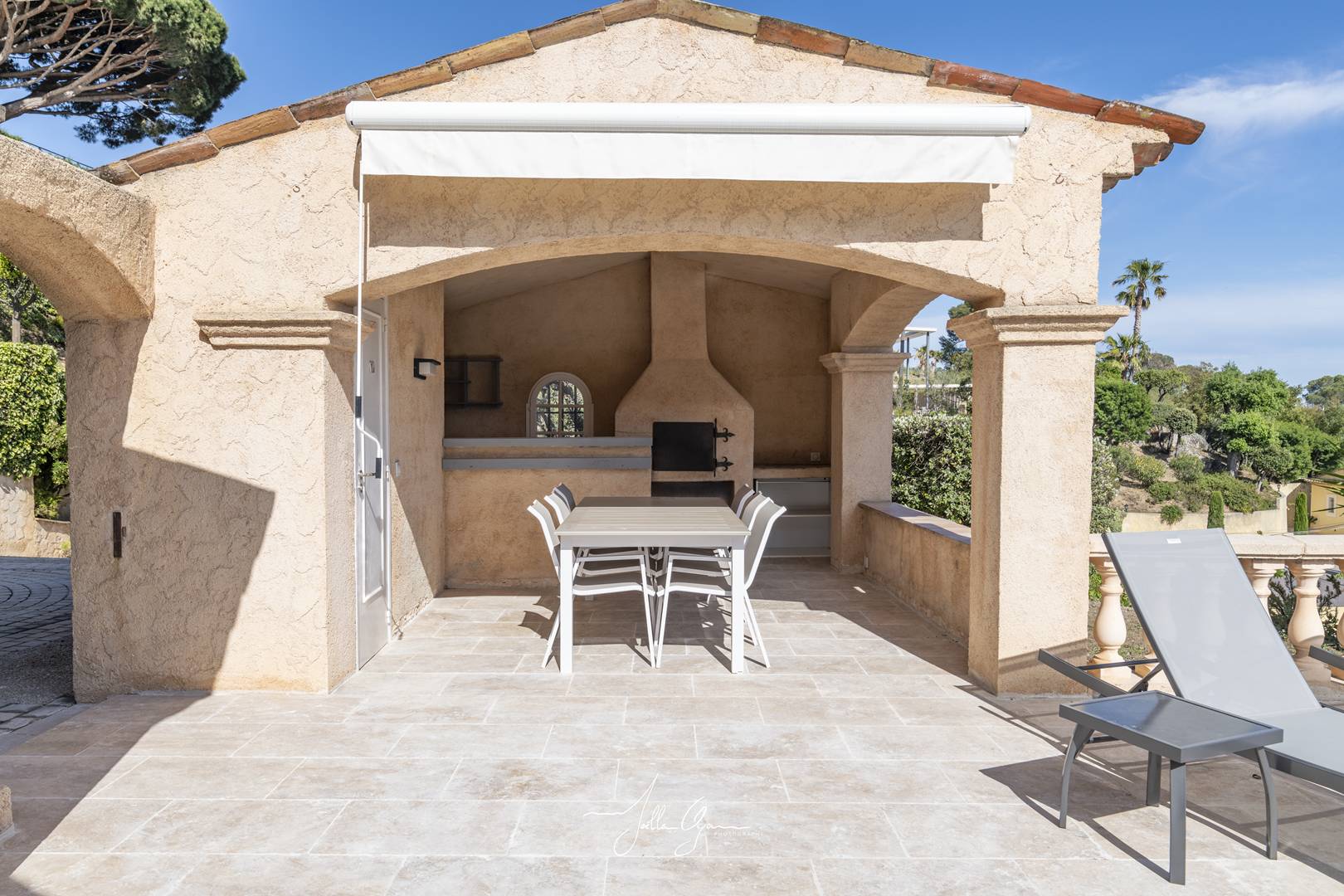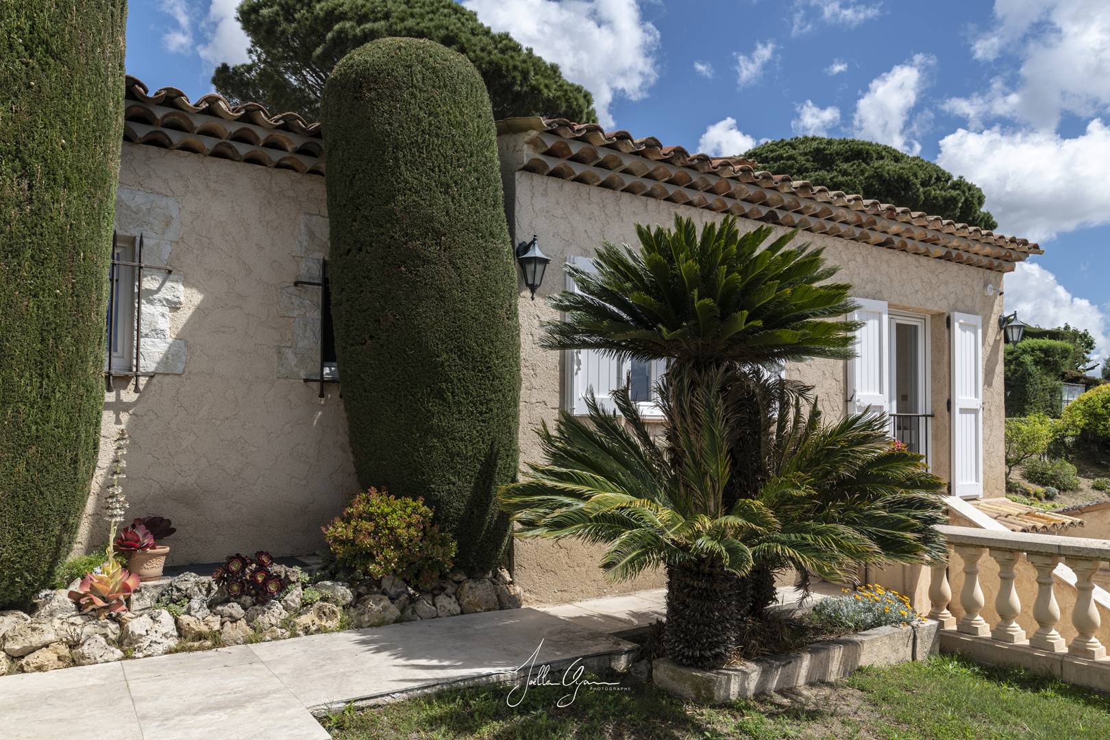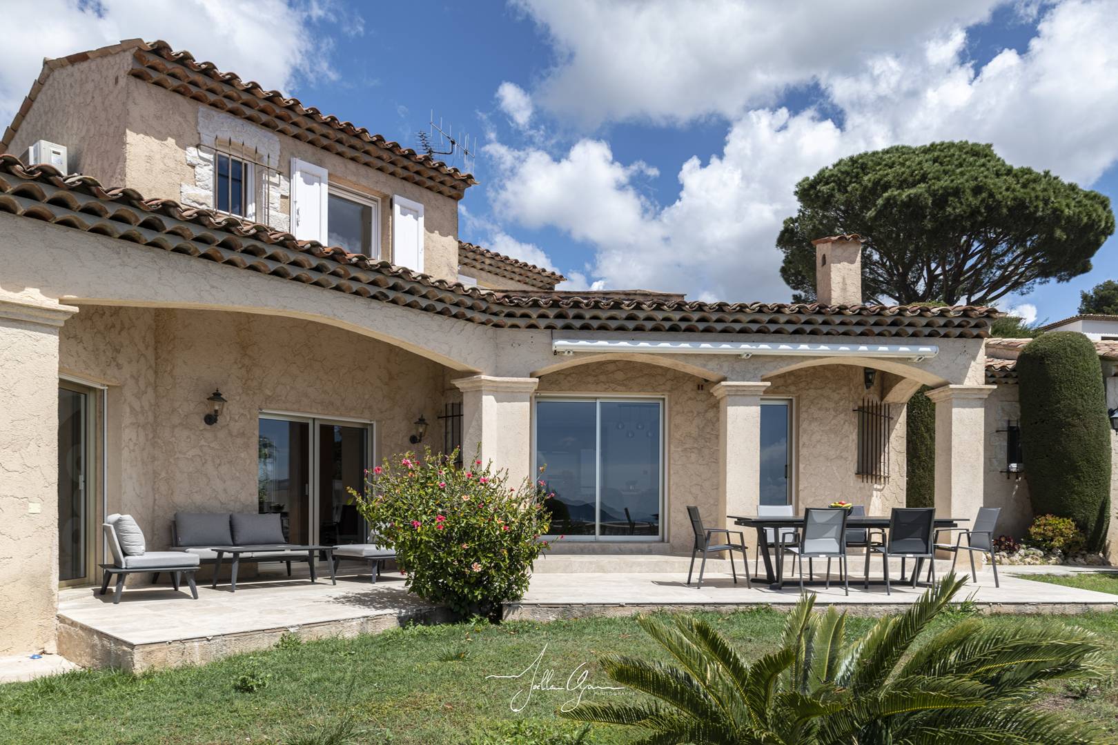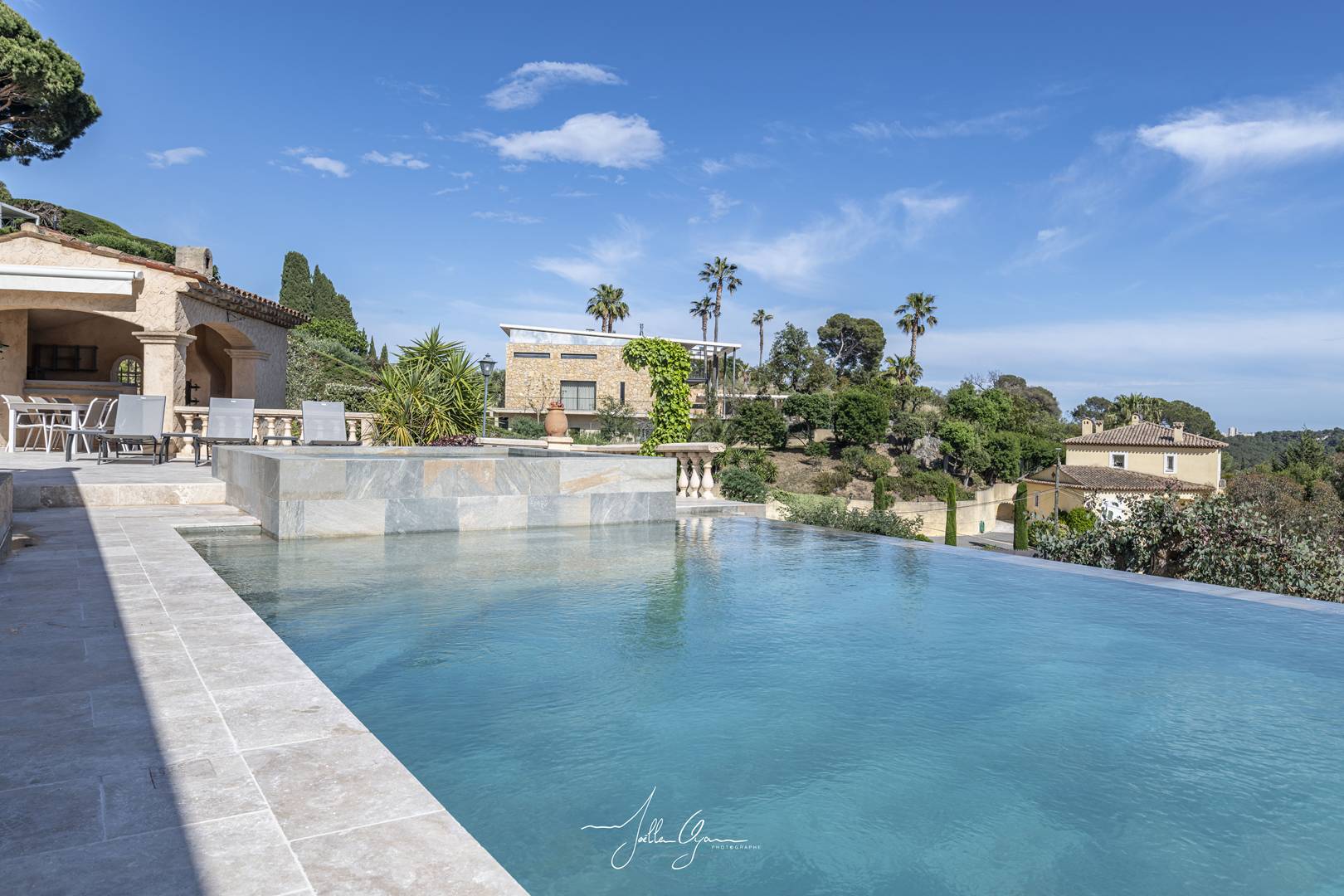 The villa is located 2km below the village of La Roquette. 8km from Cannes (20 minutes), 6km from the beaches of Cannes La Bocca, 5km from Mouans-Sartoux, 4km from Pégomas, 10km from Valbonne, 5km from the motorway and 26 minutes by car (30km from Nice airport).