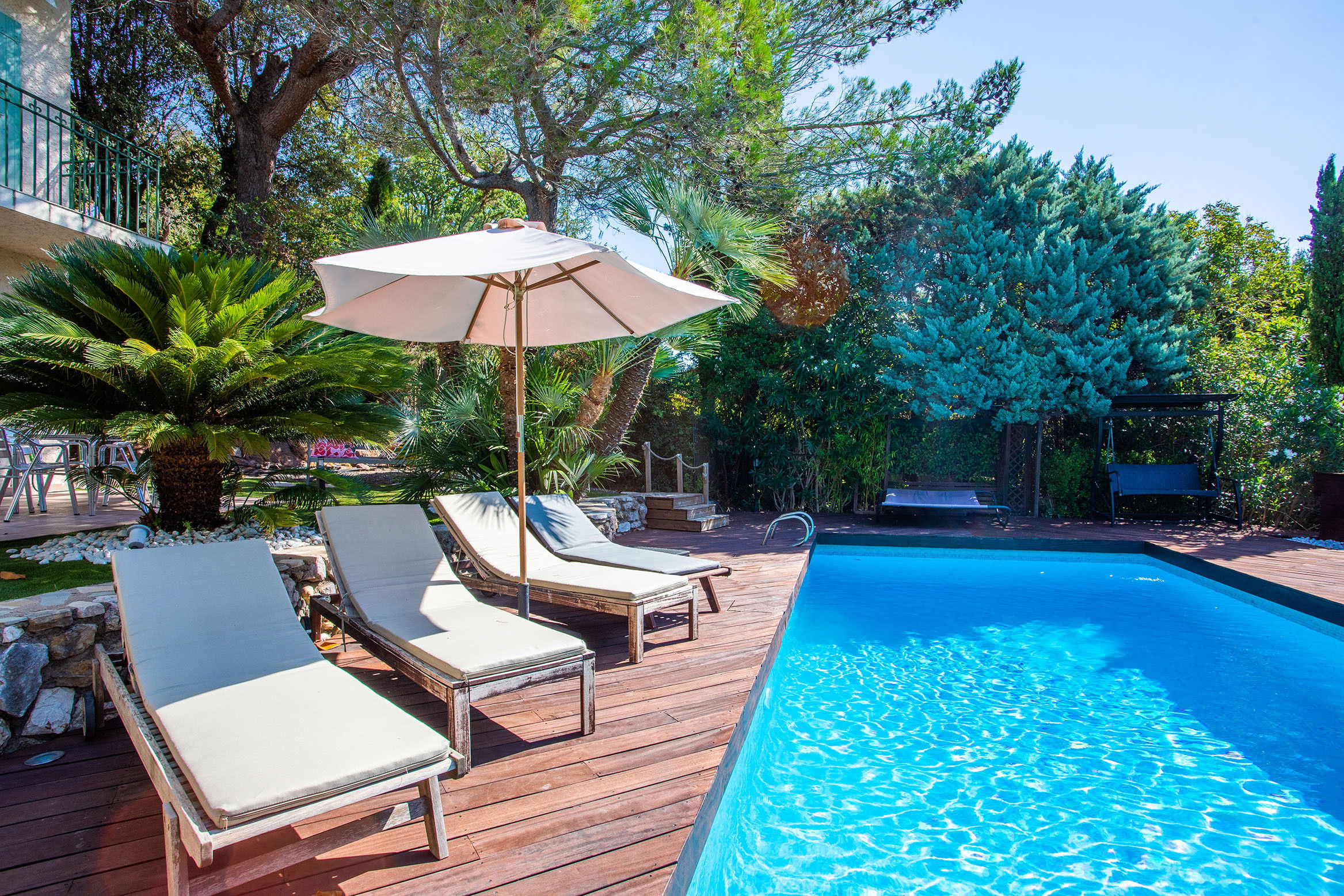 The Villa Justine is a quiet 220 m2 Provençal-style villa nestled in a 1700m² garden and can accommodate up to 14 people, very close to Cannes and Mandelieu as well as the beaches (10 minutes by car) - Beautiful private swimming pool of 10x 5, and 1m20 x 2m50 deep
