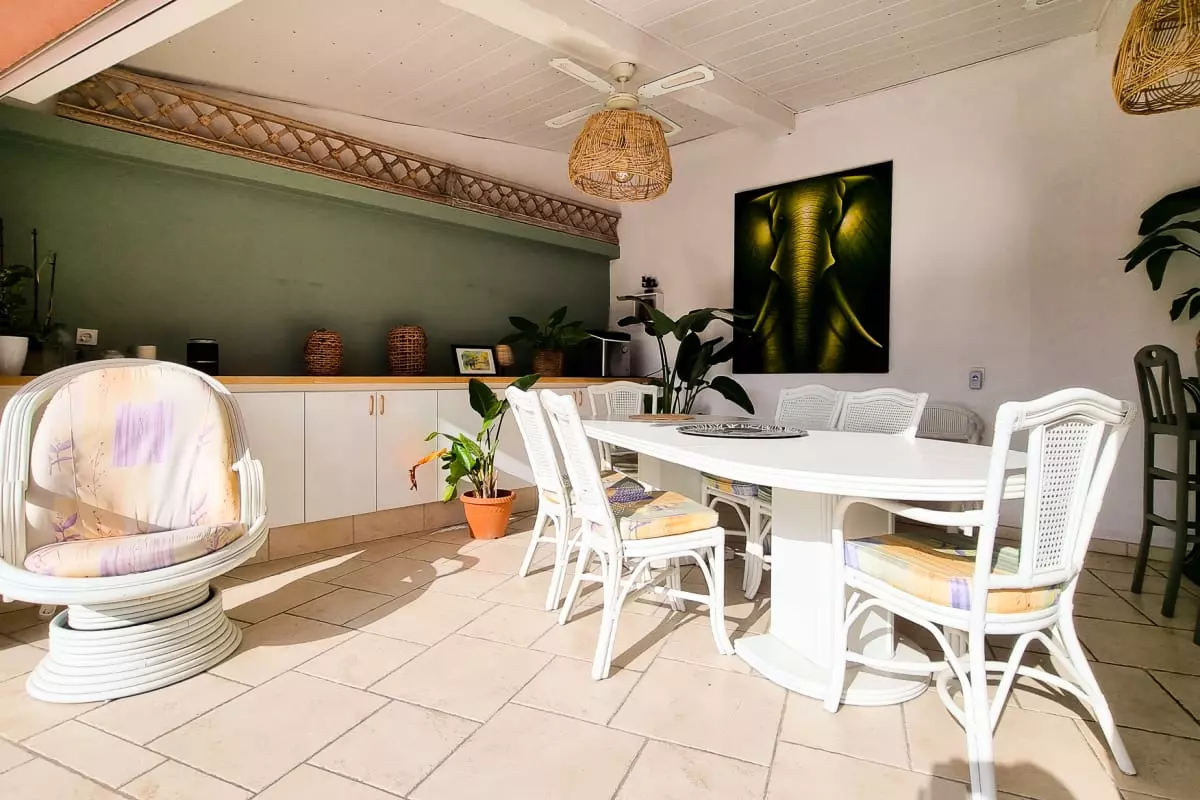 A furnished terrace with gas barbecue, a large heated, private and secure swimming pool with shutter and colored lighting, pool house equipped for outdoor naps, a solar shower, deckchairs, a pétanque court, a ping-pong table.