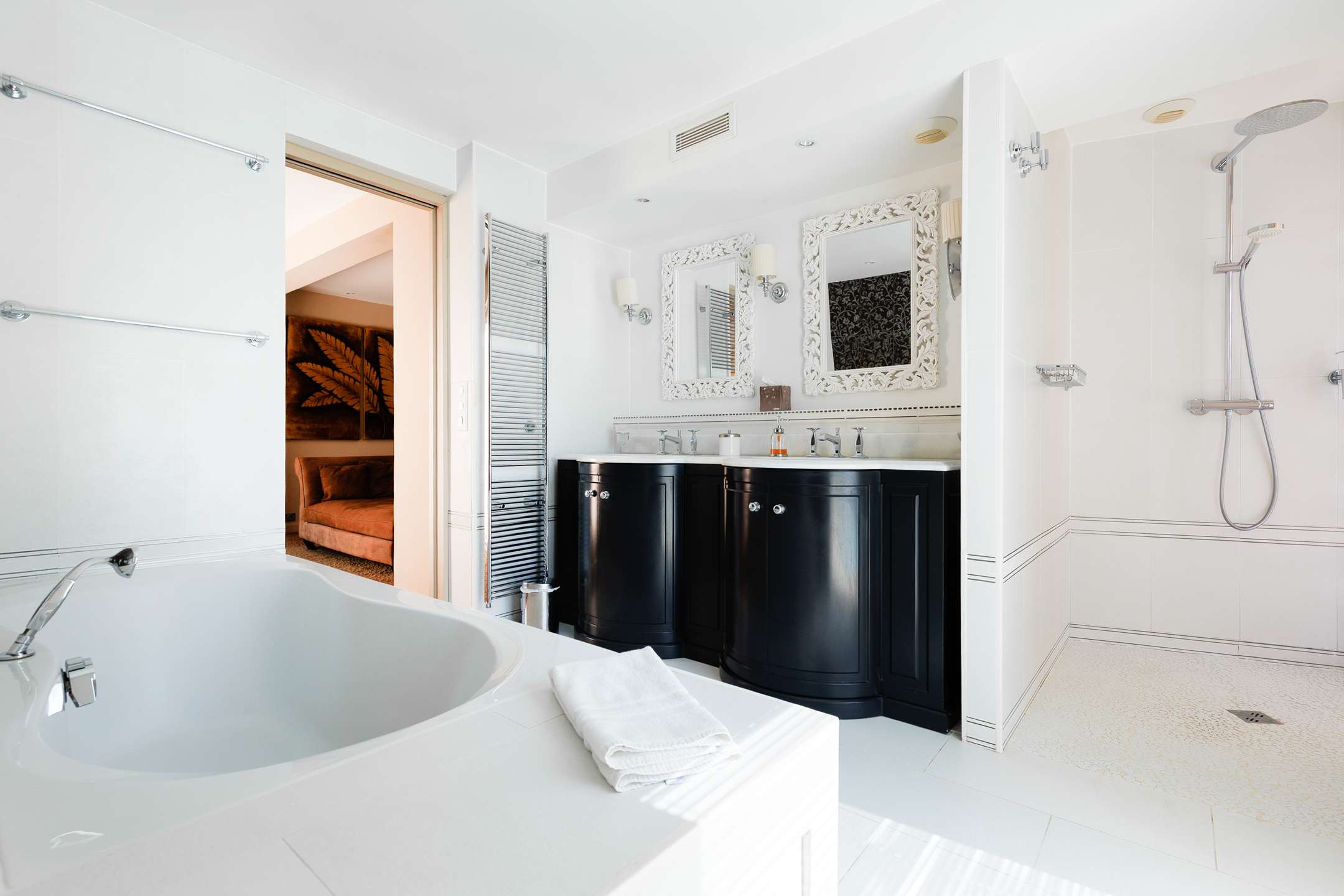 The sleeping area accommodates up to 8 guests across 4 bedrooms, each with its own private shower room or bathroom, ensuring privacy for every member of your family or group.